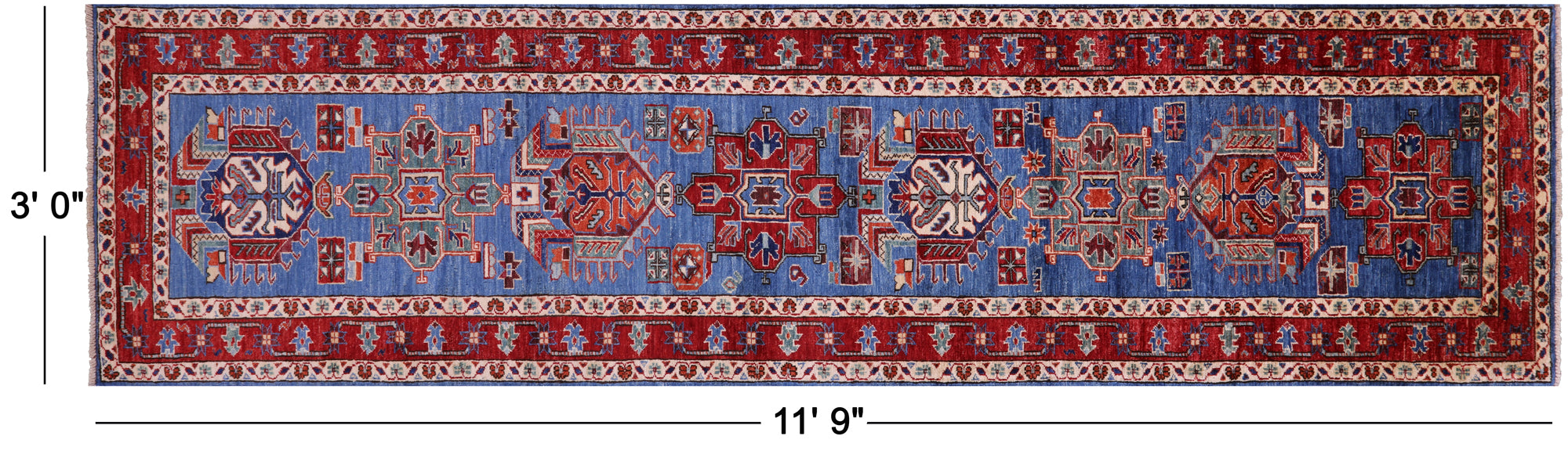 Blue Runner Persian Heriz Serapi Handmade Wool Rug 3' 0" X 11' 9" - Q23148