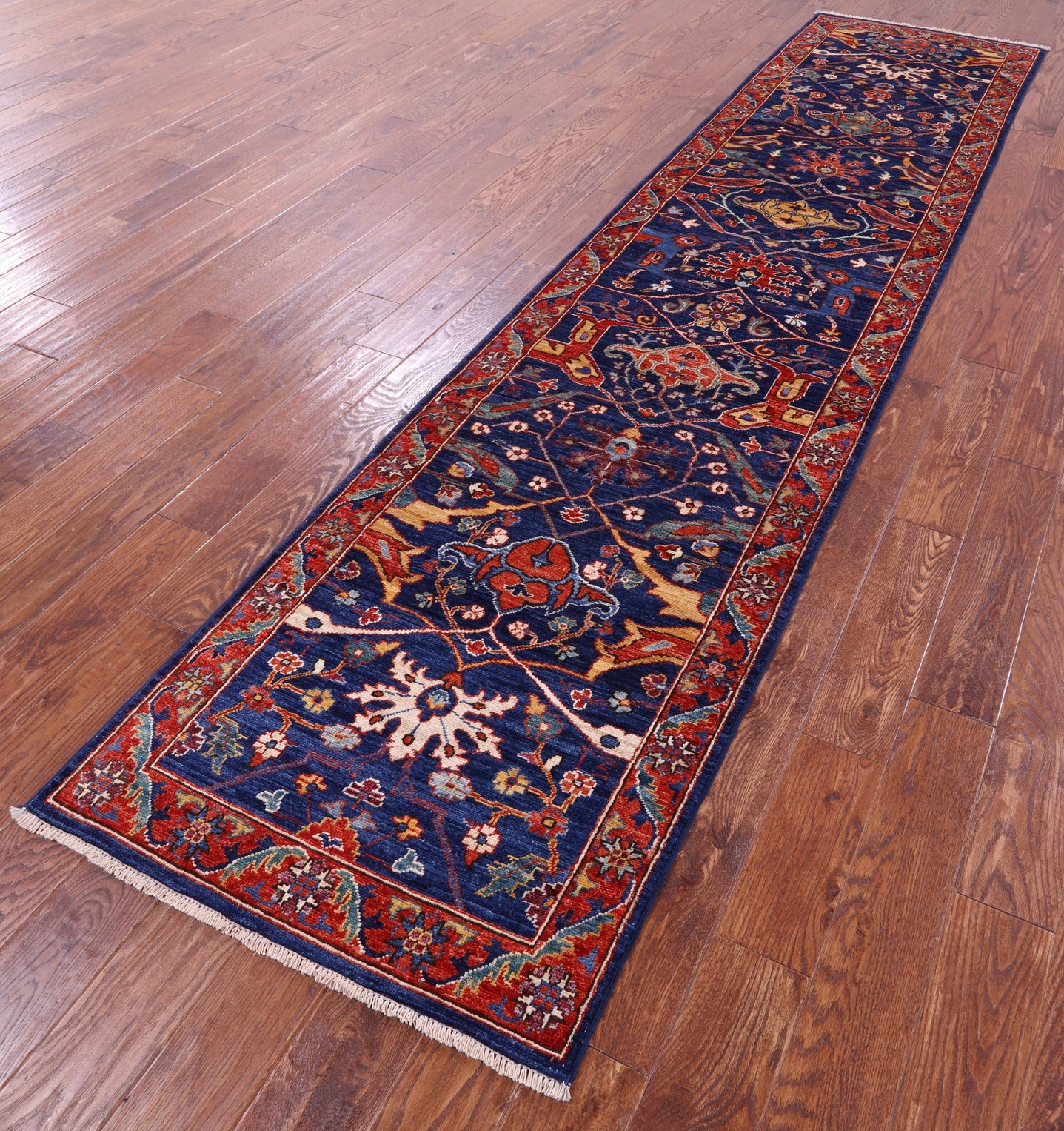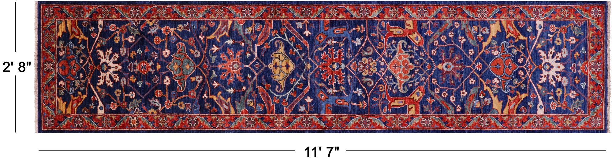 Blue 2' 8" X 11' 7" Runner Persian Heriz Serapi Handmade Wool Rug - Q23175 is backordered and will ship as soon as it is back in stock.