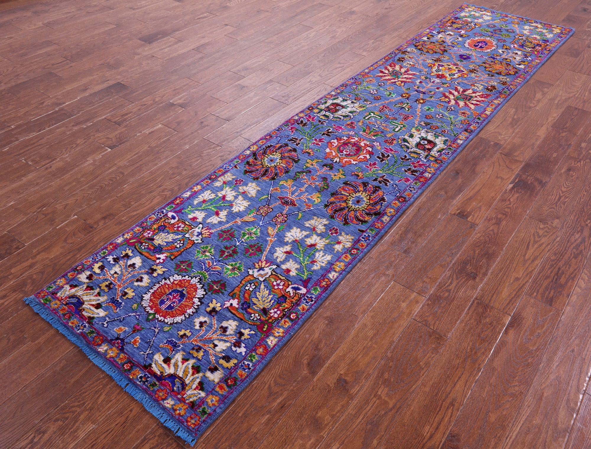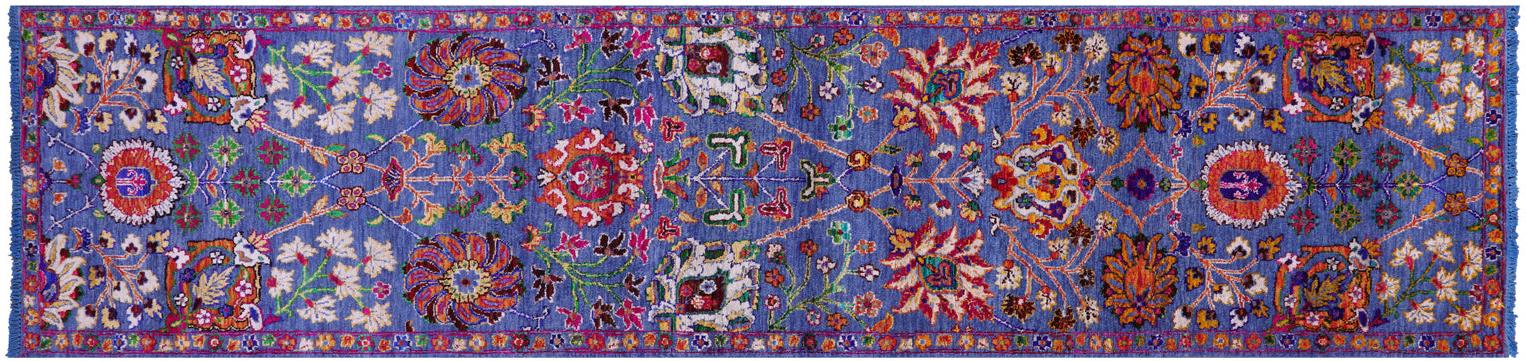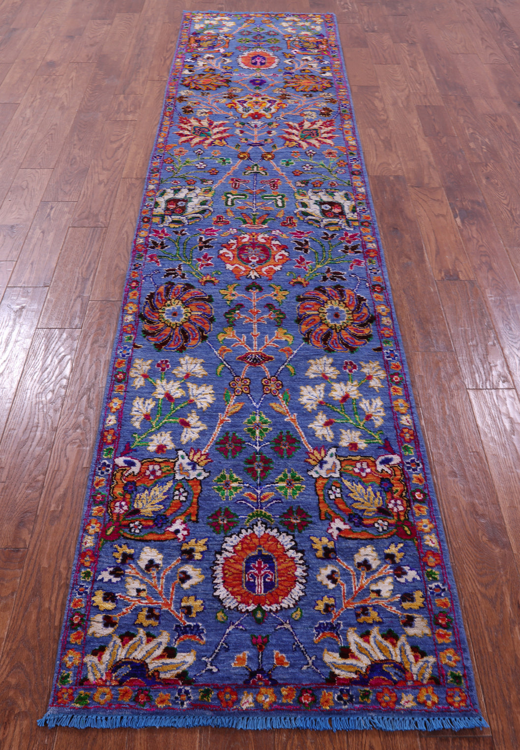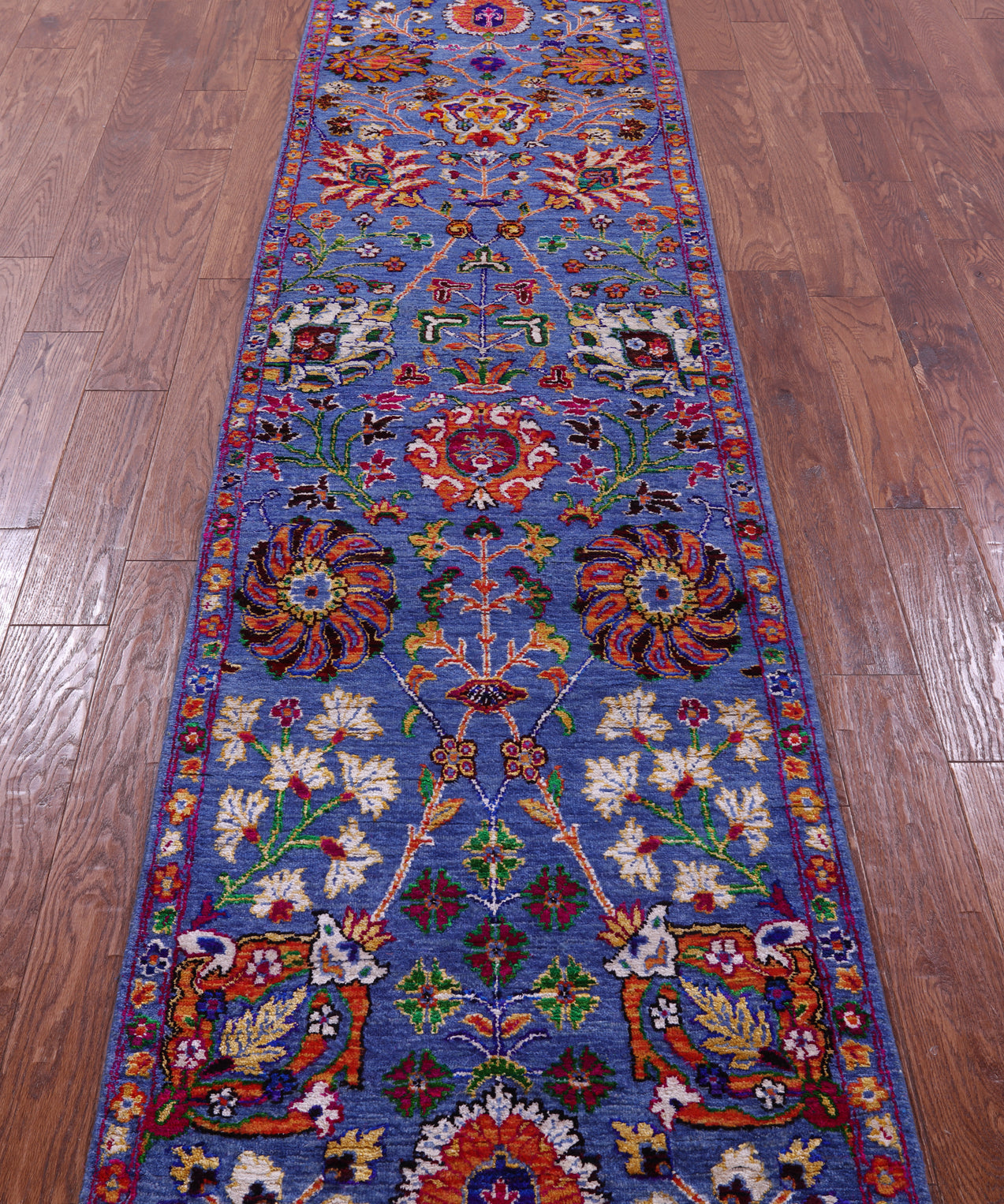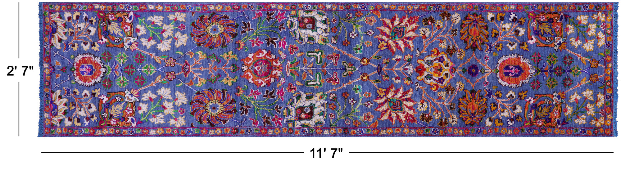Blue Runner Persian Tabriz Handmade Wool & Silk Rug 2' 7" X 11' 7" - Q23443