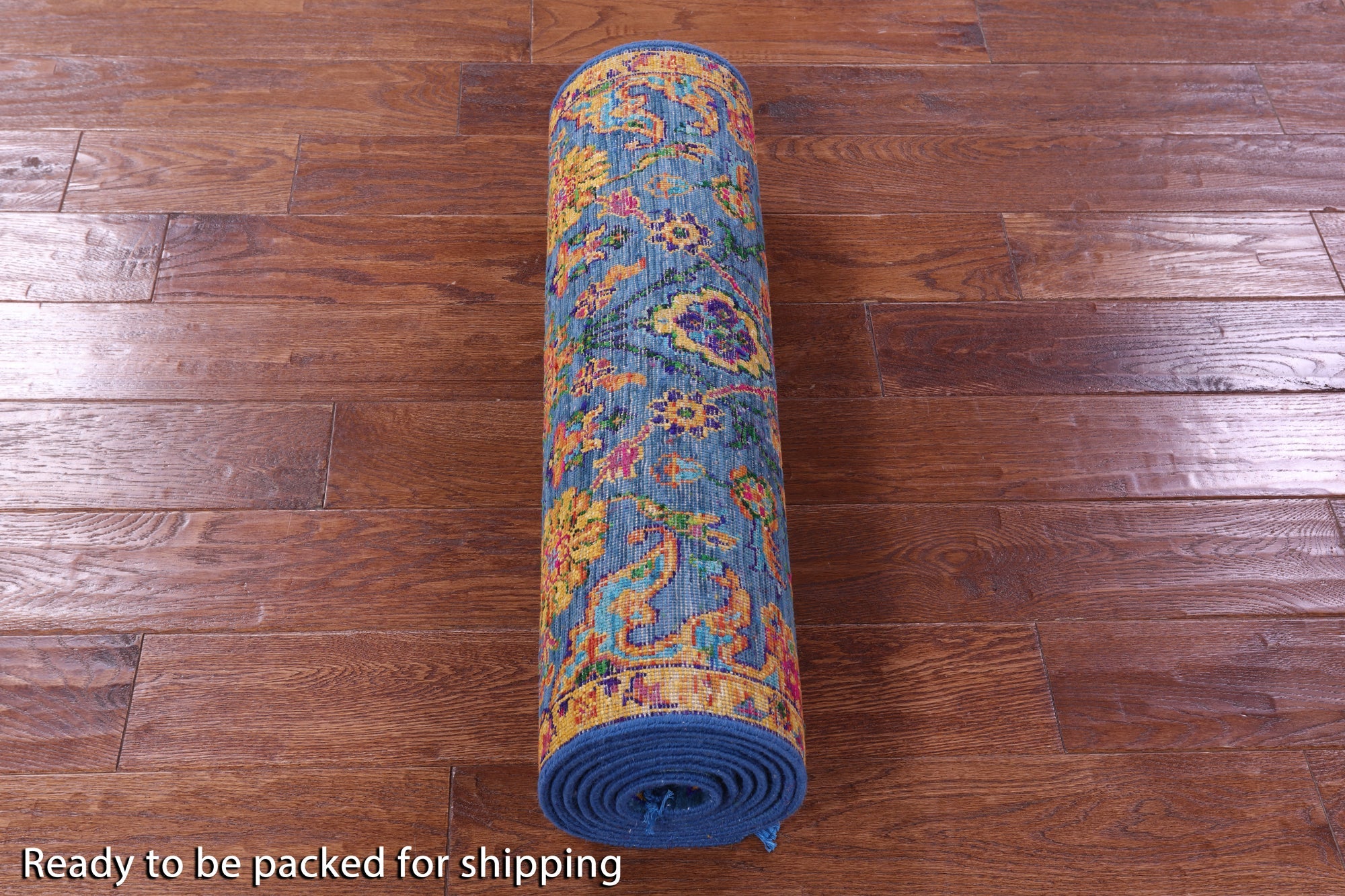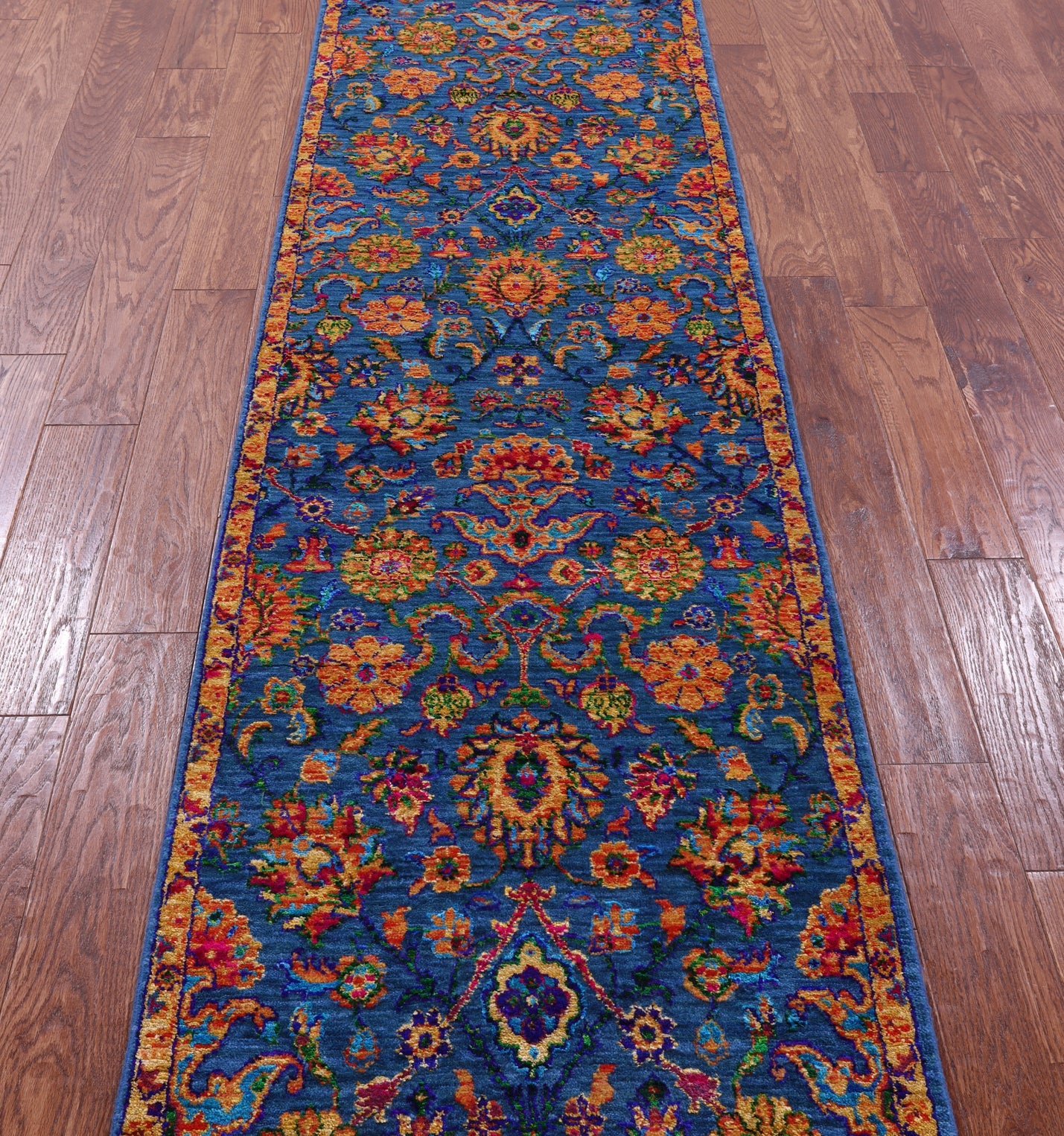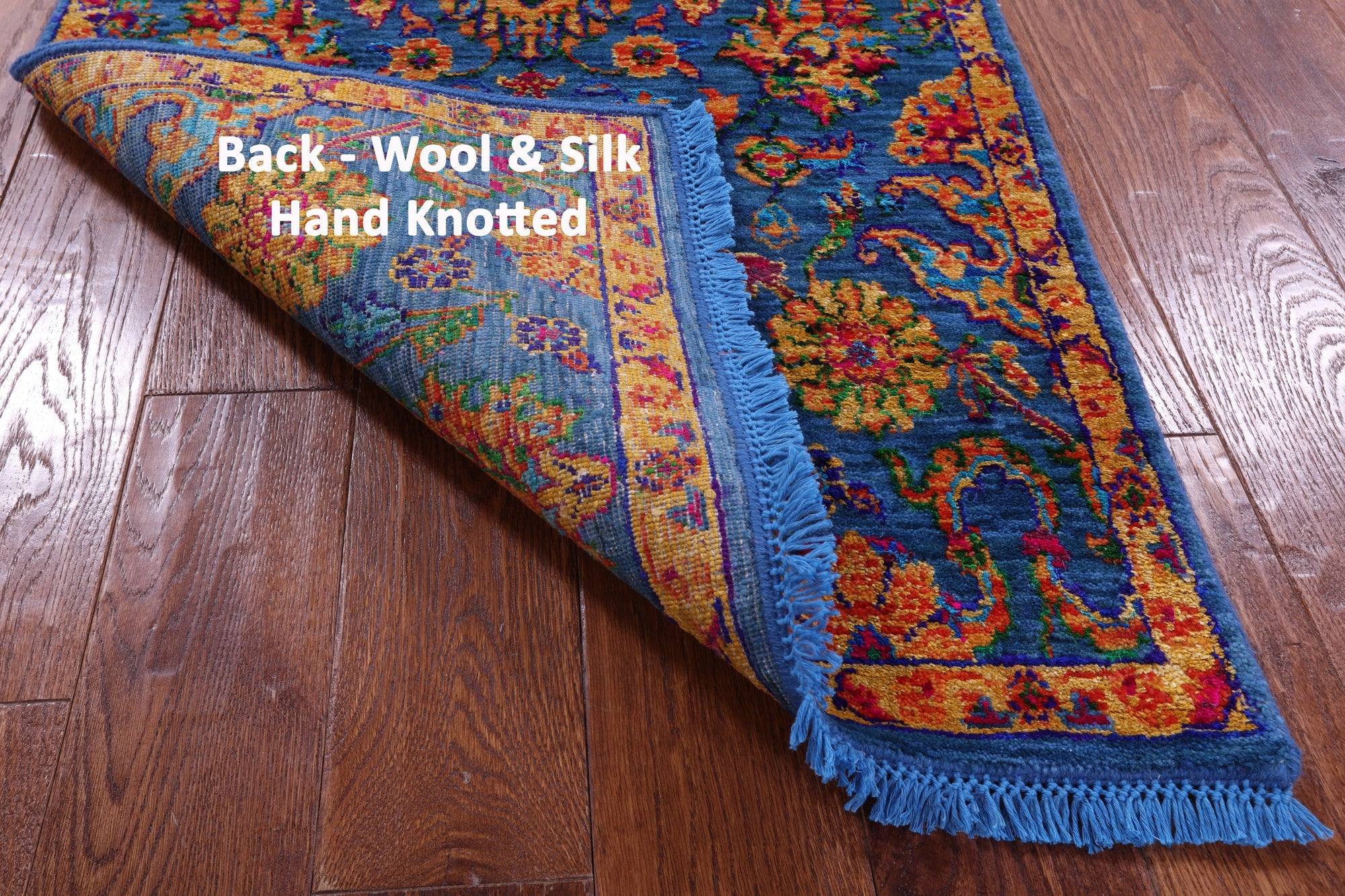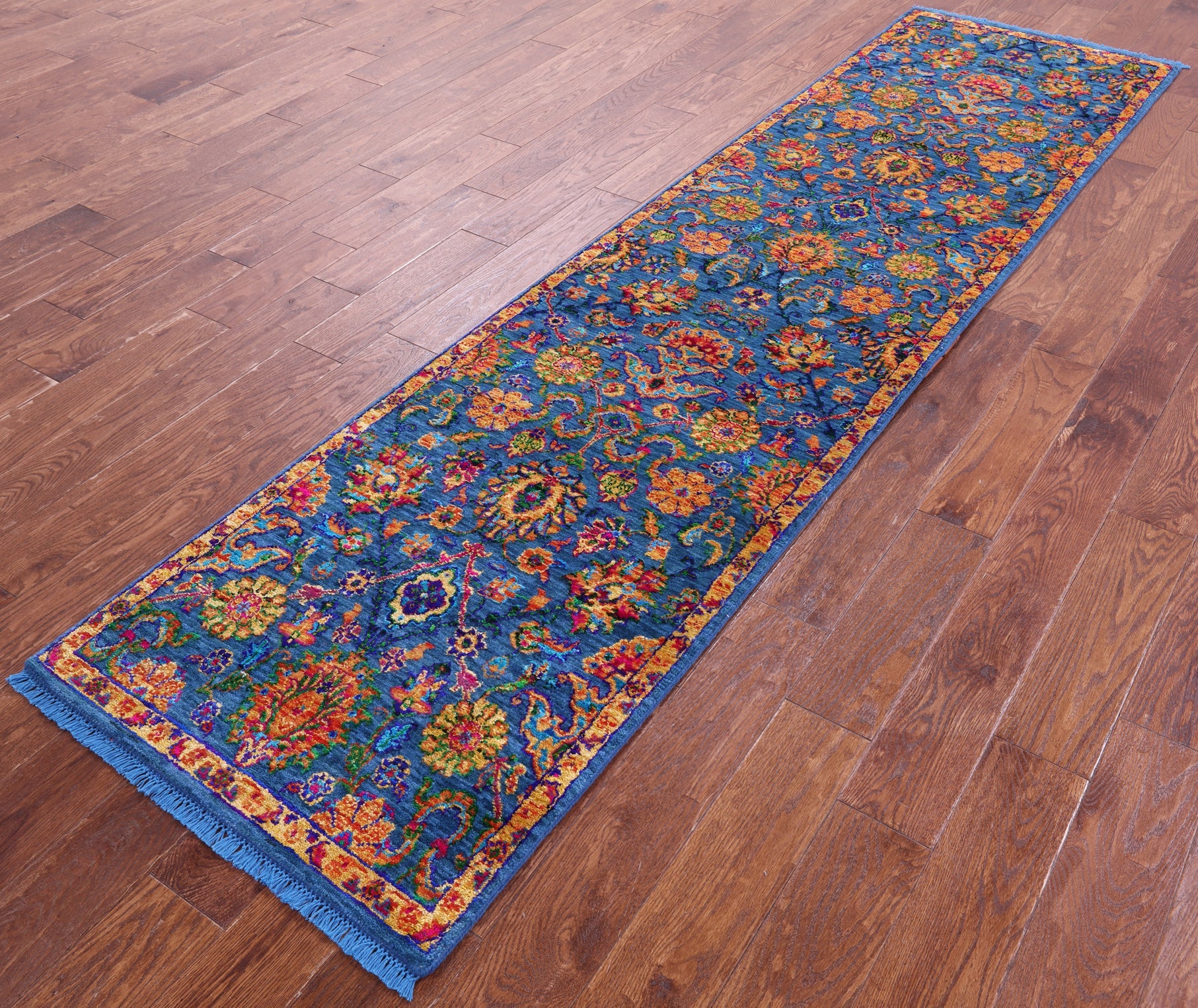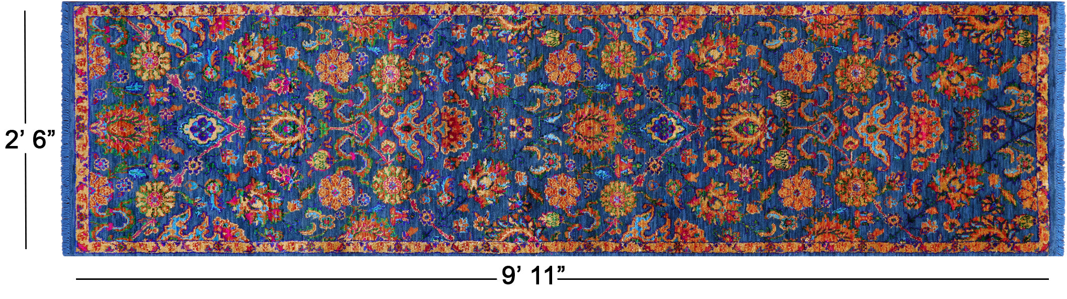 Blue 2' 6" X 9' 11" Runner Persian Tabriz Wool & Silk Handmade Rug - Q22522 is backordered and will ship as soon as it is back in stock.