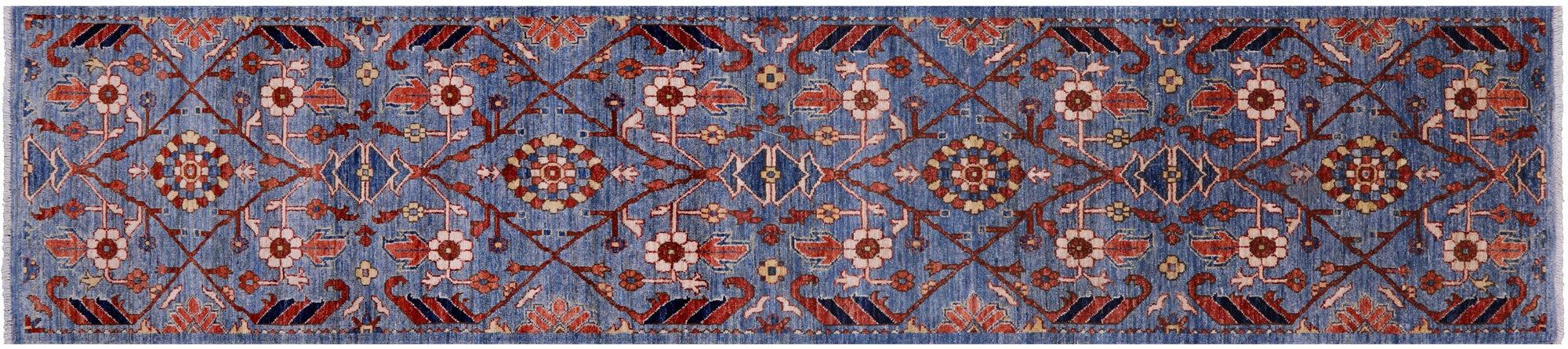 Blue 2' 6" X 11' 6" Runner Super Heriz Serapi Handmade Wool Rug - Q18675