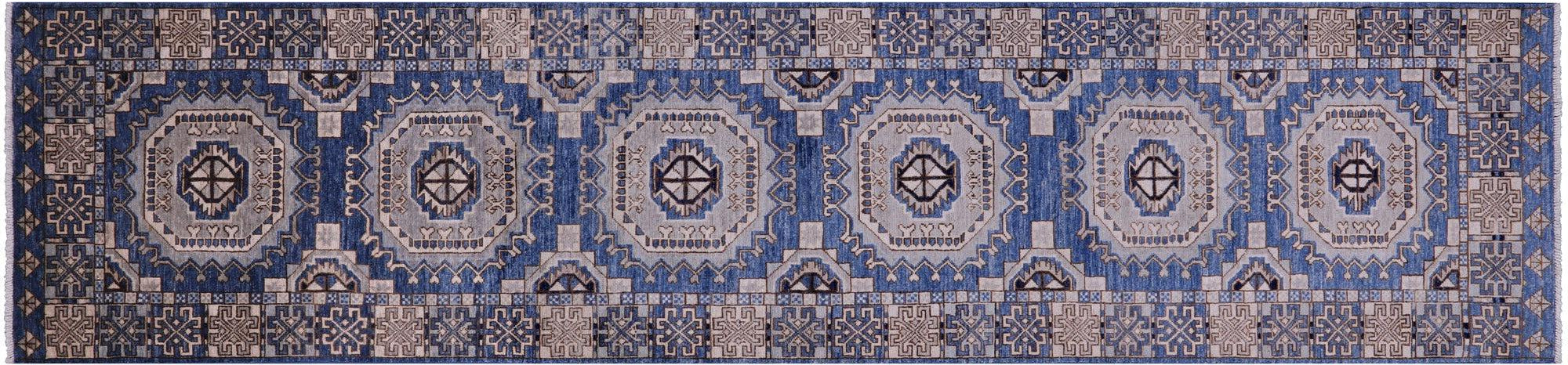Blue Runner Super Turkmen Ersari Hand Knotted Wool Rug 2' 10" X 12' 6" - Q22045