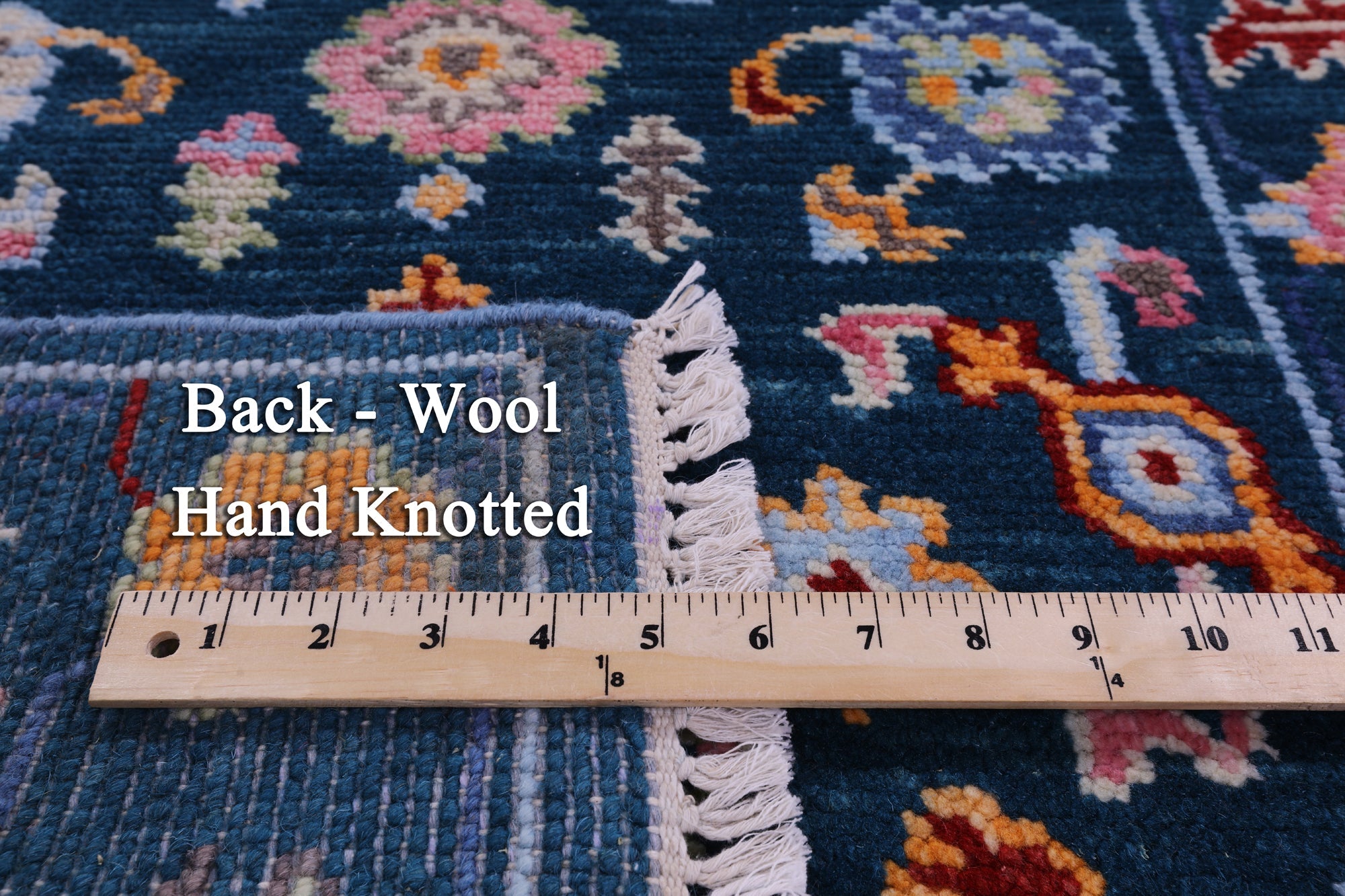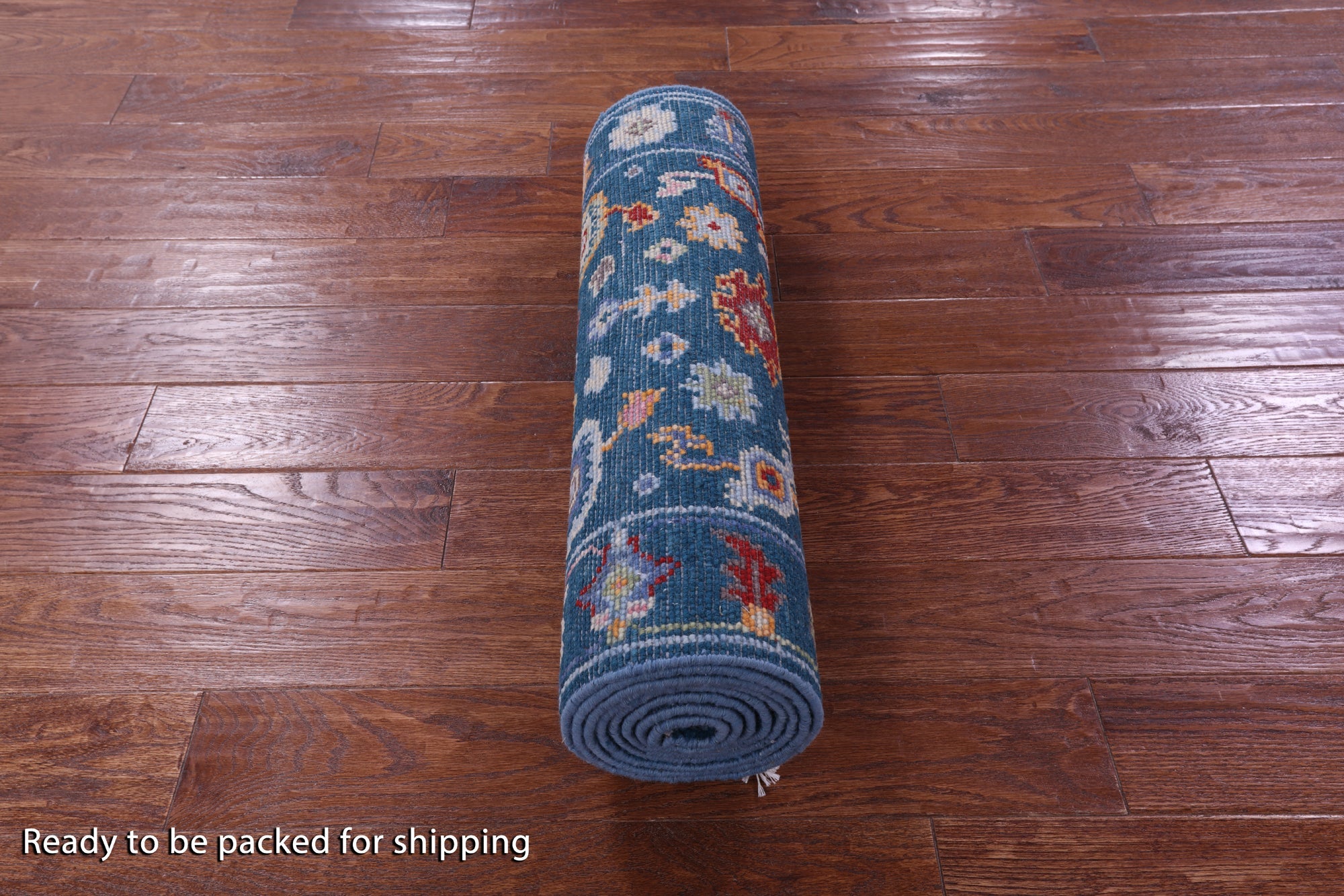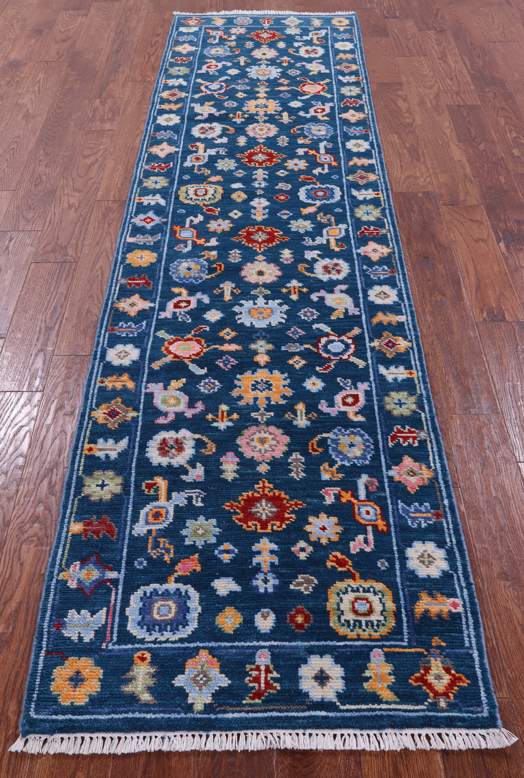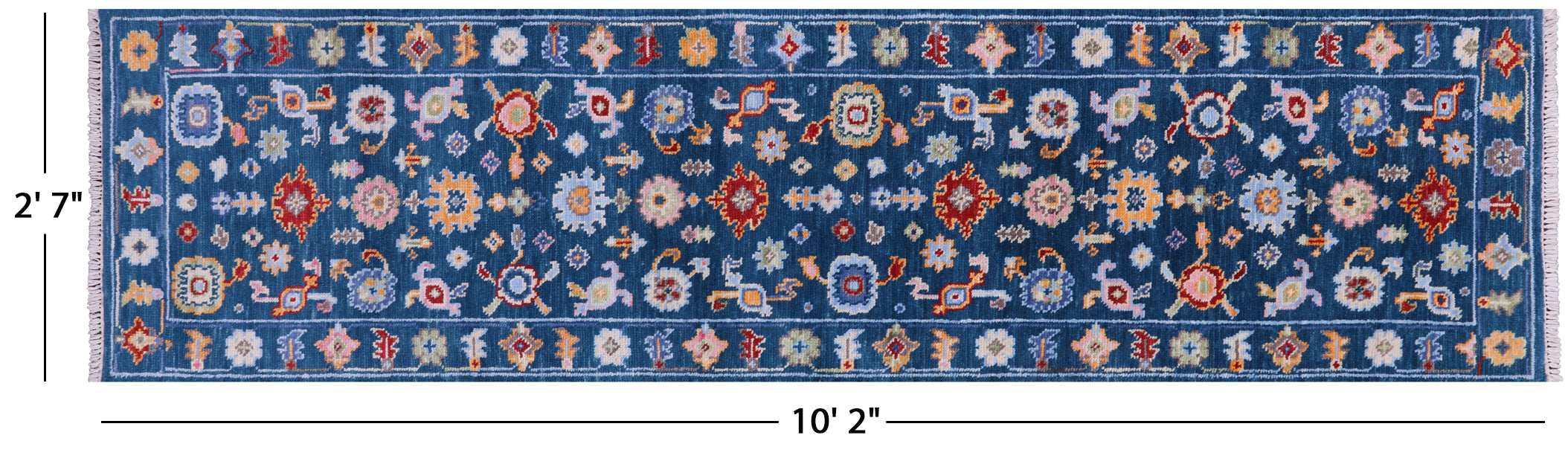 Blue 2' 7" X 10' 2" Runner Turkish Angora Oushak Handmade Rug - Q19347