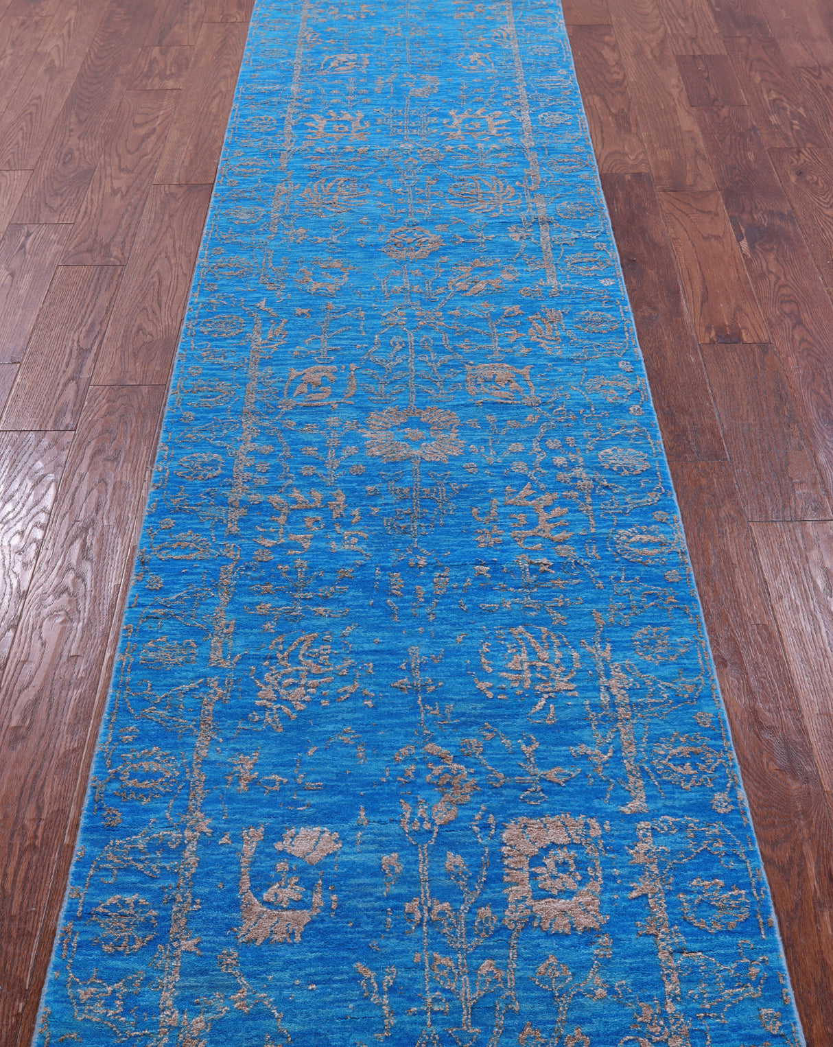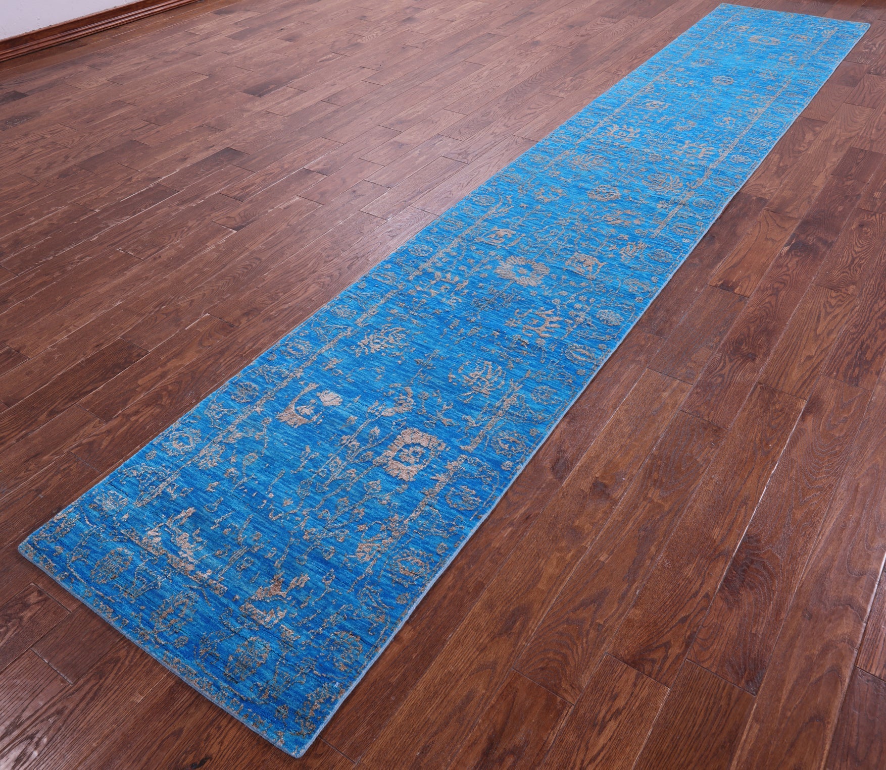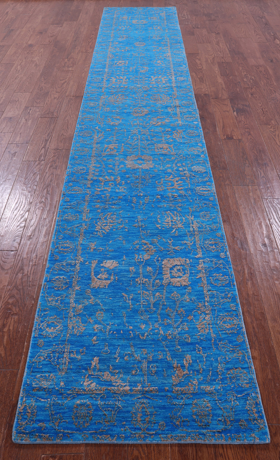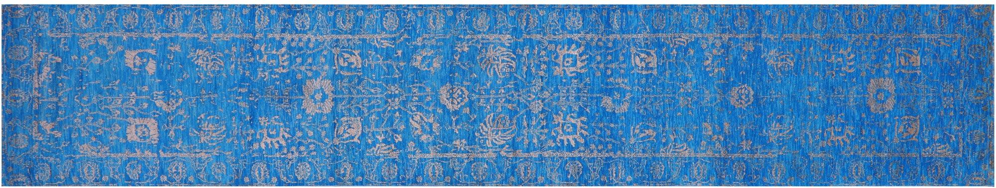 Blue Runner Wool & Silk Persian Tabriz Hand Knotted Rug 2' 7" X 14' 8" - Q21477 is backordered and will ship as soon as it is back in stock.