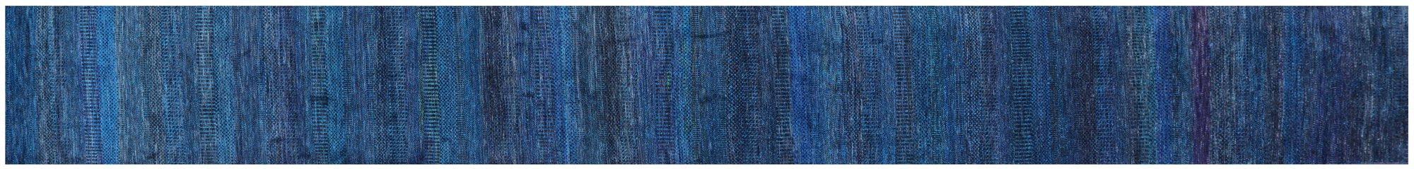 Blue Super Savannah Gabbeh Handmade Wool & Silk Runner Rug 2' 7" X 21' 11" - Q8998