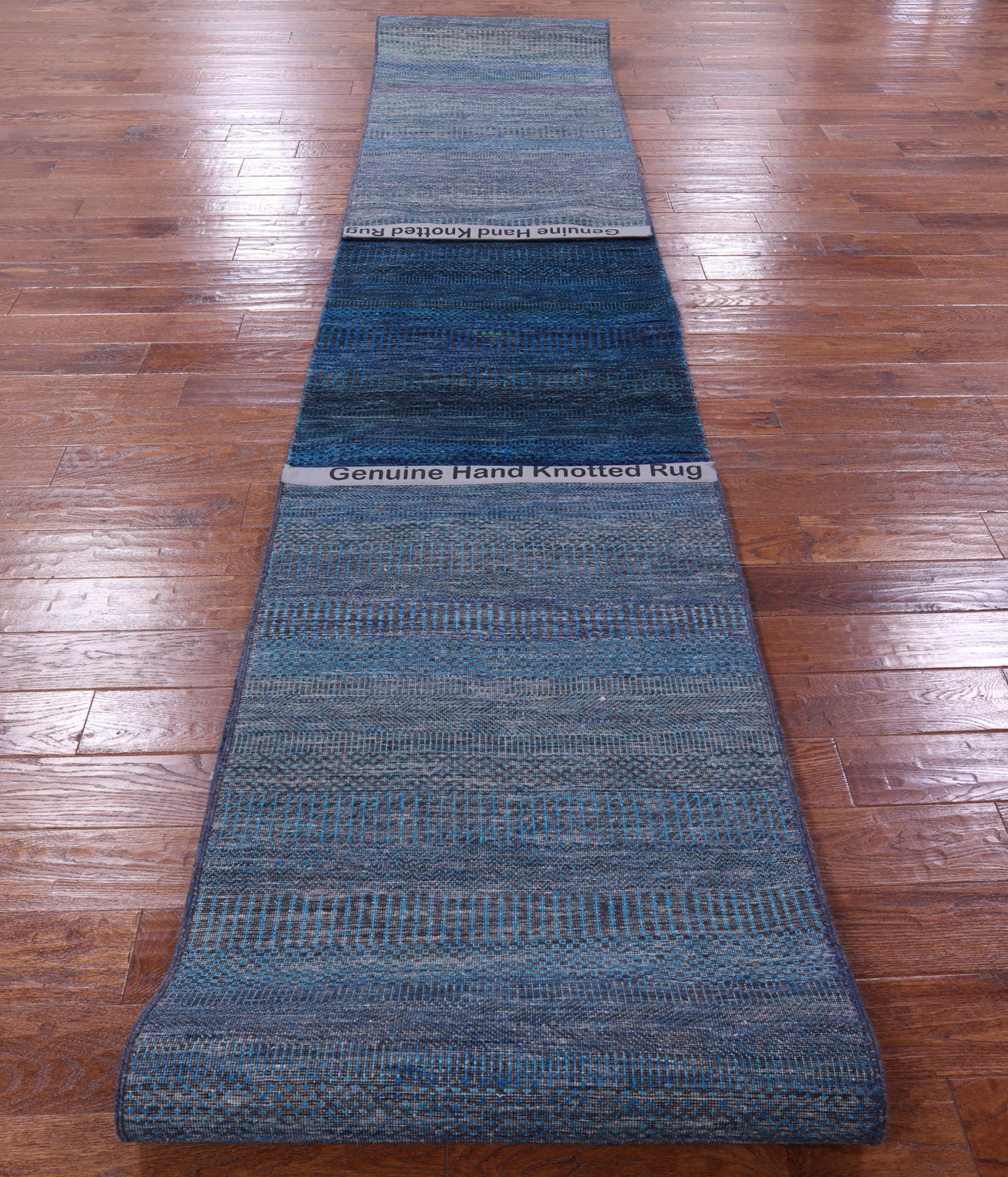 Blue Super Savannah Gabbeh Handmade Wool & Silk Runner Rug 2' 7" X 21' 11" - Q8998 is backordered and will ship as soon as it is back in stock.
