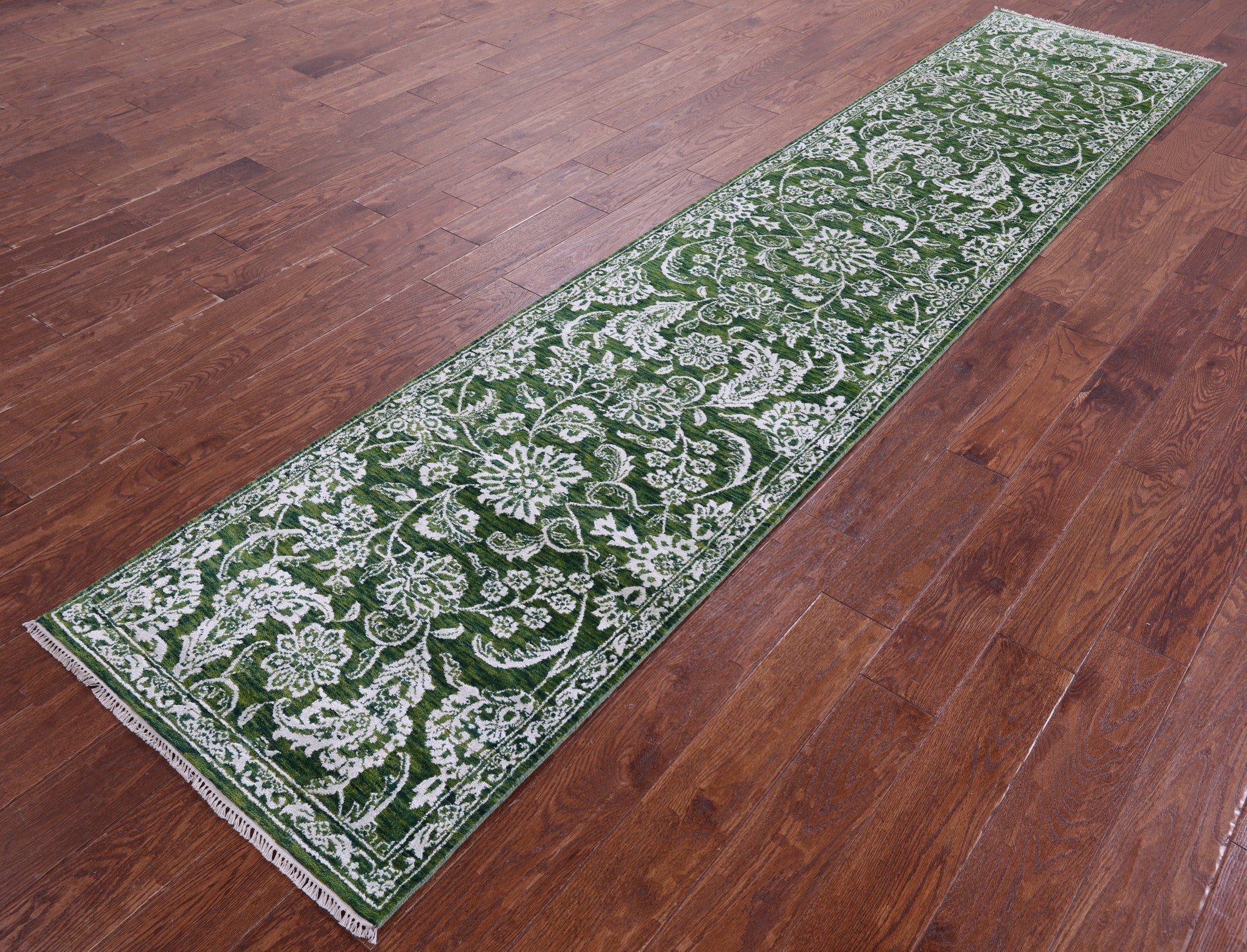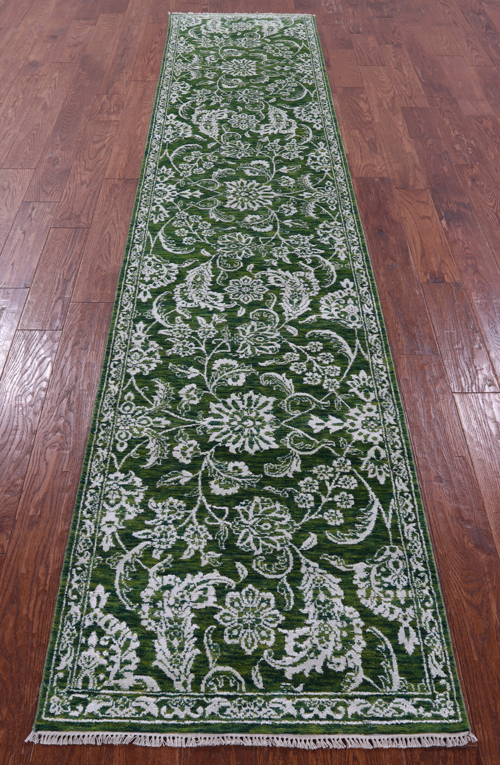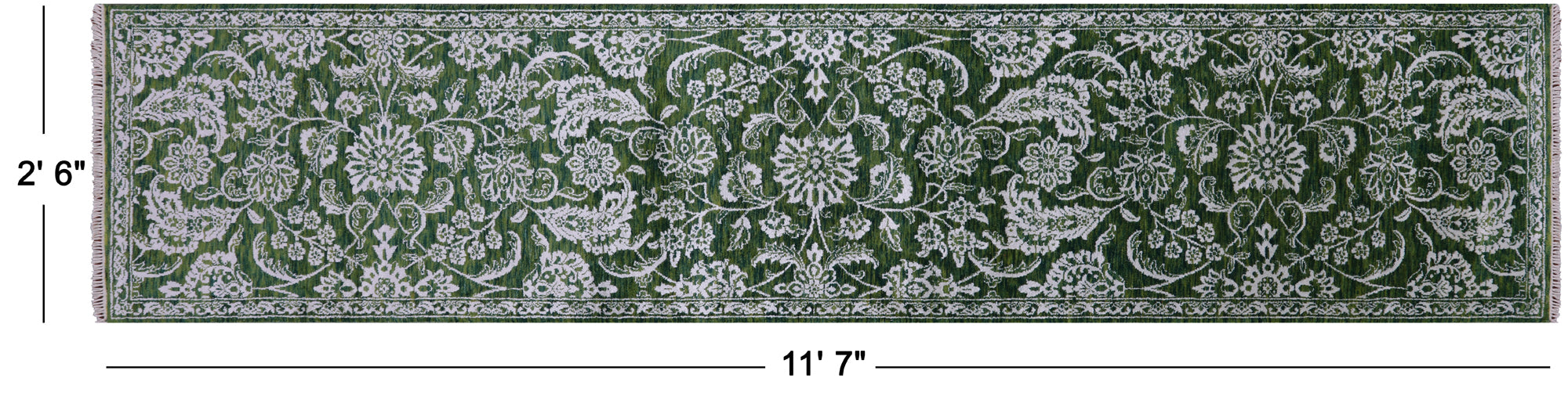 Green 2' 6" X 11' 7" Persian Tabriz Hand-Knotted Wool & Silk Runner Rug - Q23496 is backordered and will ship as soon as it is back in stock.