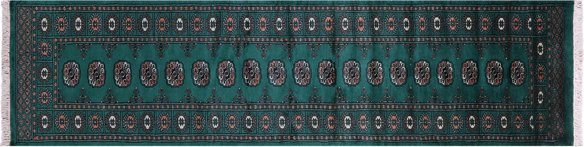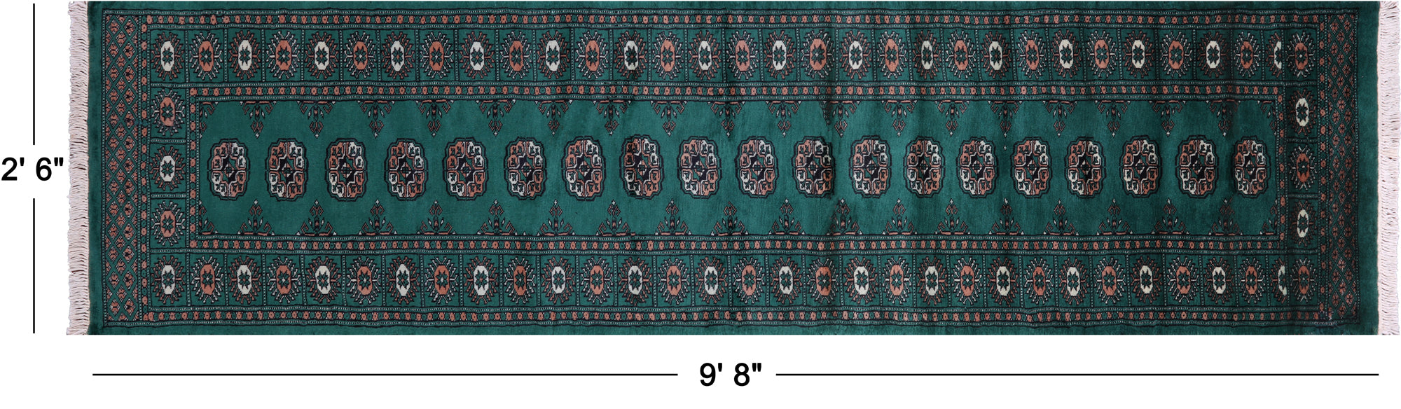 Green 2' 6" X 9' 8" Silky Bokhara Handmade Wool Runner Rug - Q23787