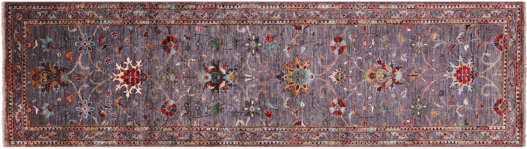 Grey Hand-Knotted Persian Tabriz Wool Runner Rug 2' 10" X 9' 8" - Q17388