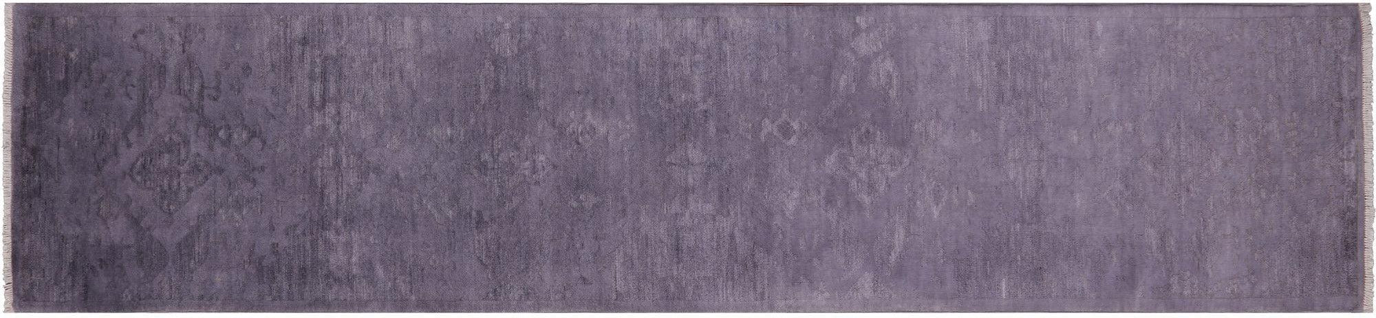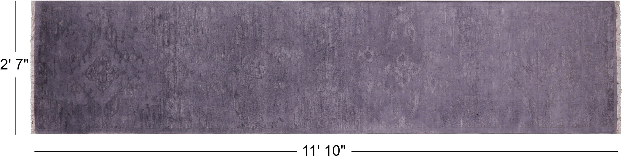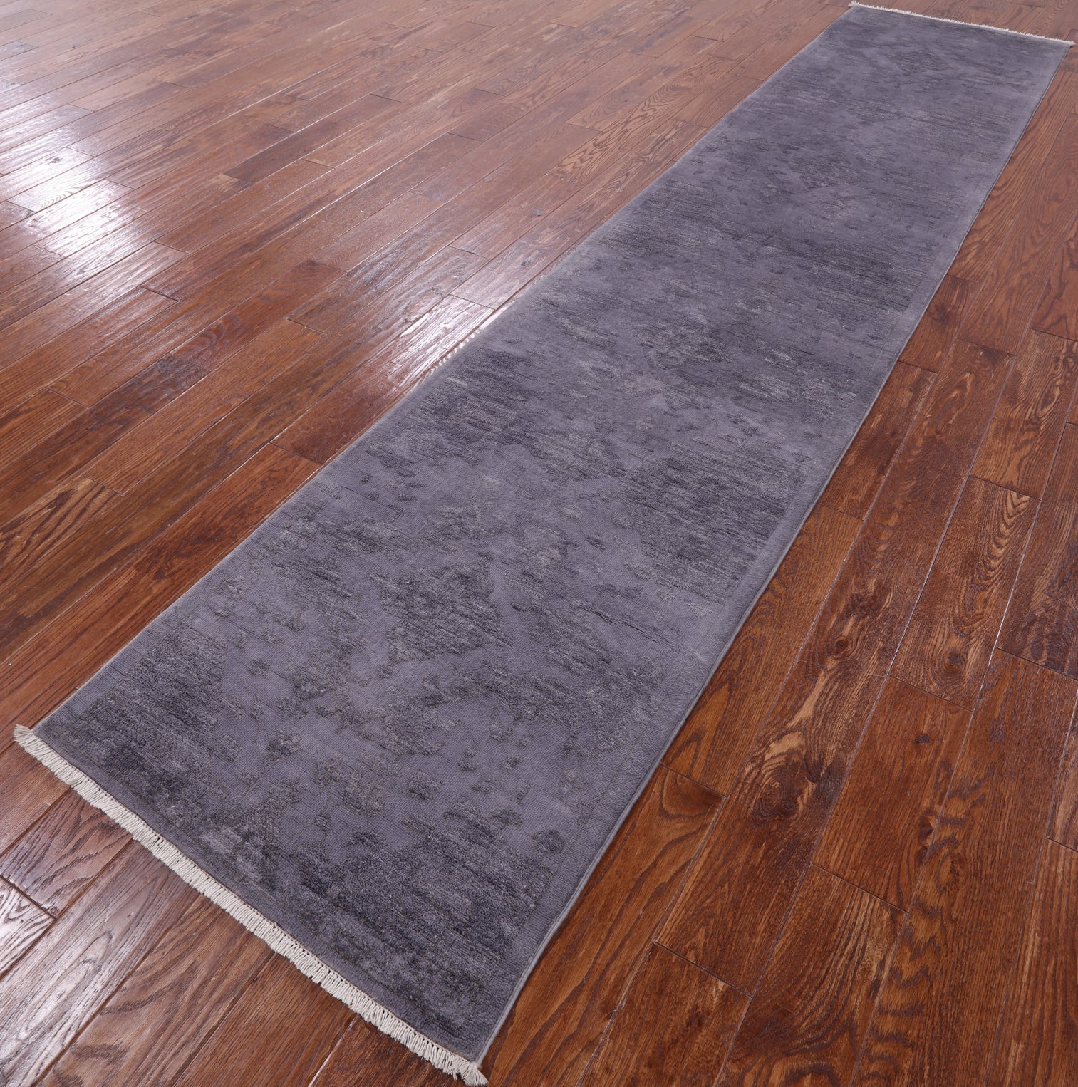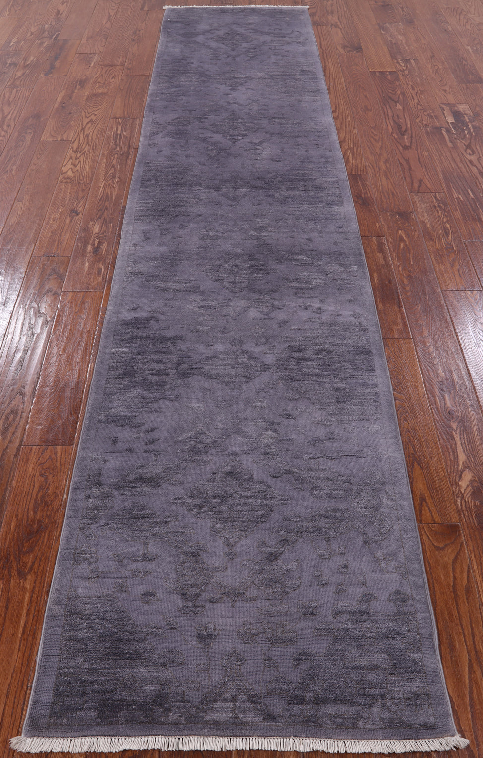 Grey Handmade Overdyed Full Pile Wool Runner Rug 2' 7" X 11' 10" - Q6766