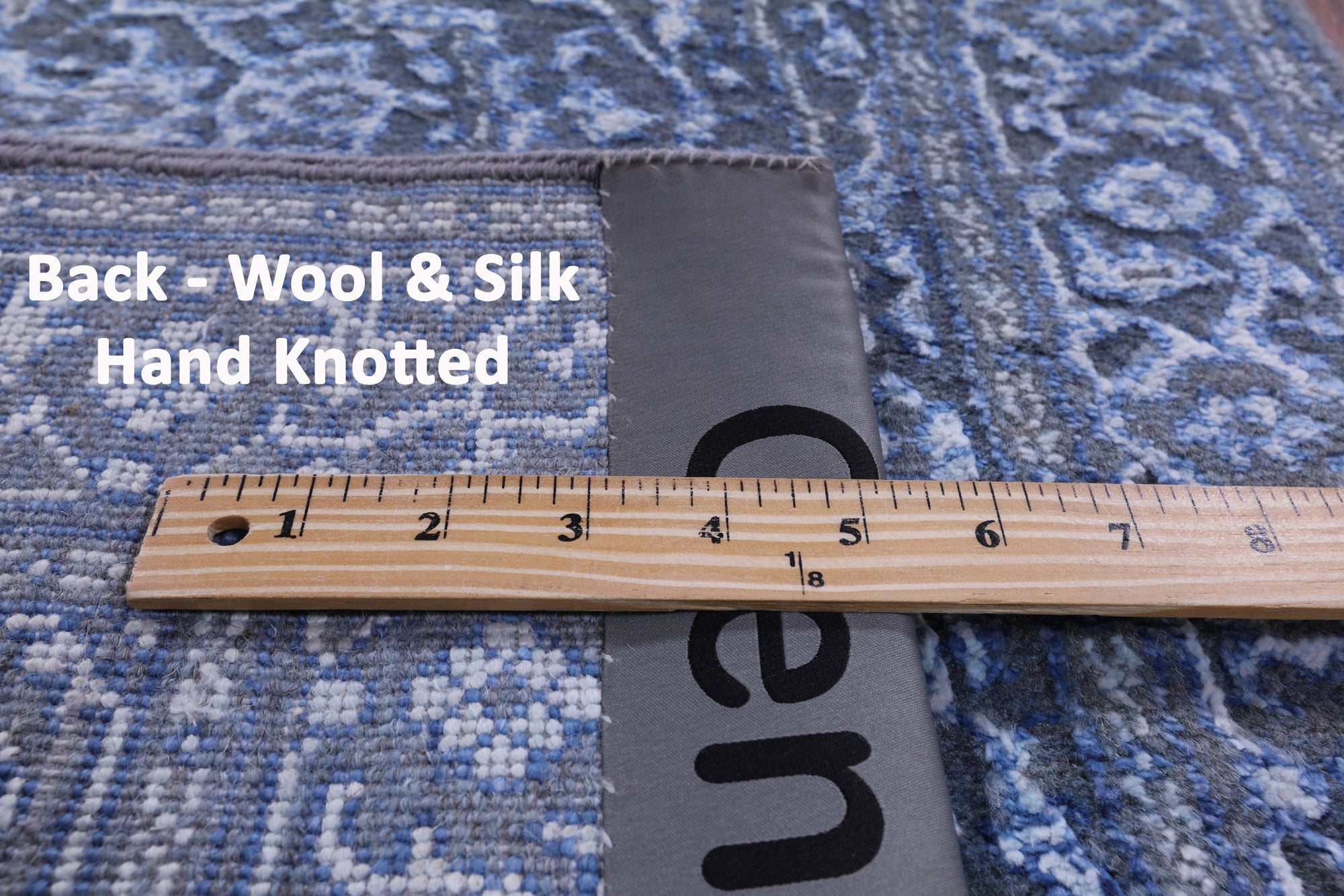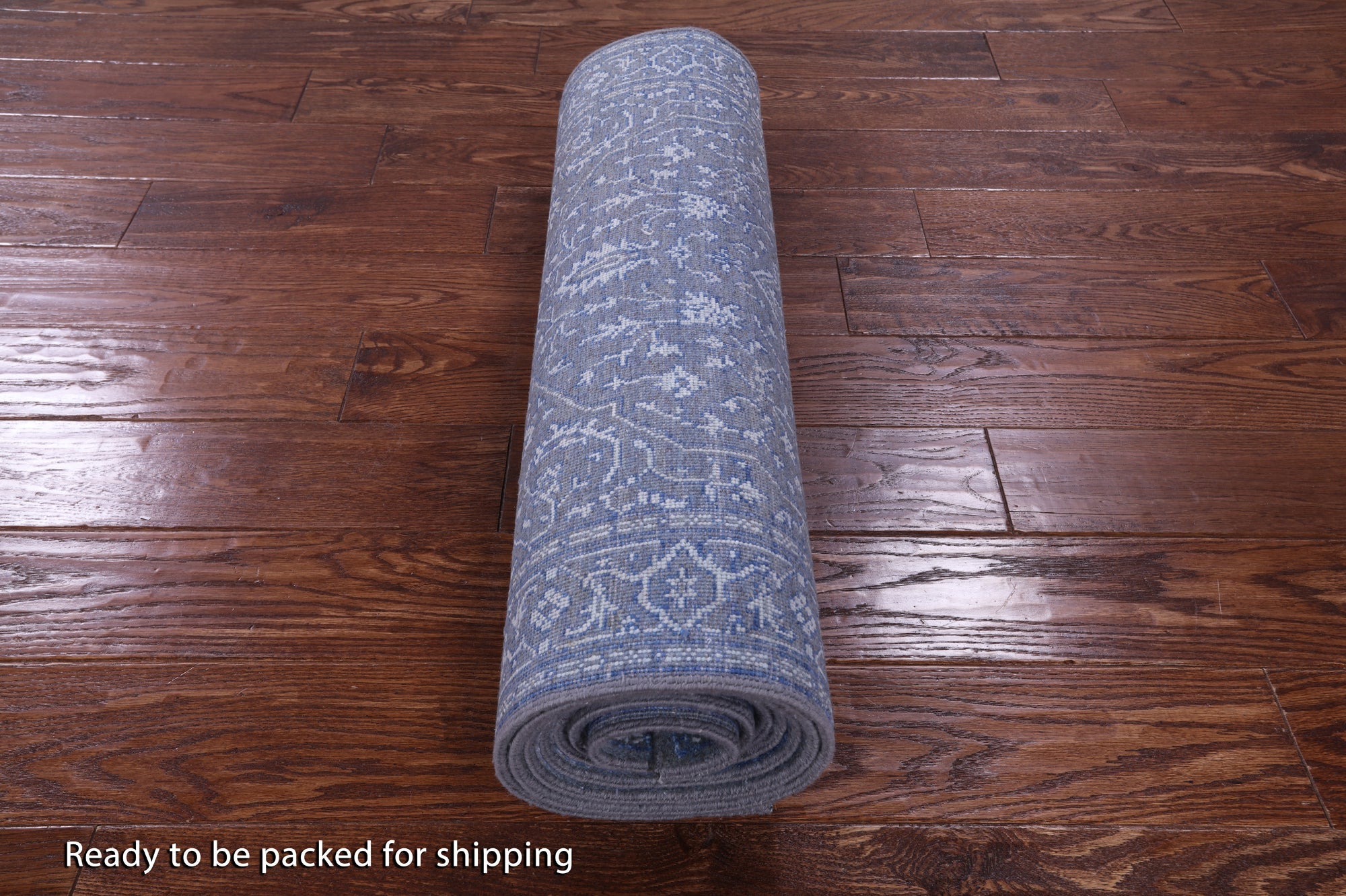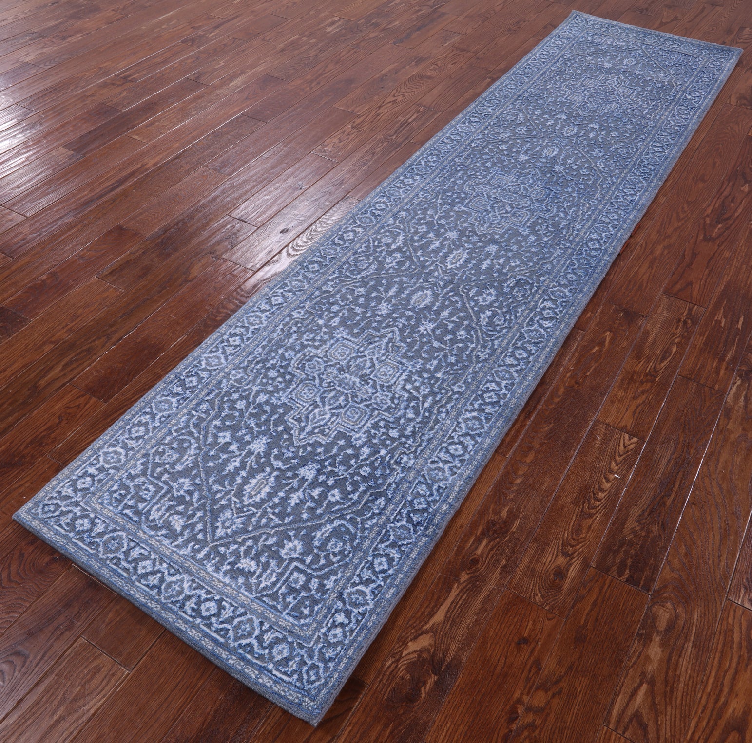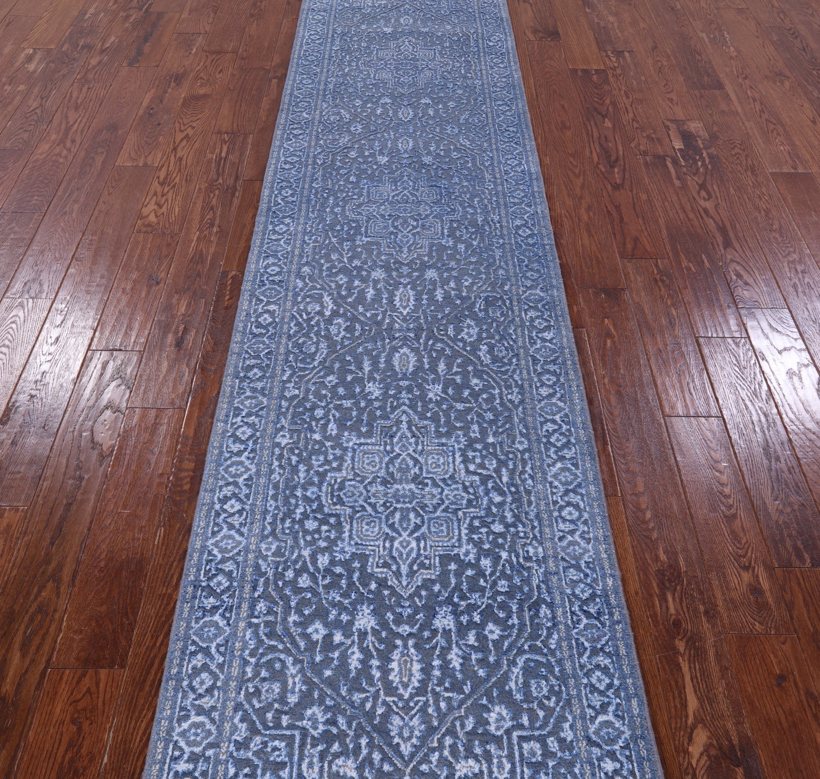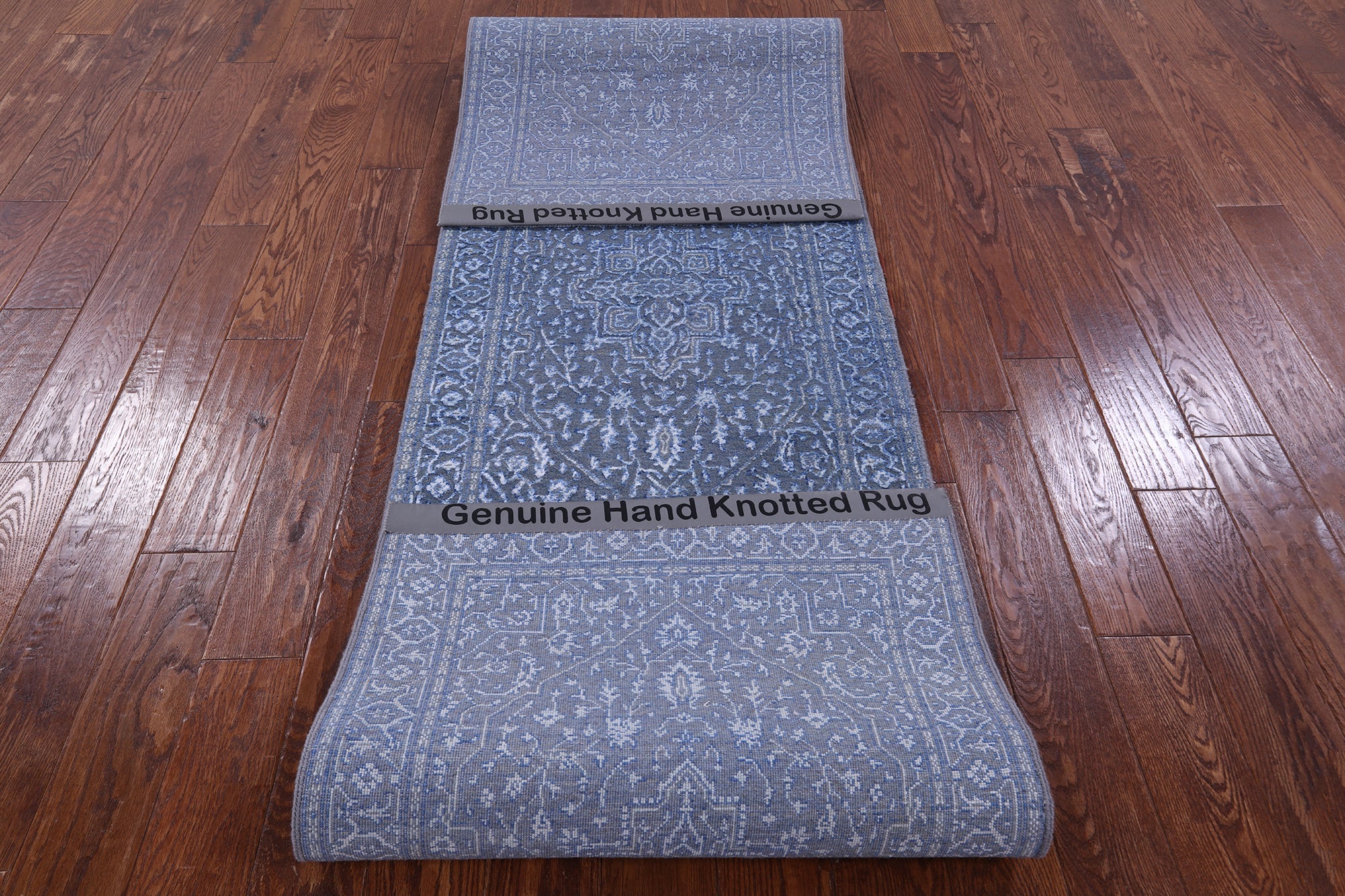 Grey 2' 7" X 10' 3" Persian Heriz Serapi Hand Knotted Wool & Silk Runner Rug - Q13682