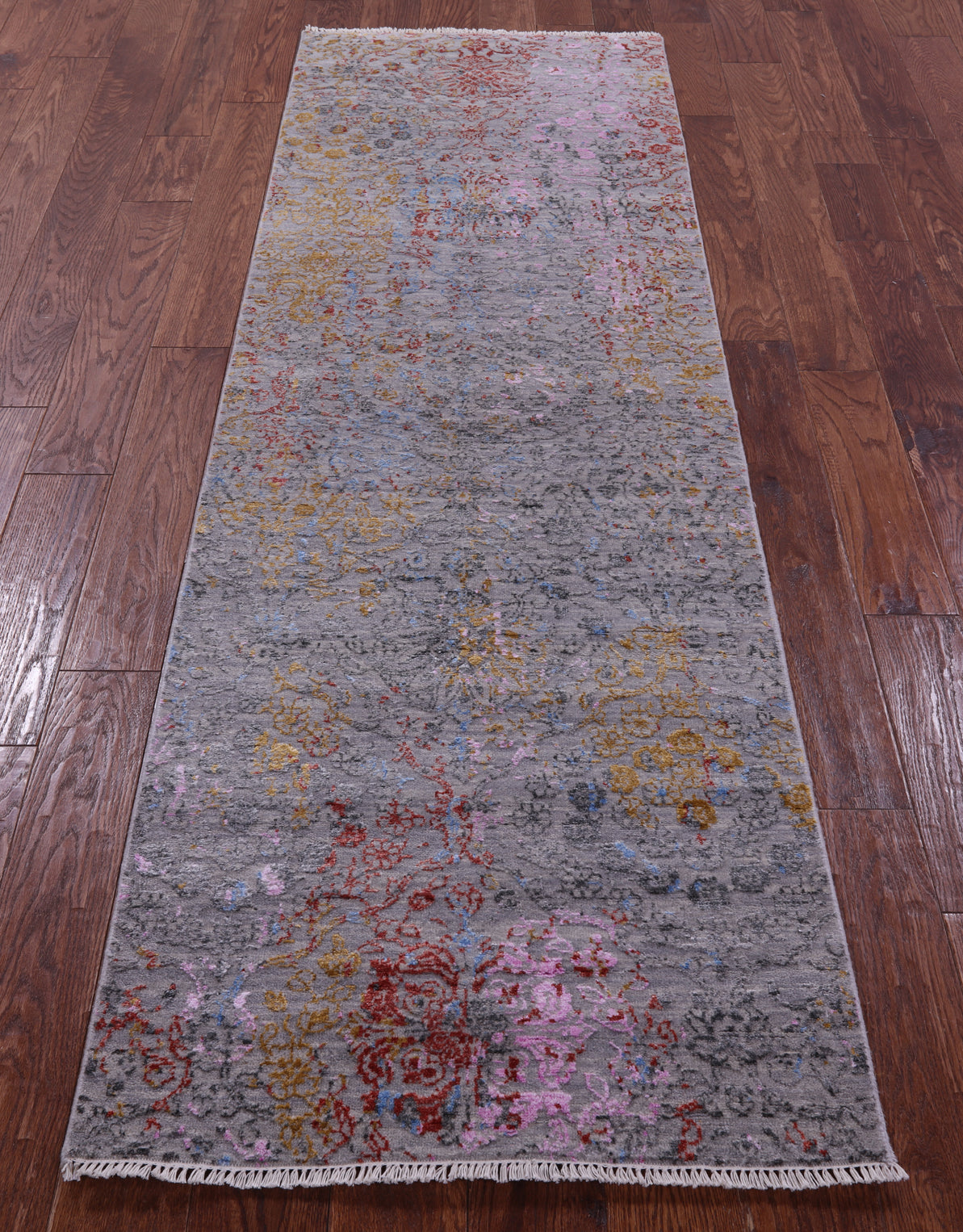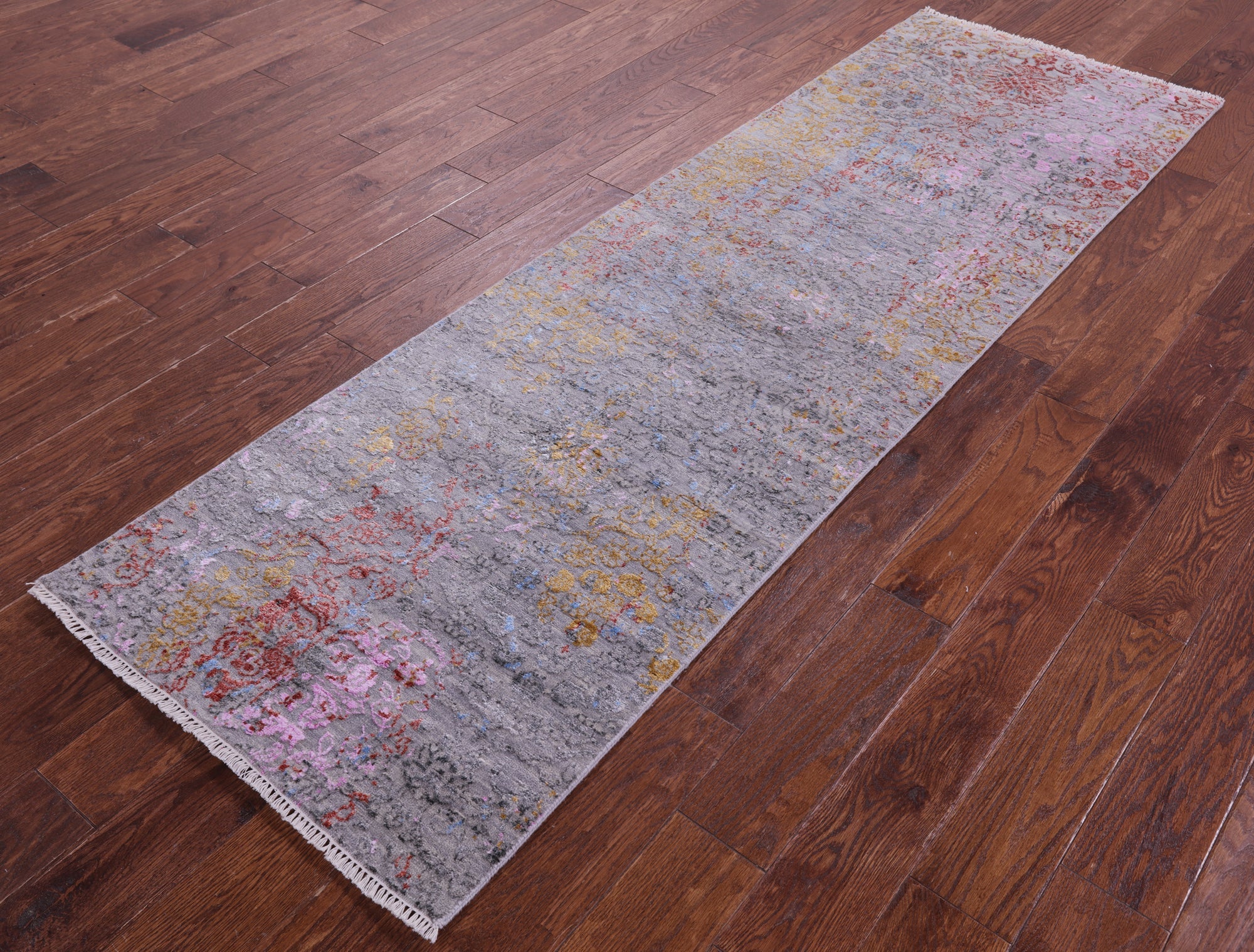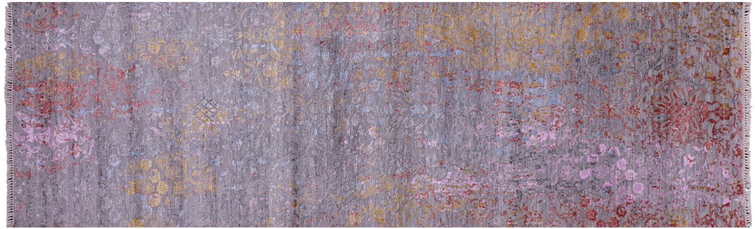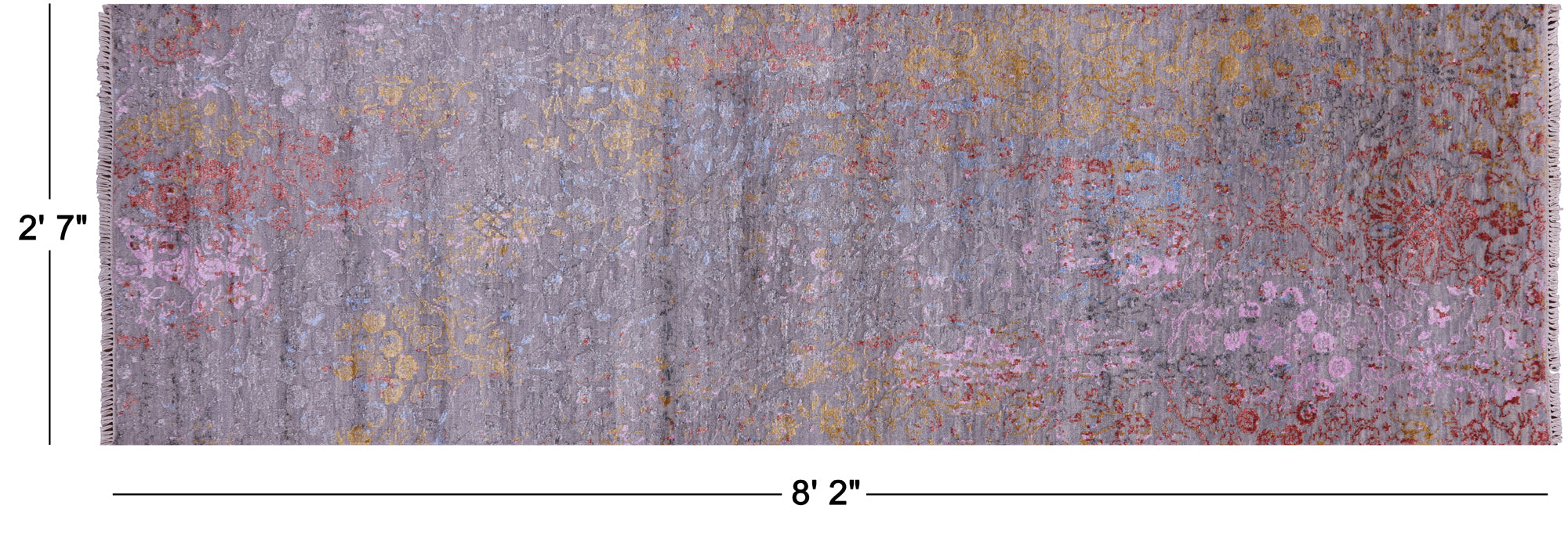 Grey 2' 7" X 8' 2" Persian Tabriz Hand Knotted Wool & Silk Runner Rug - Q23492