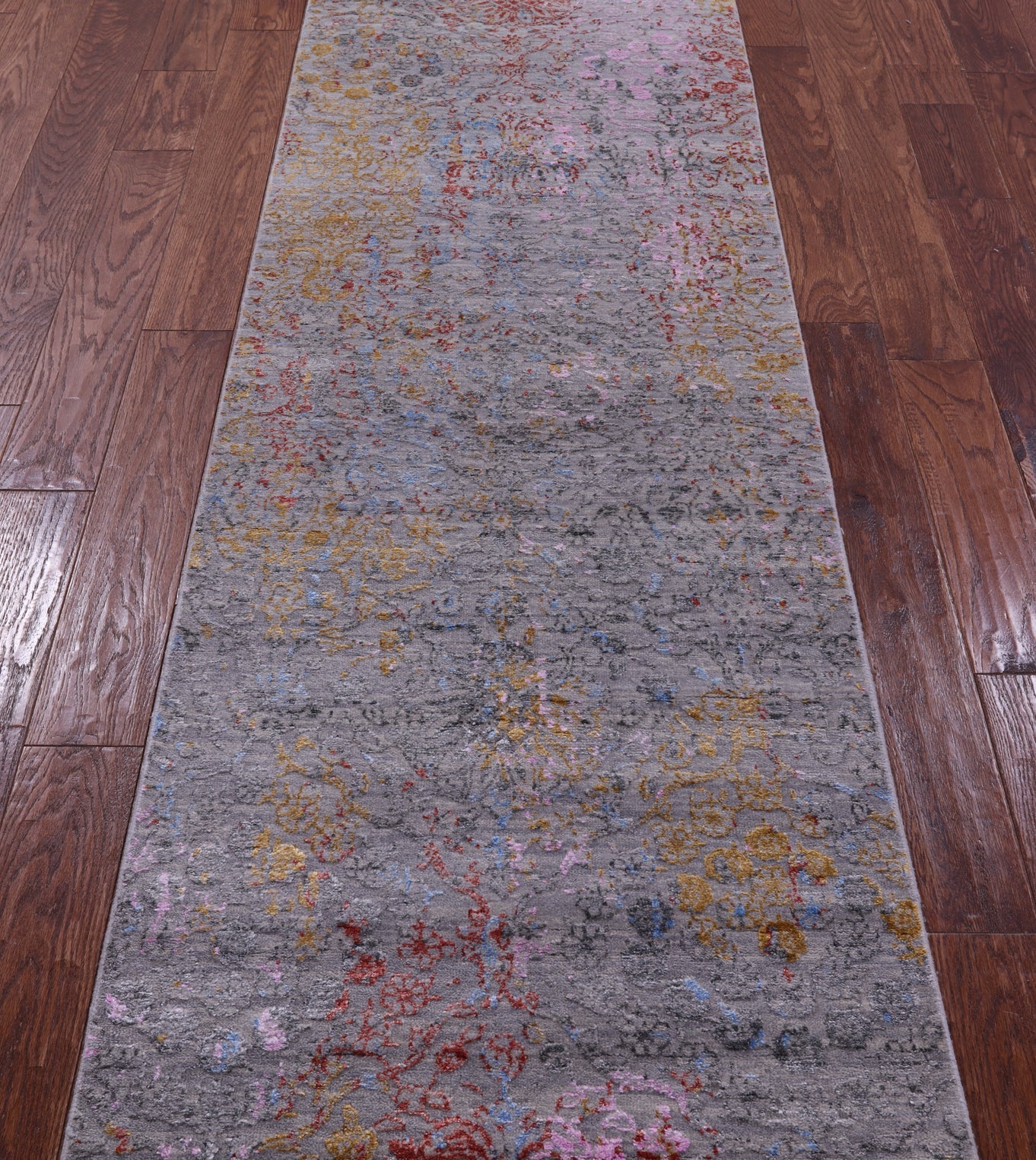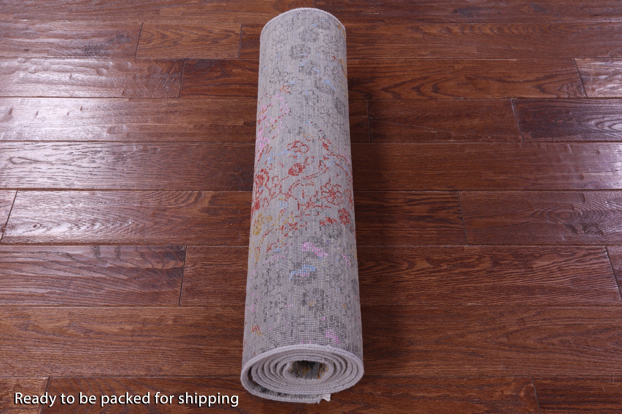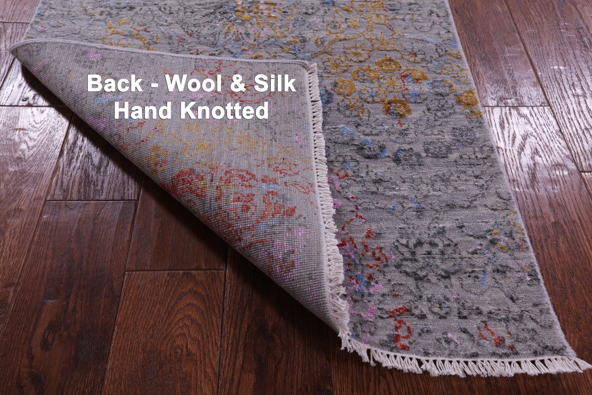Grey 2' 7" X 8' 2" Persian Tabriz Hand Knotted Wool & Silk Runner Rug - Q23492