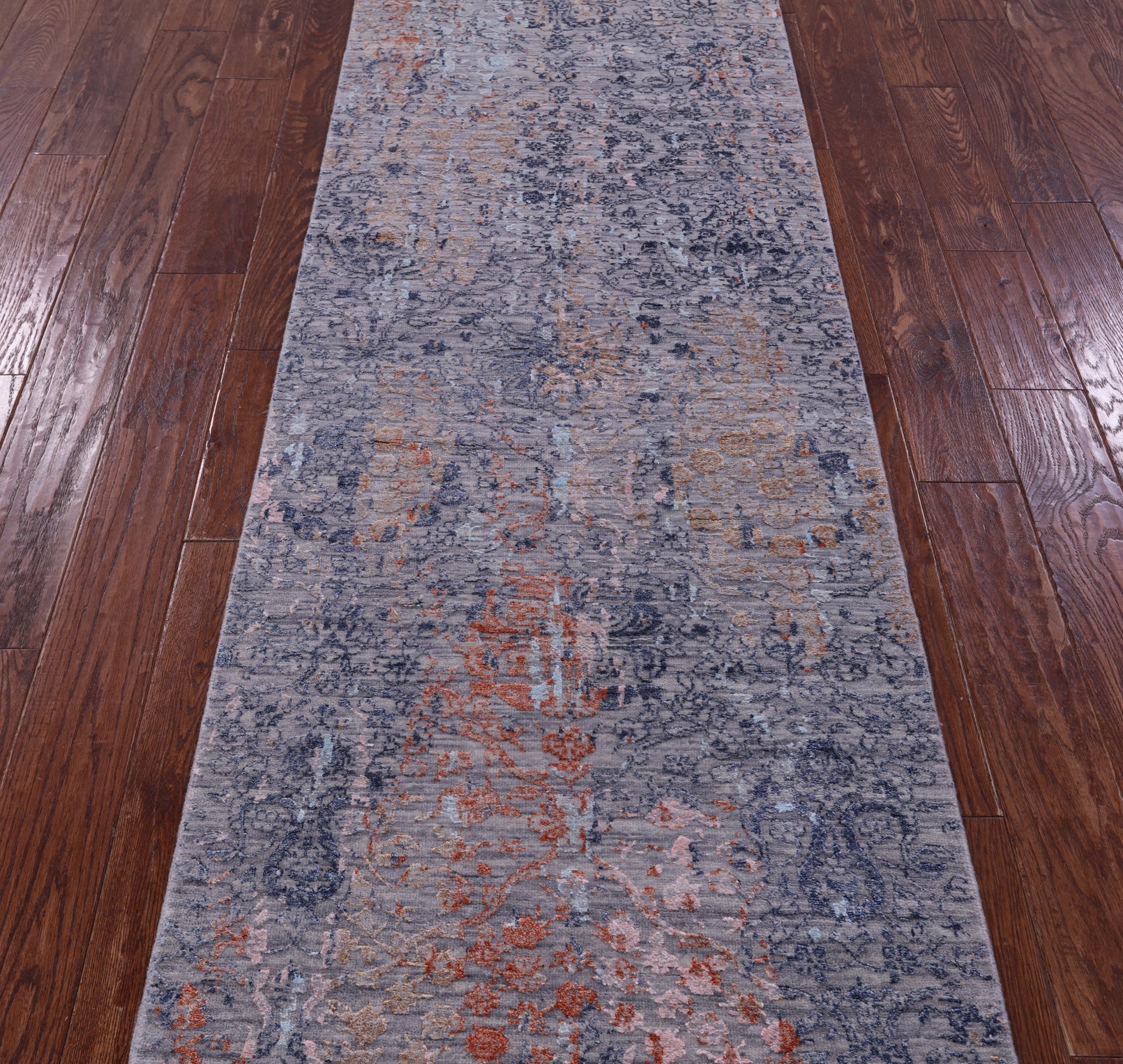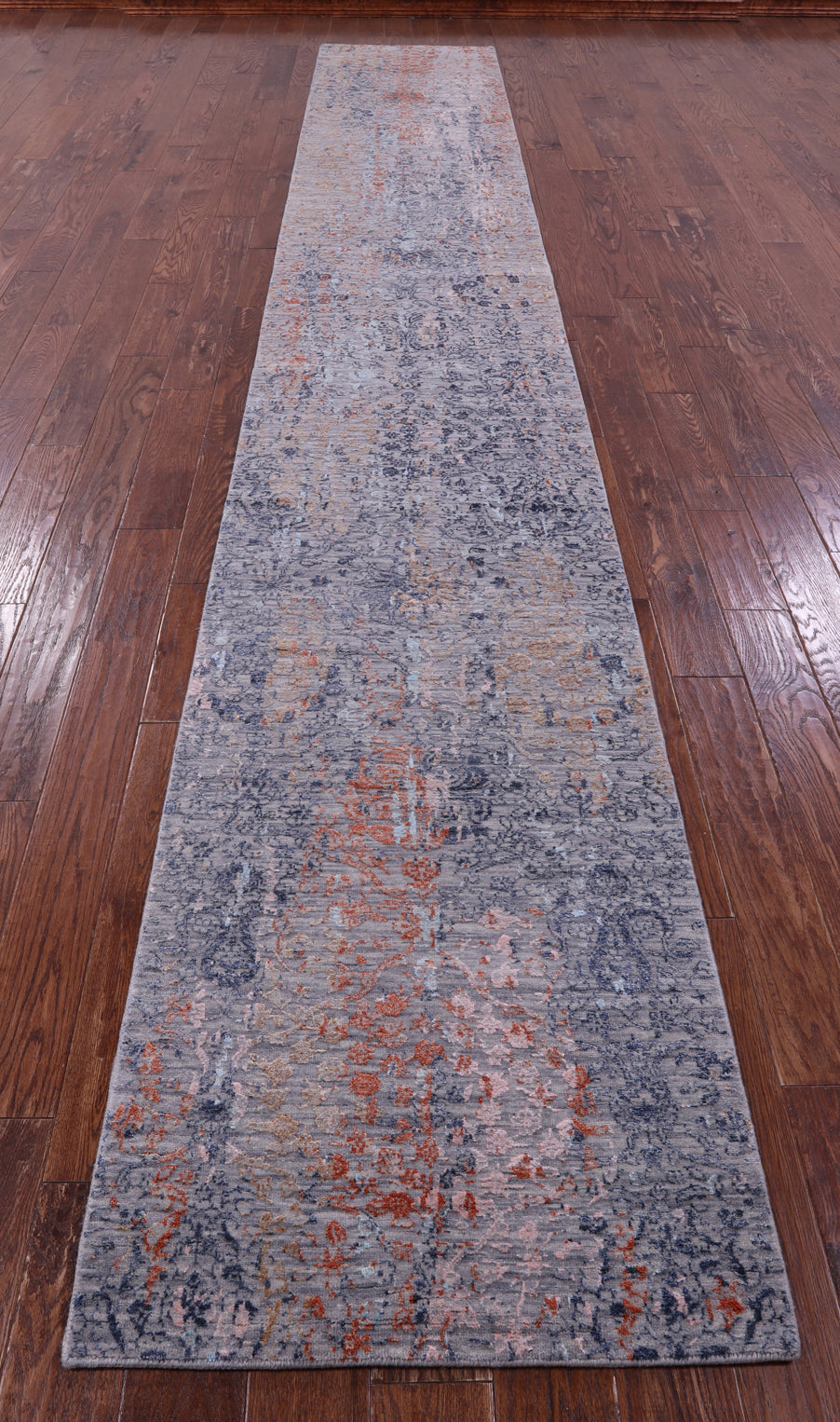 Grey Runner Modern Handmade Wool & Silk Rug 2' 7" X 17' 2" - Q22486