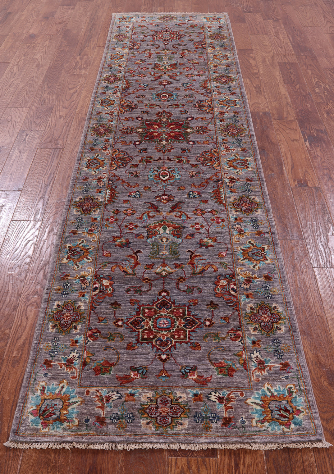 Grey 2' 9" X 10' 1" Runner Persian Tabriz Handmade Wool Rug - Q16336