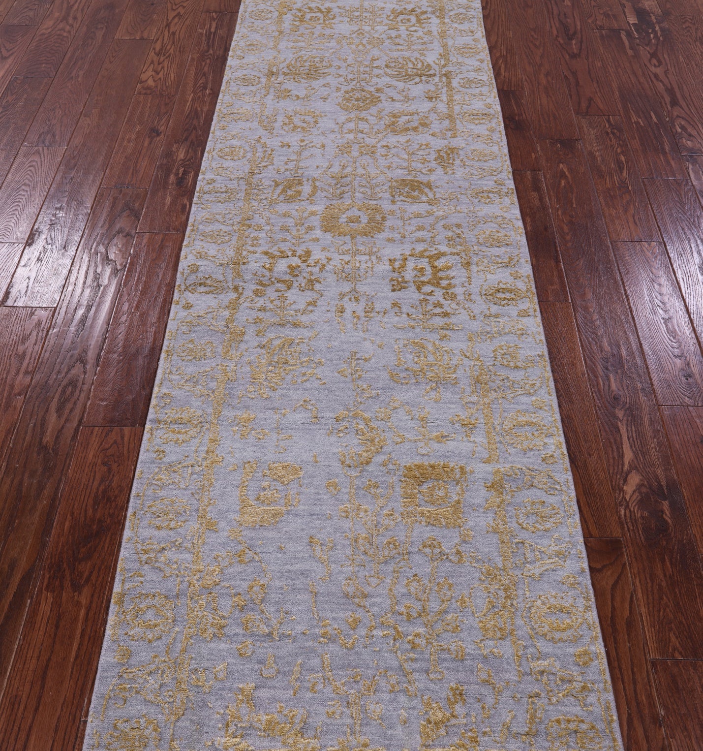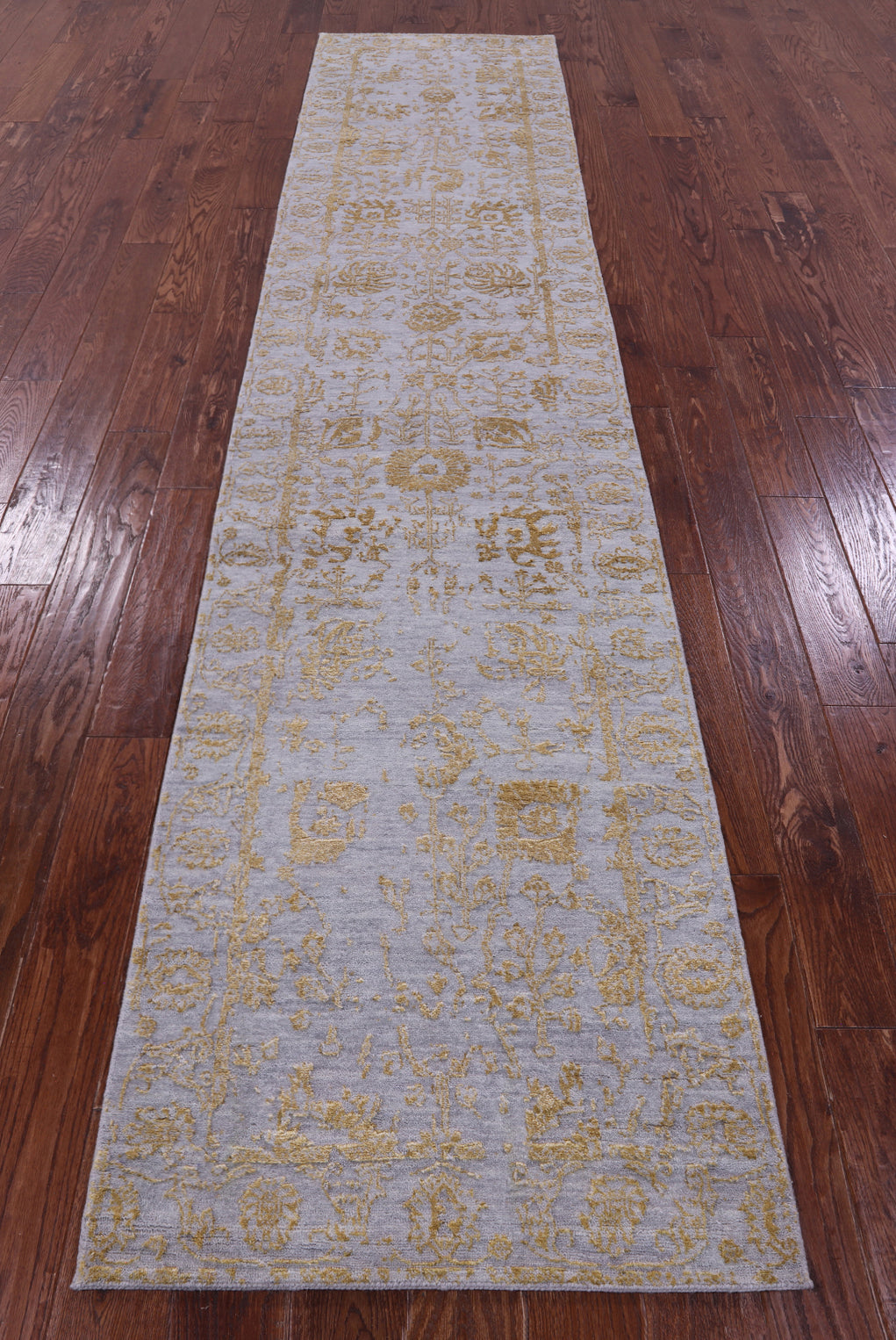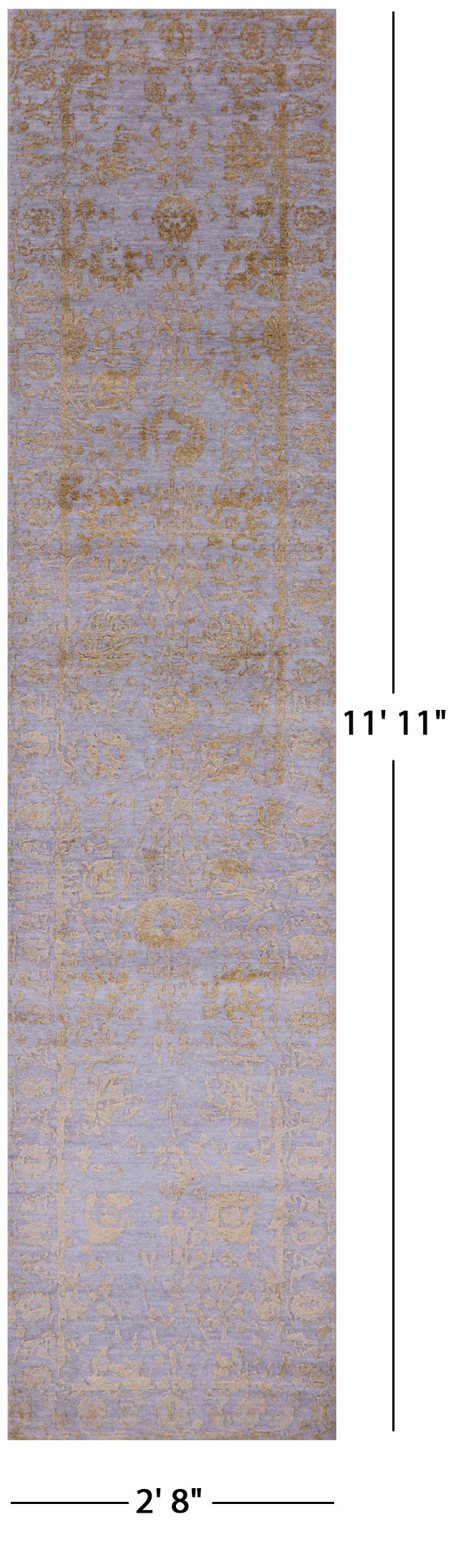 Grey 2' 8" X 11' 11" Runner Persian Tabriz Handmade Wool & Silk Rug - Q21481