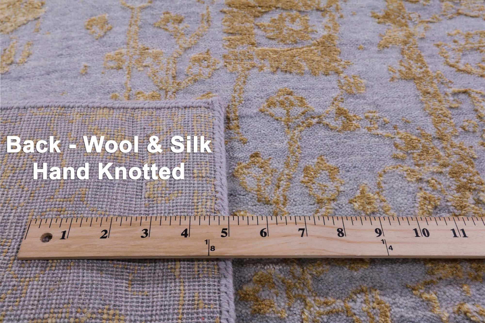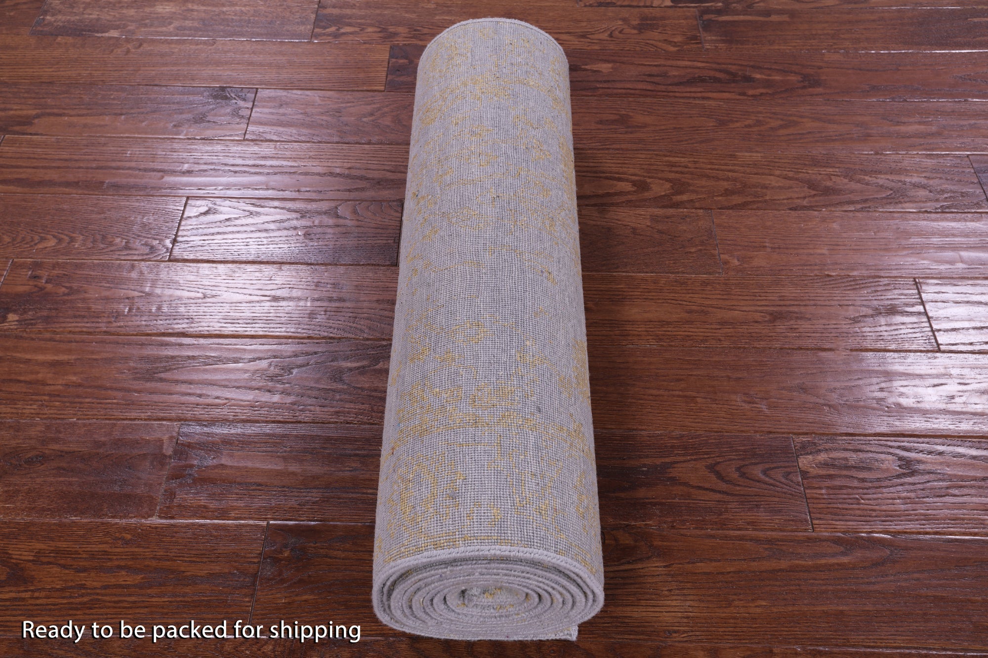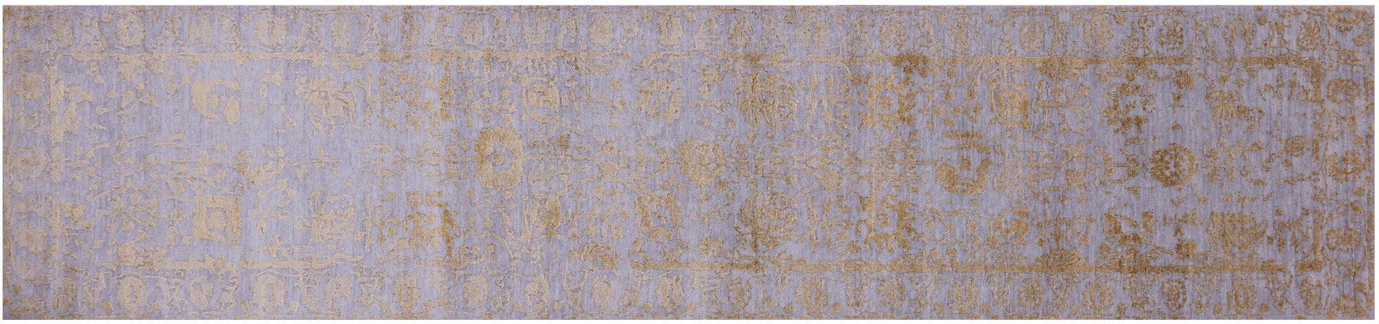 Grey 2' 8" X 11' 11" Runner Persian Tabriz Handmade Wool & Silk Rug - Q21481