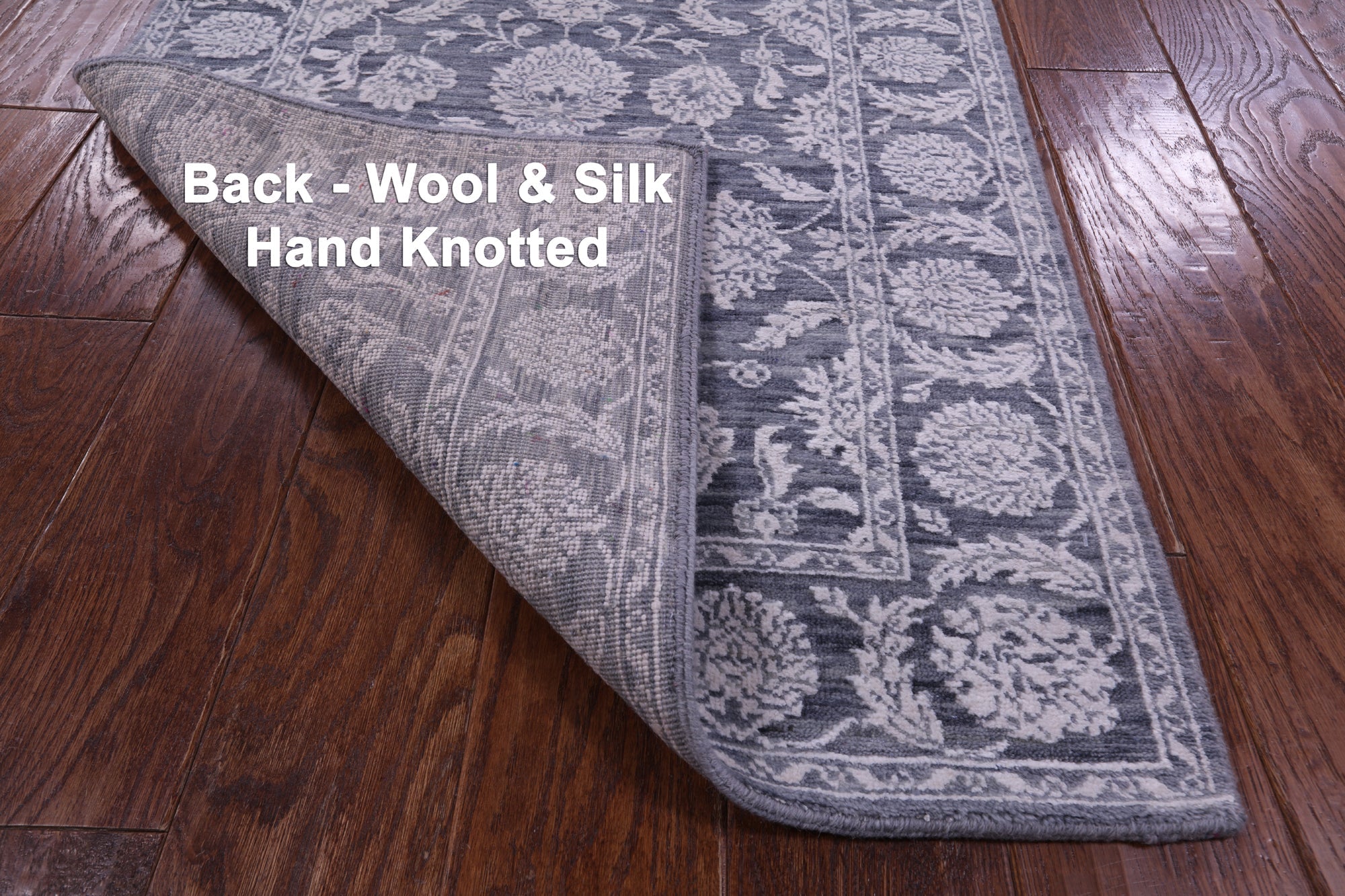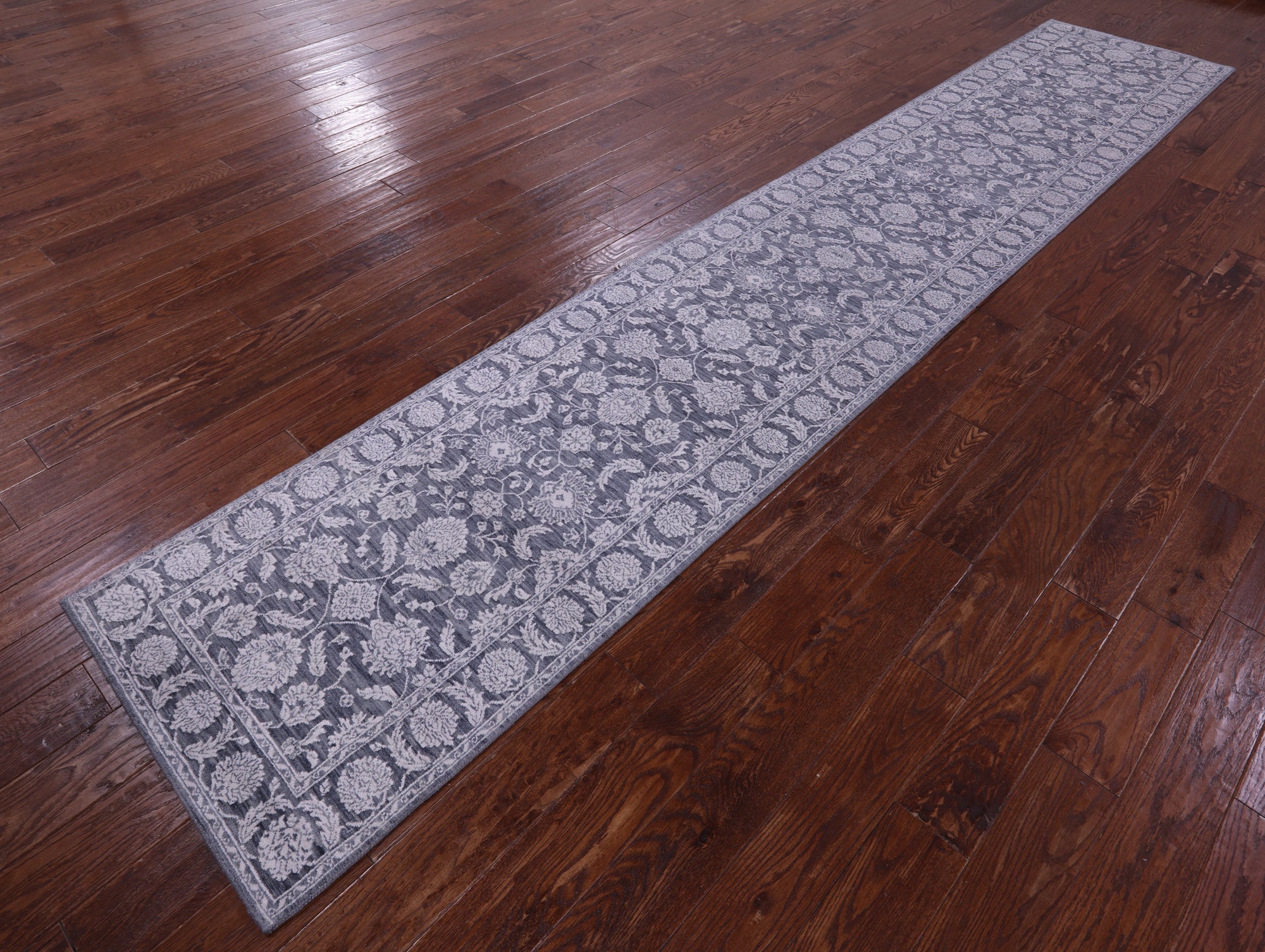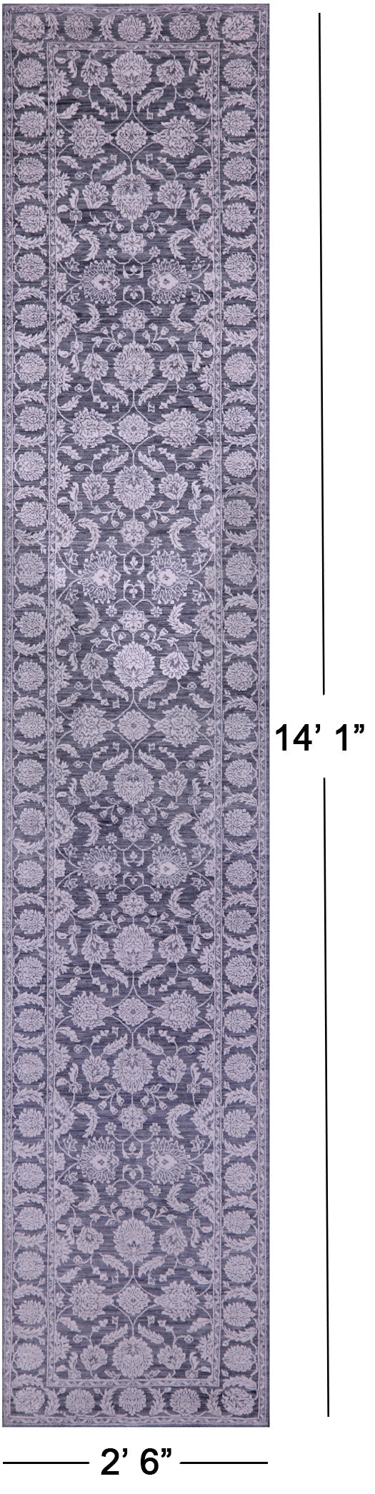 Grey 2' 6" X 14' 1"Runner Persian Tabriz Handmade Wool & Silk Rug - Q22444