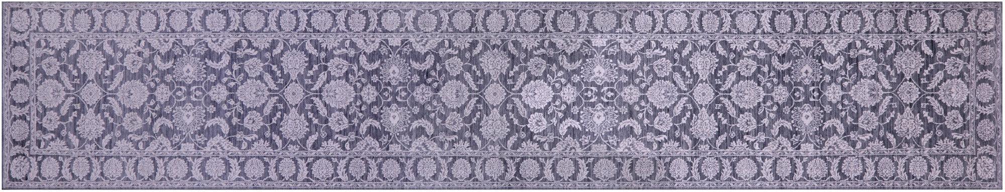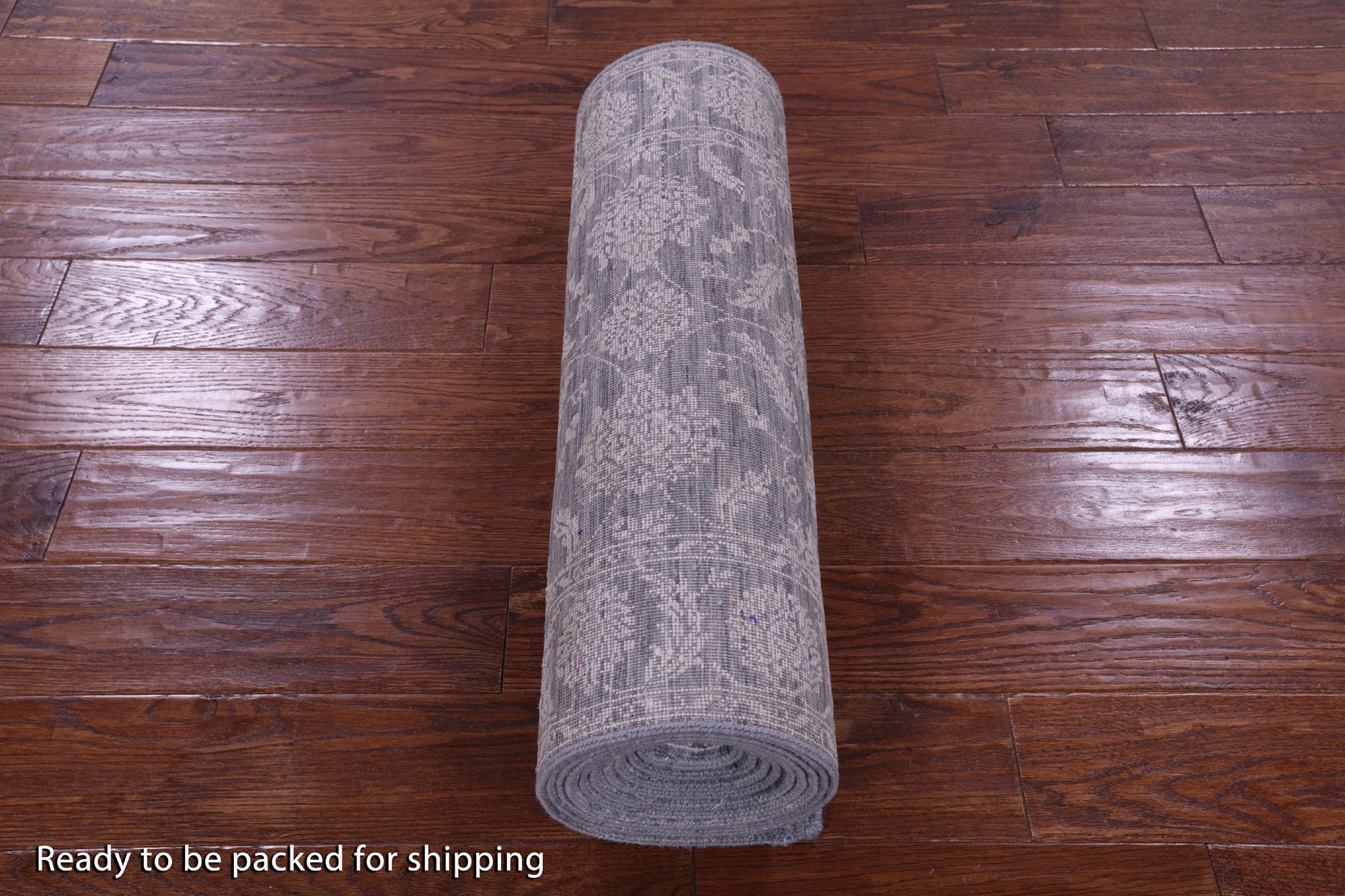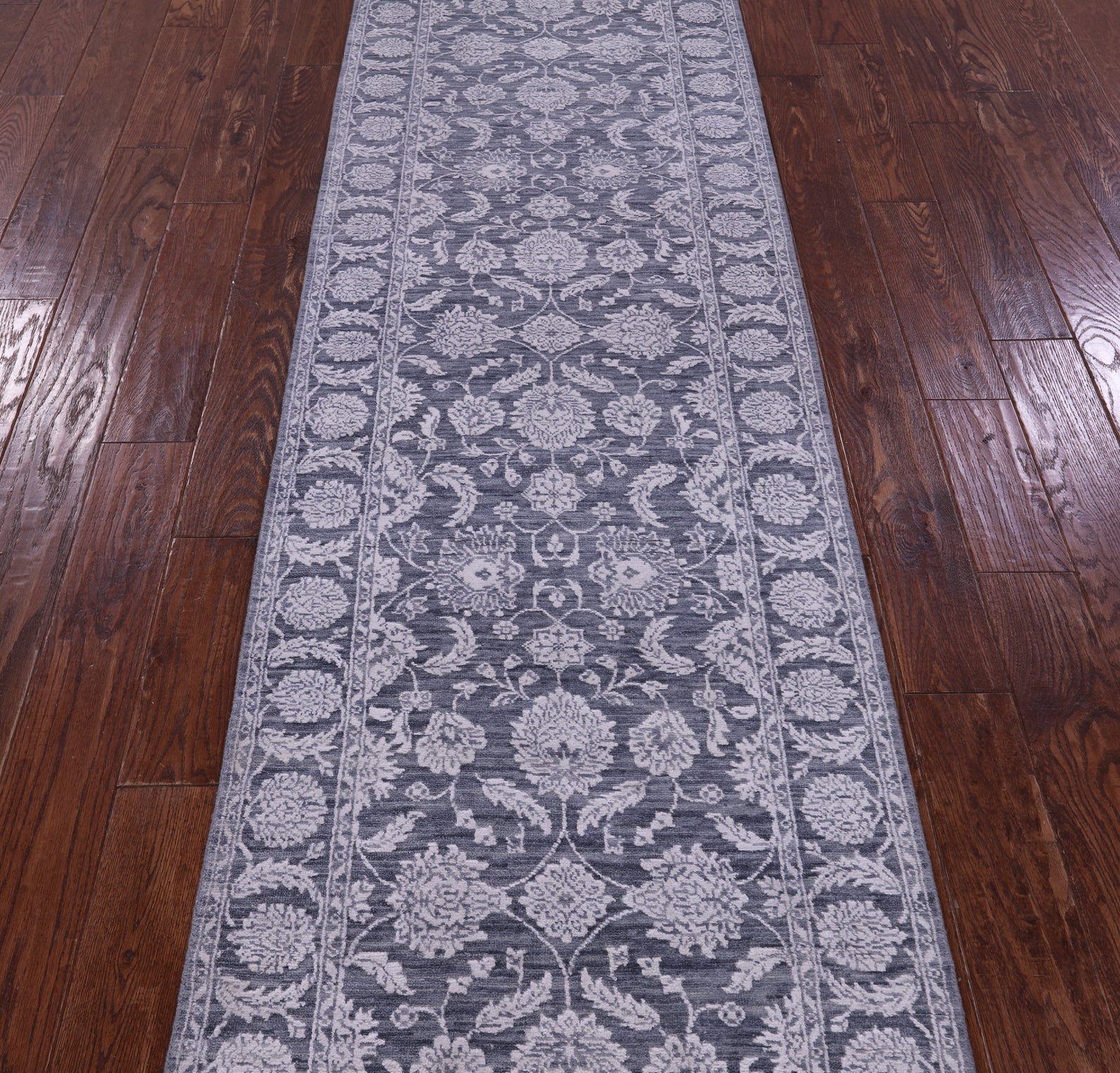 Grey 2' 6" X 14' 1"Runner Persian Tabriz Handmade Wool & Silk Rug - Q22444