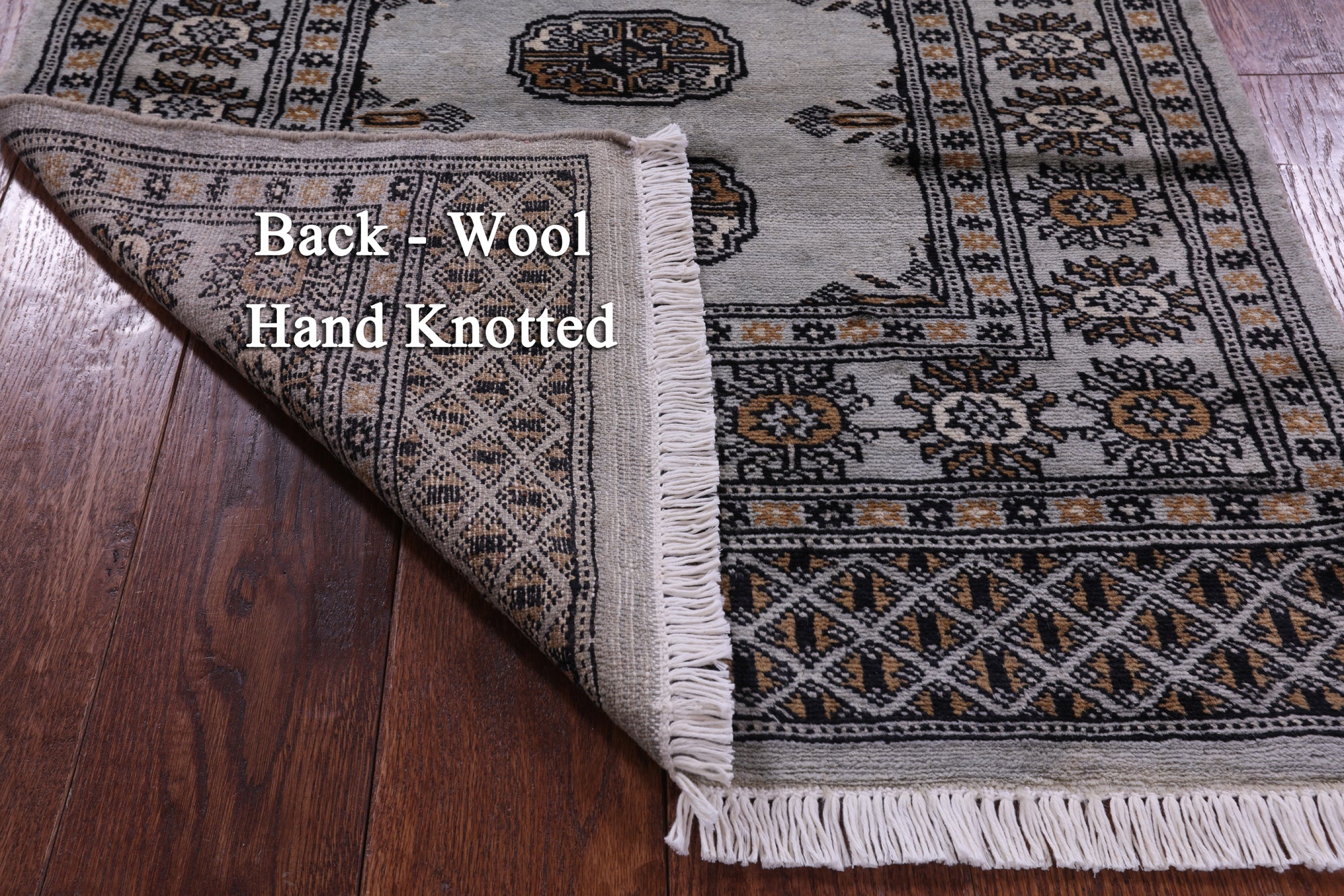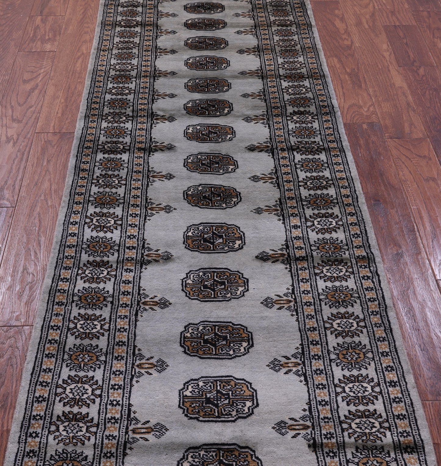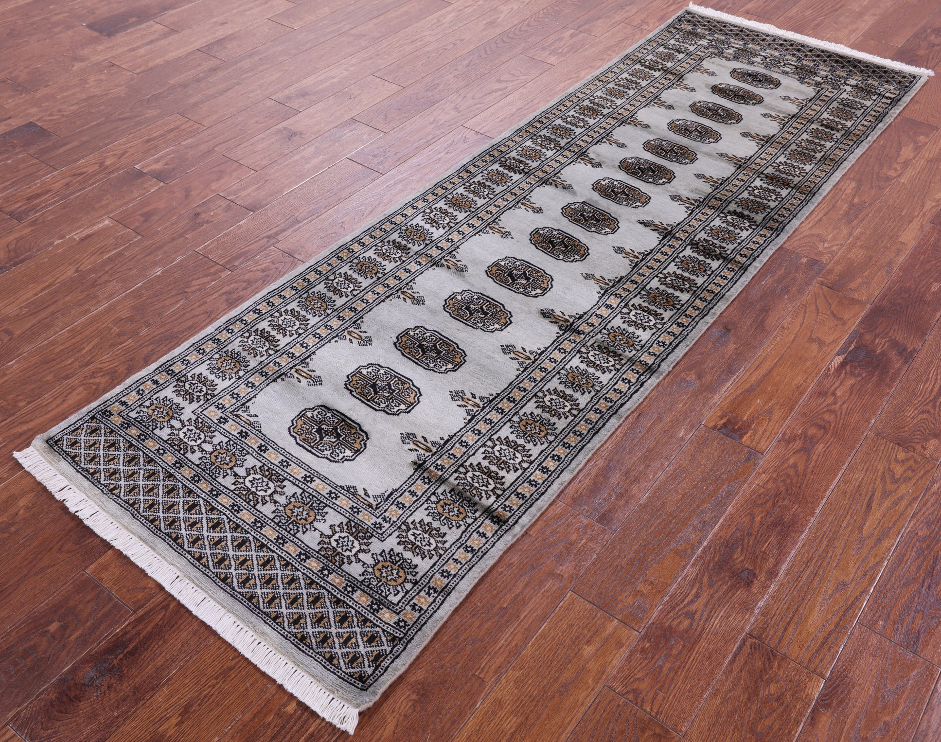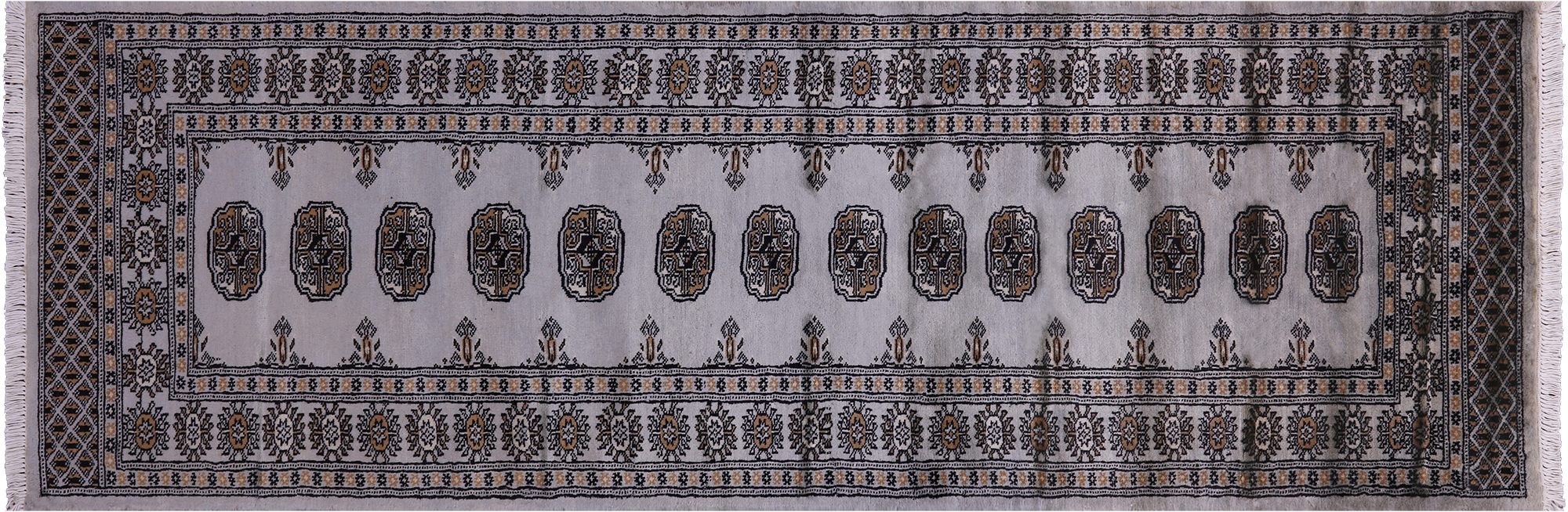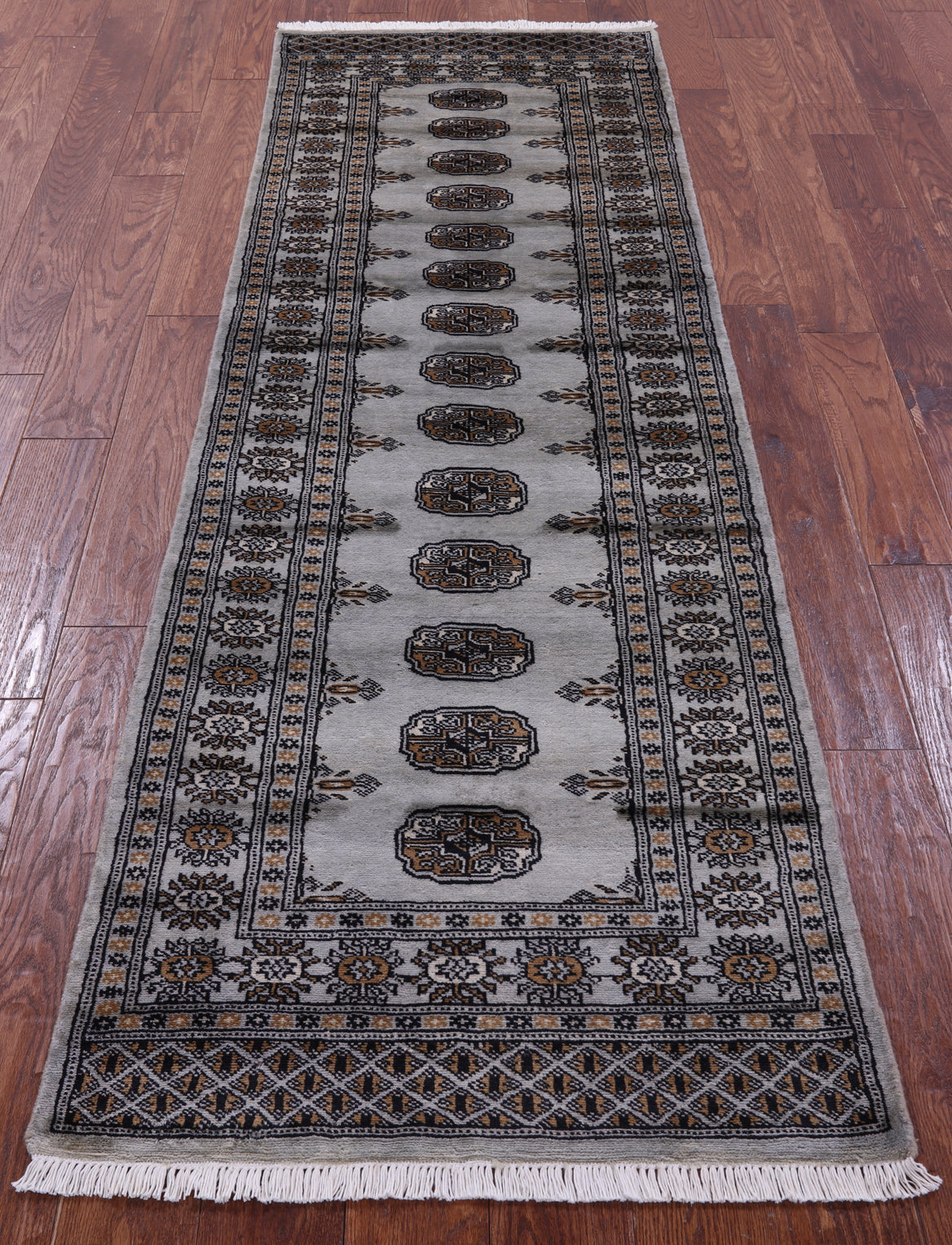 Grey 2' 7" X 8' 0" Runner Silky Bokhara Hand-Knotted Wool Rug - Q23793