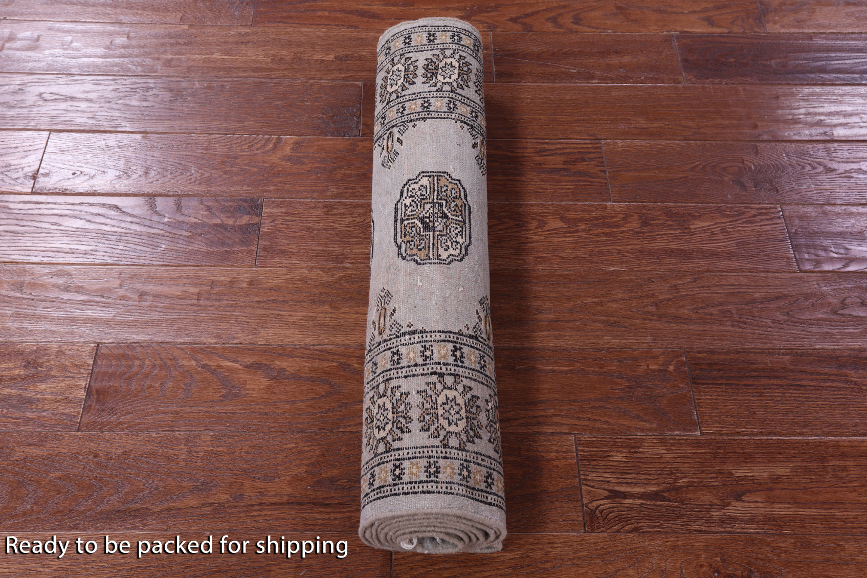 Grey 2' 7" X 8' 0" Runner Silky Bokhara Hand-Knotted Wool Rug - Q23793 is backordered and will ship as soon as it is back in stock.