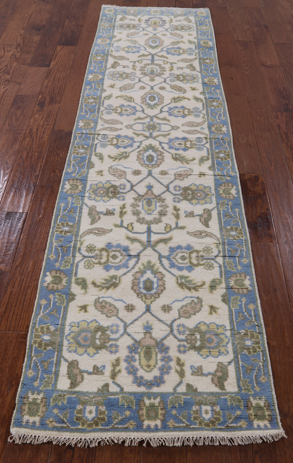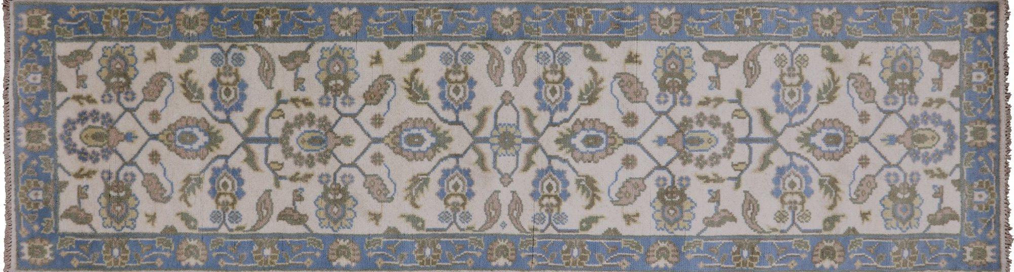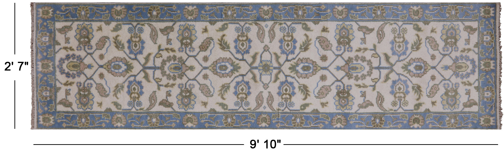Ivory Hand Knotted Turkish Oushak Runner Rug 2' 7" X 9' 10" - Q1208