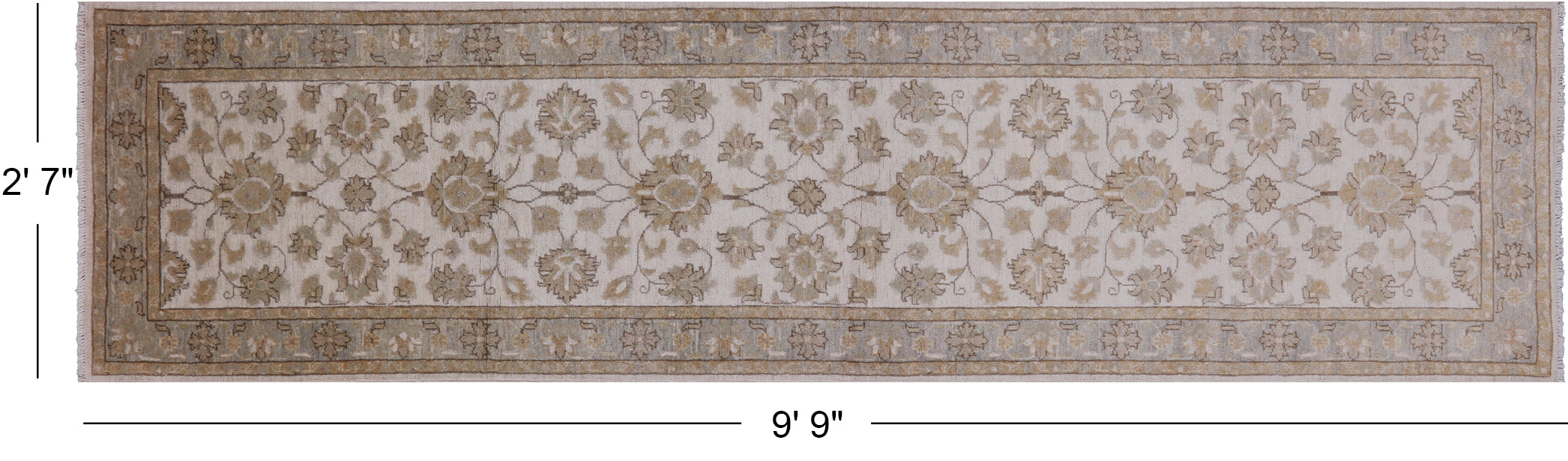 Ivory 2' 7" X 9' 9" Runner Handmade Turkish Oushak Wool Area Rug - P3348