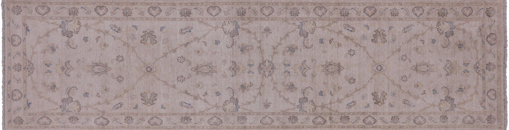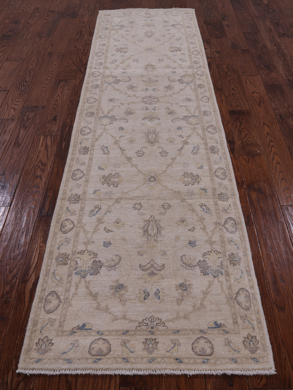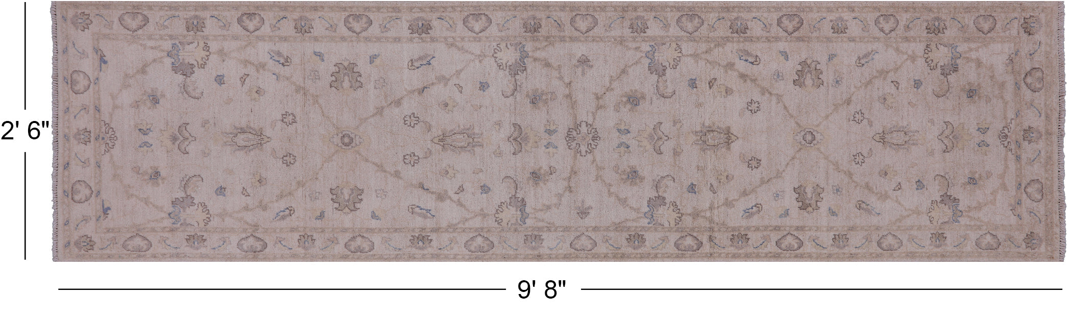 Ivory 2' 6" X 9' 8" Runner Handmade Turkish Oushak Wool Rug - P3578