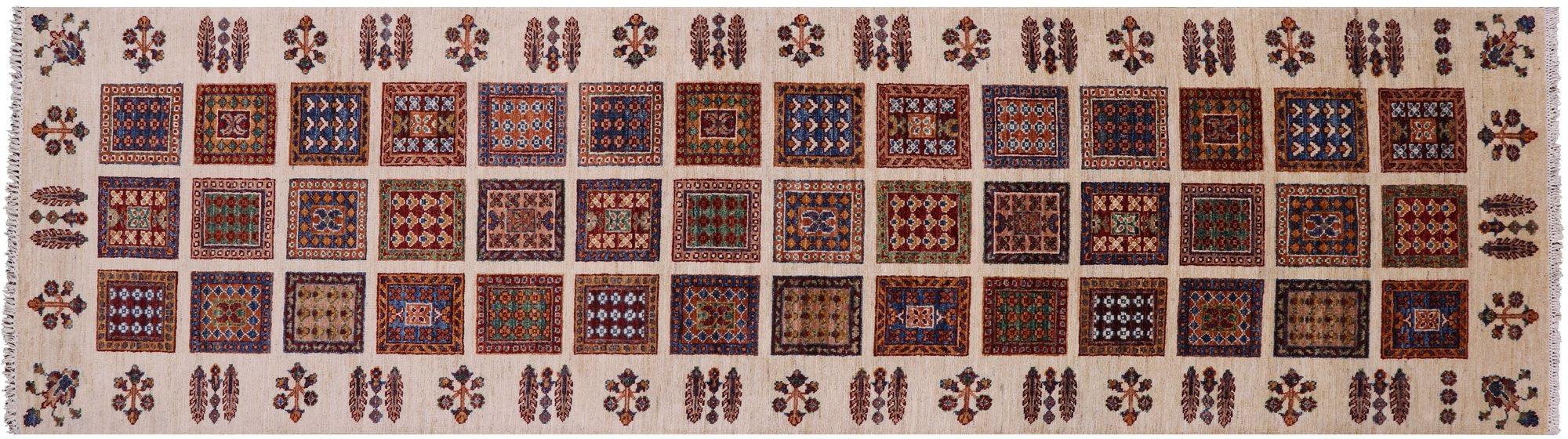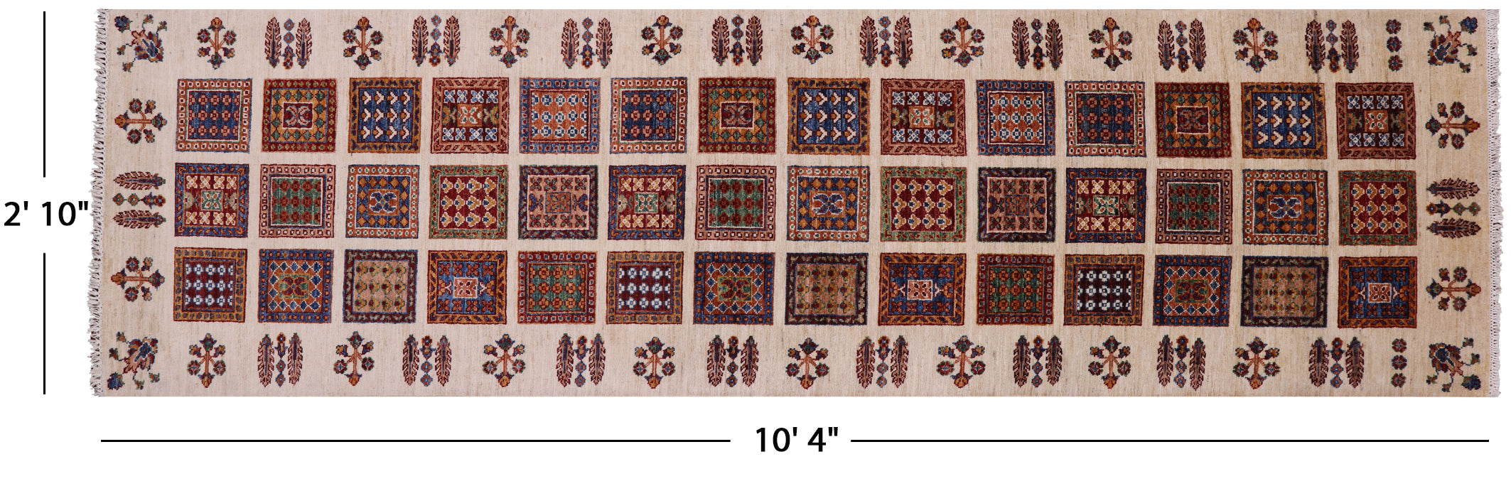 Ivory Runner Persian Garden Design Handmade Wool Rug 2' 10" X 10' 4" - Q11239