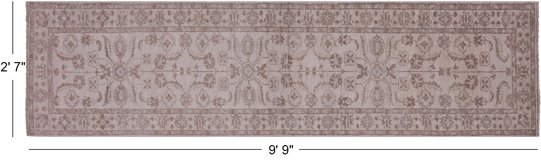 Ivory 2' 7" X 9' 9" Turkish Oushak Hand Knotted Runner Rug - P3365