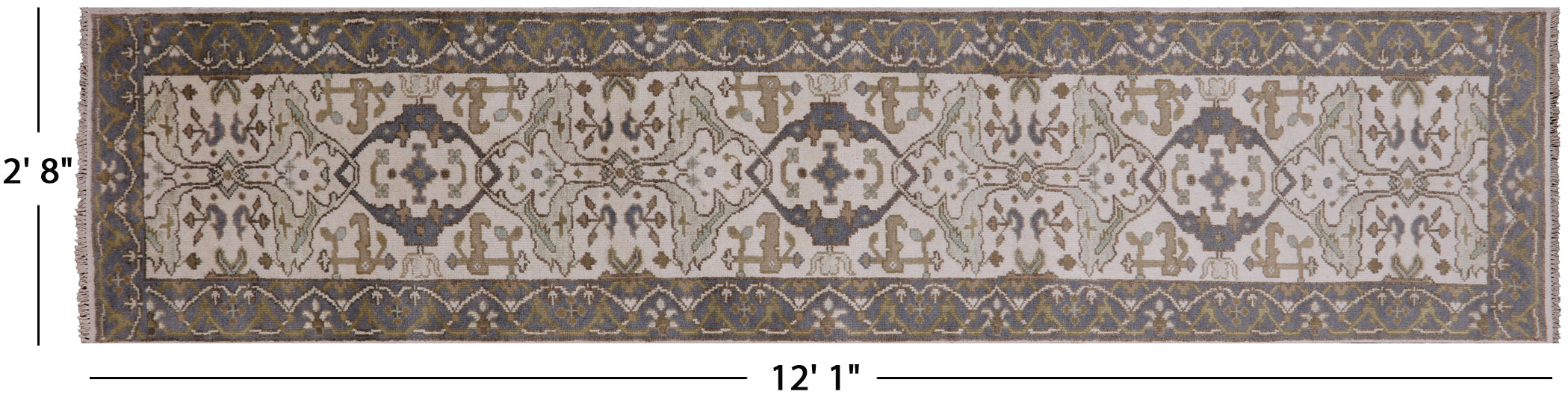 Ivory 2' 8" X 12' 1" Turkish Oushak Handmade Runner Rug - Q1189