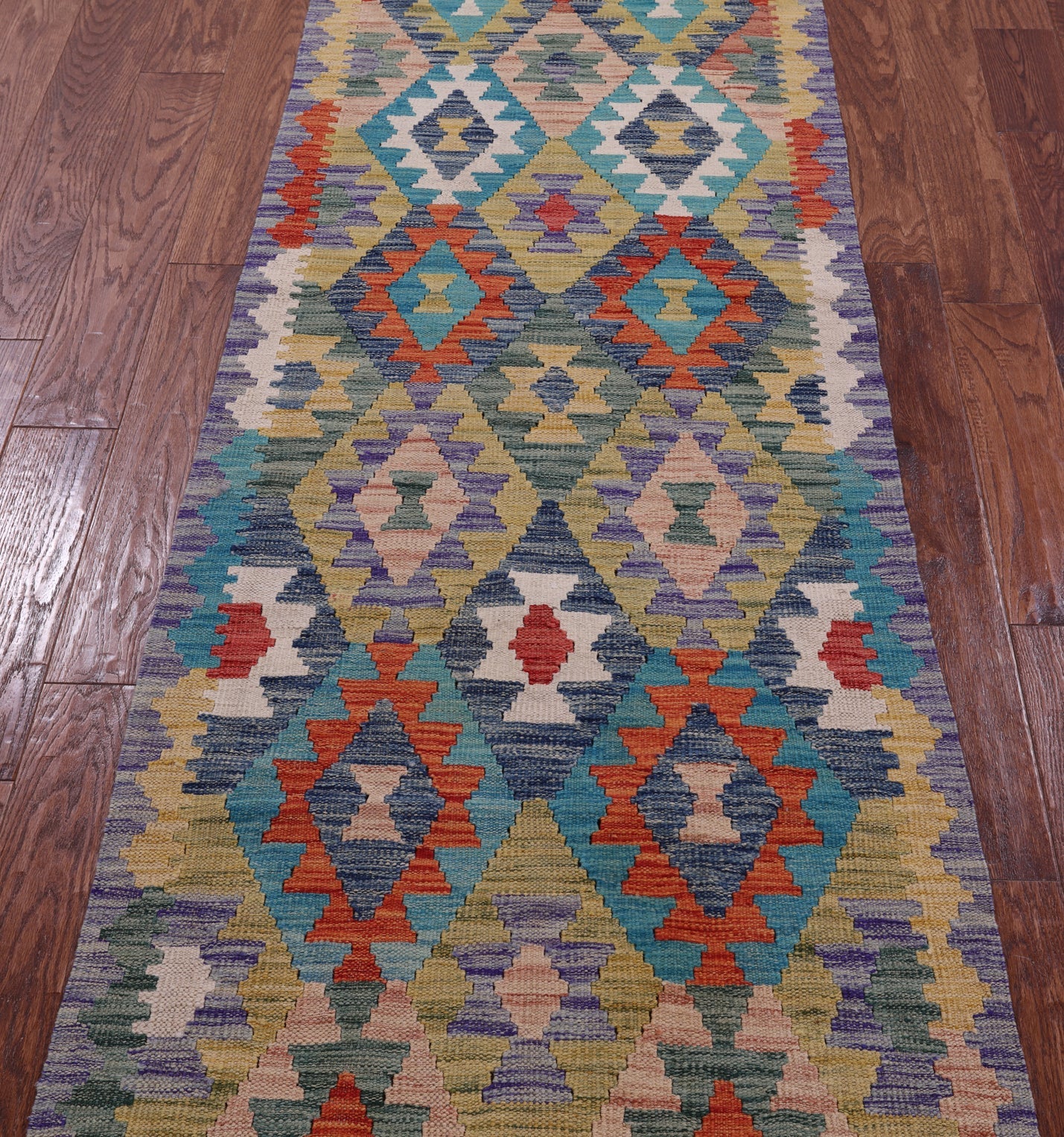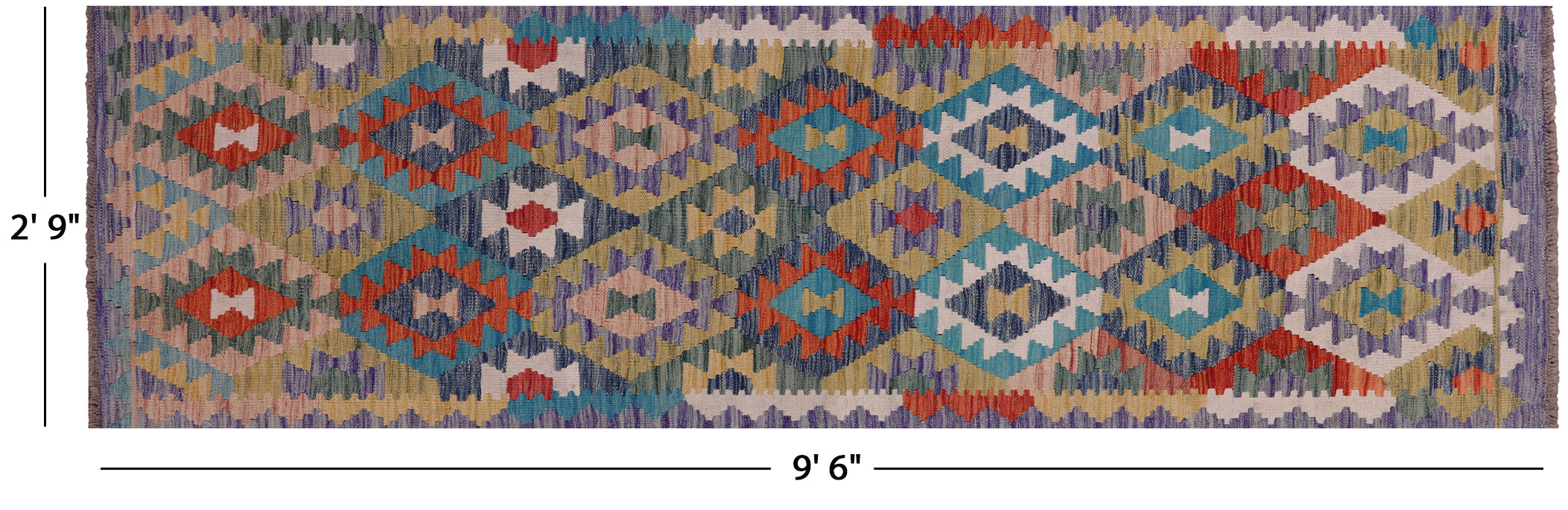 Kilim Flat Weave Reversible Wool On Wool Runner Rug 2' 9" X 9' 6" - Q18059 is backordered and will ship as soon as it is back in stock.