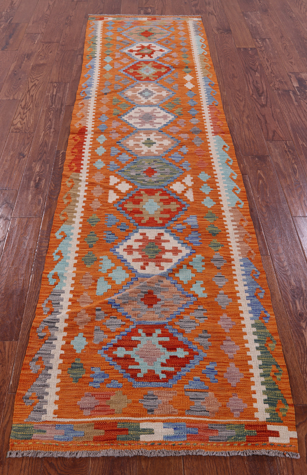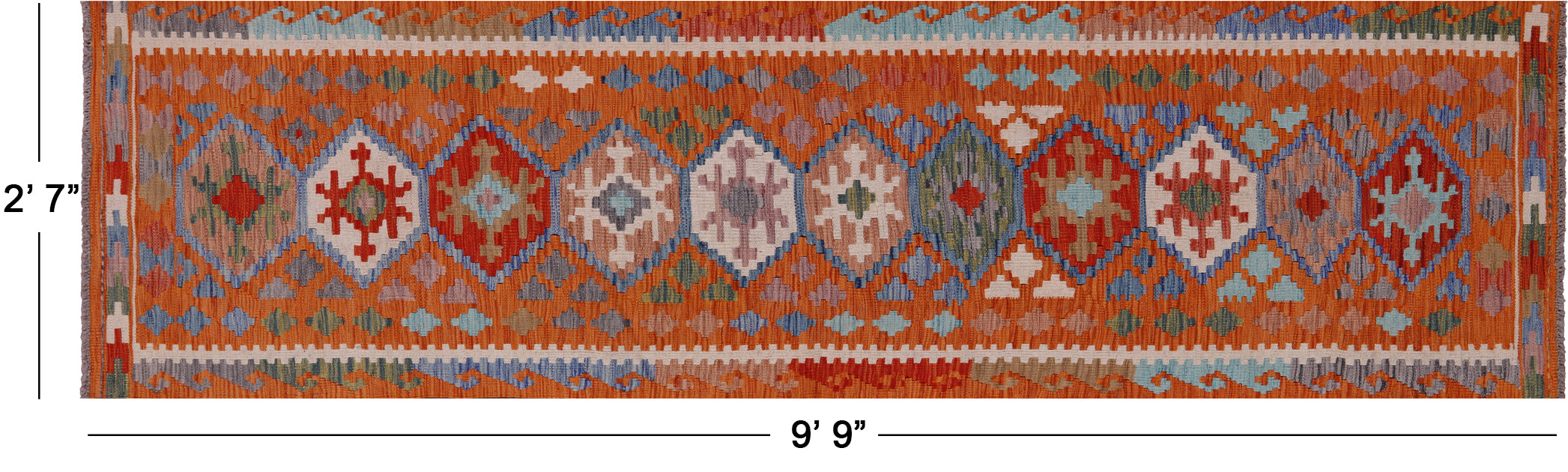Kilim Flat Weave Reversible Wool On Wool Runner Rug 2' 7" X 9' 9" - Q18132