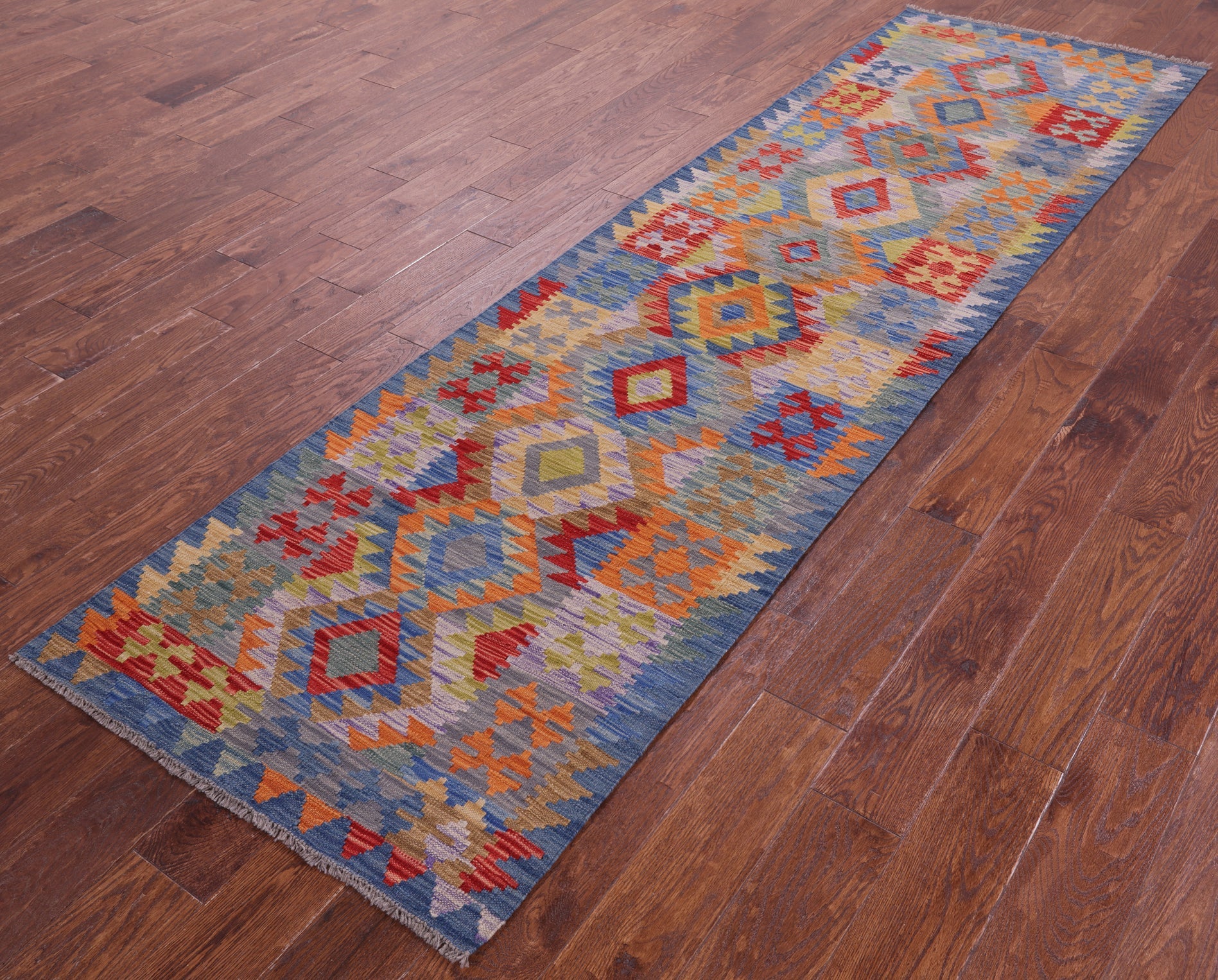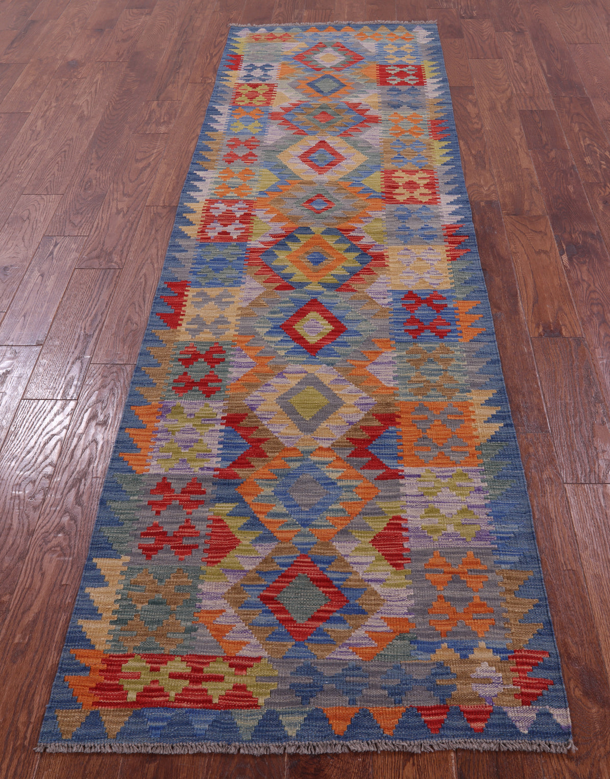 Kilim Flat Weave Wool On Wool Reversible Runner Rug 2' 8" X 9' 8" - Q18073 is backordered and will ship as soon as it is back in stock.