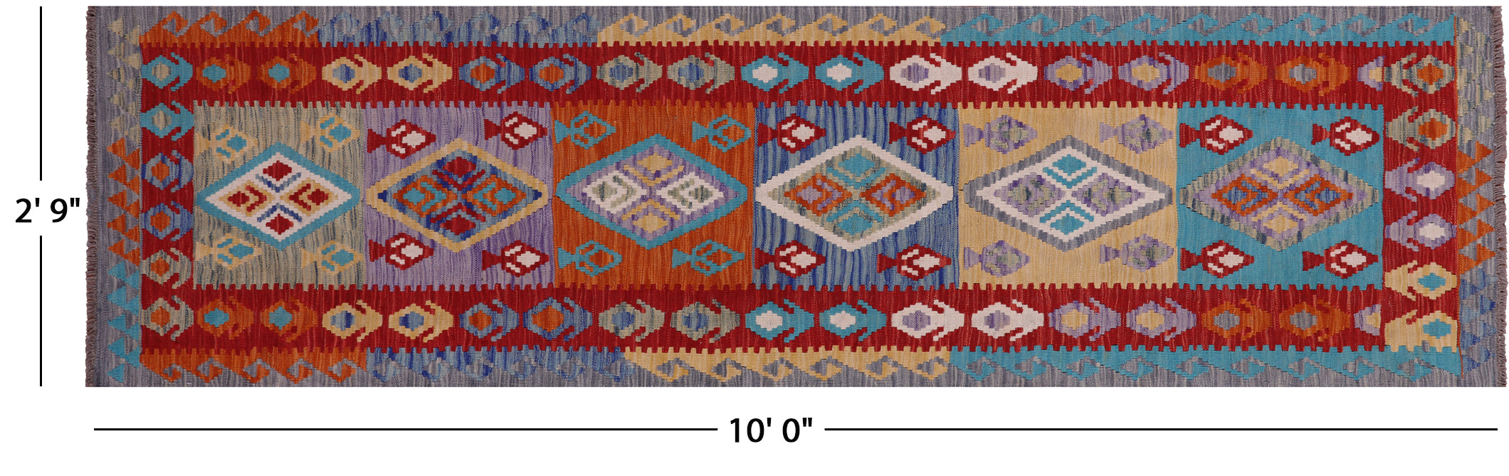 Kilim Flat Weave Wool On Wool Reversible Runner Rug 2' 9" X 10' 0" - Q18079
