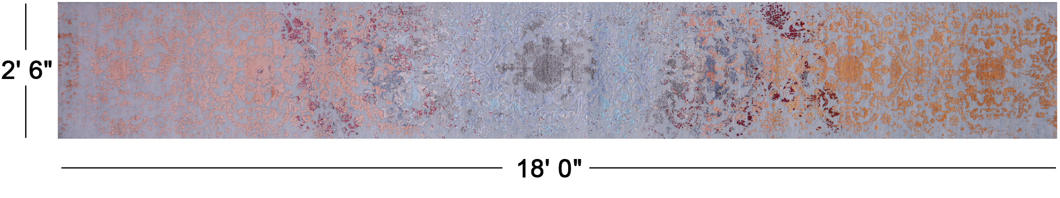 Modern Wool & Silk Hand Knotted Runner Rug 2' 6" X 18' 0" - Q11842 is backordered and will ship as soon as it is back in stock.