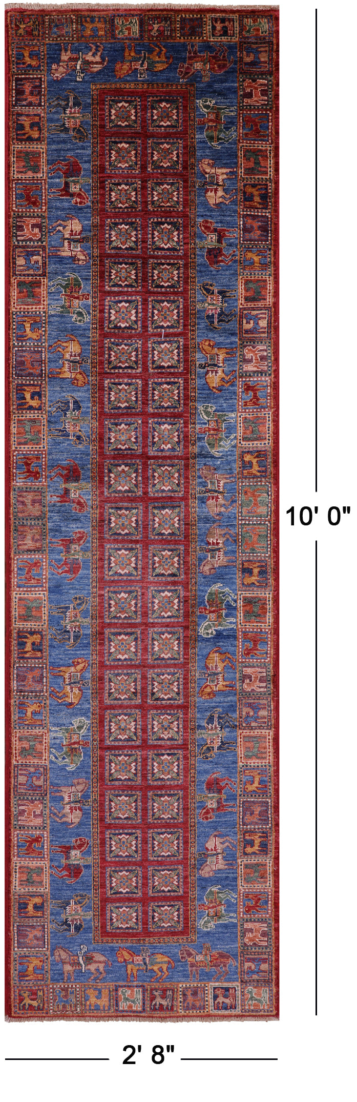 2' 8" X 10' 0" Pazyryk Historical Design Hand Knotted Wool Runner Rug - Q16891