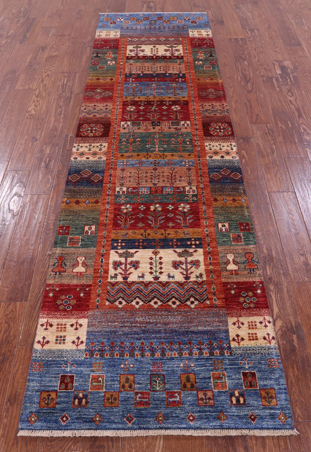 Persian Gabbeh Tribal Hand-Knotted Runner Rug 2' 10" X 9' 10" - Q20726 is backordered and will ship as soon as it is back in stock.