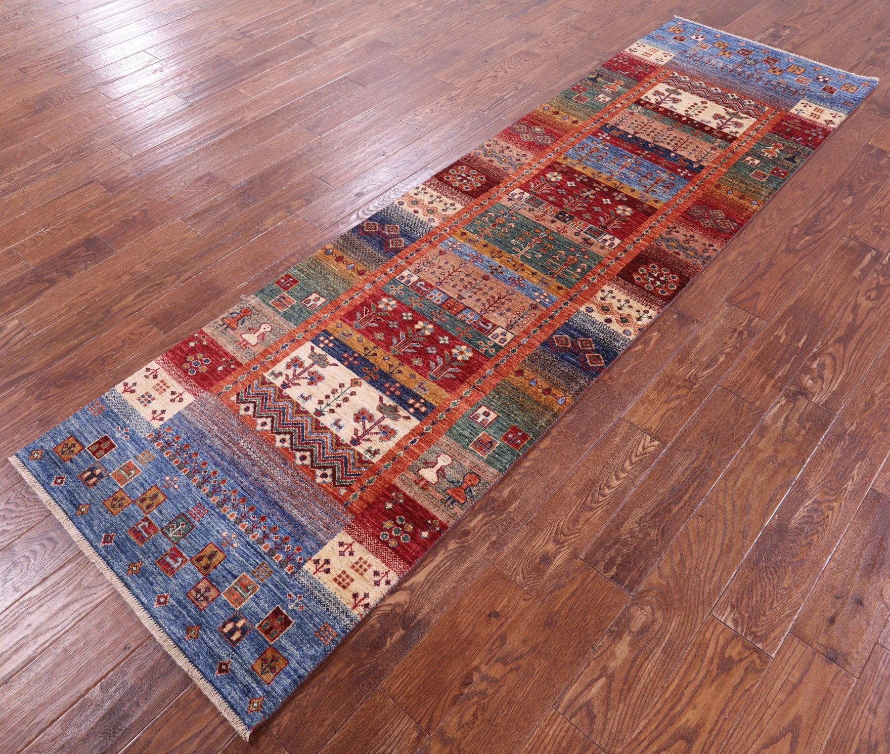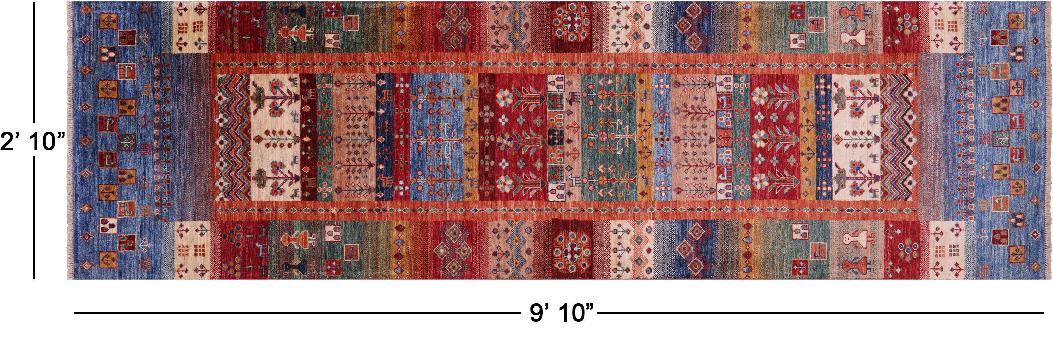 Persian Gabbeh Tribal Hand-Knotted Runner Rug 2' 10" X 9' 10" - Q20726