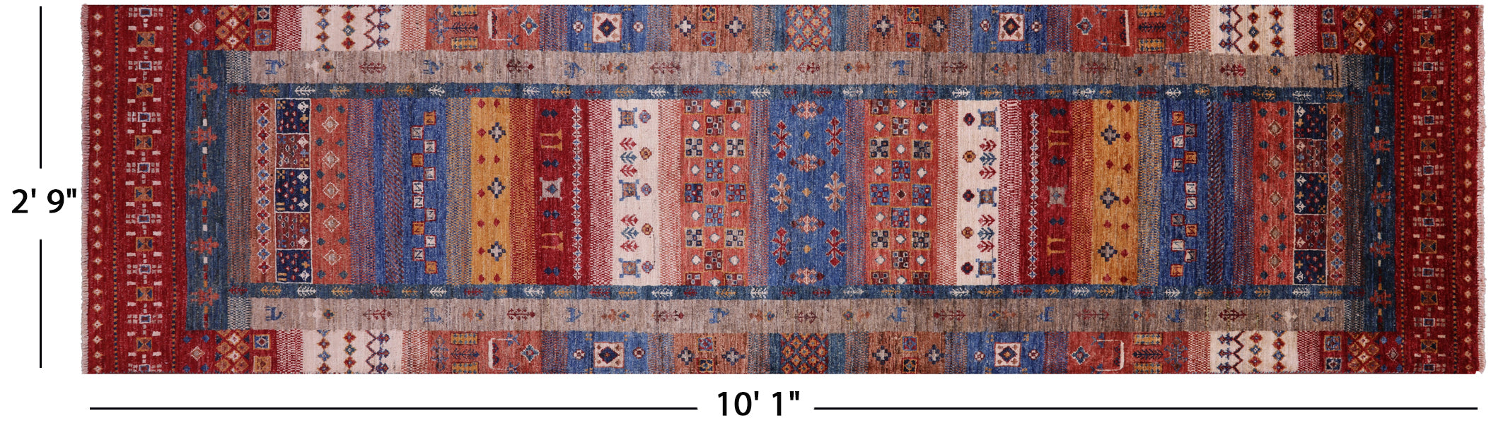 Persian Gabbeh Tribal Hand Knotted Runner Rug 2' 9" X 10' 1" - Q20733