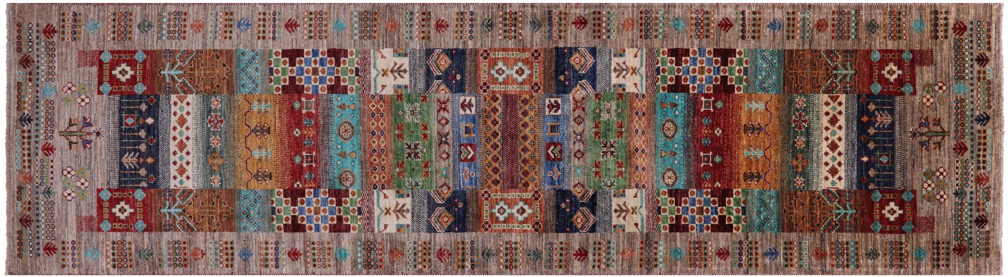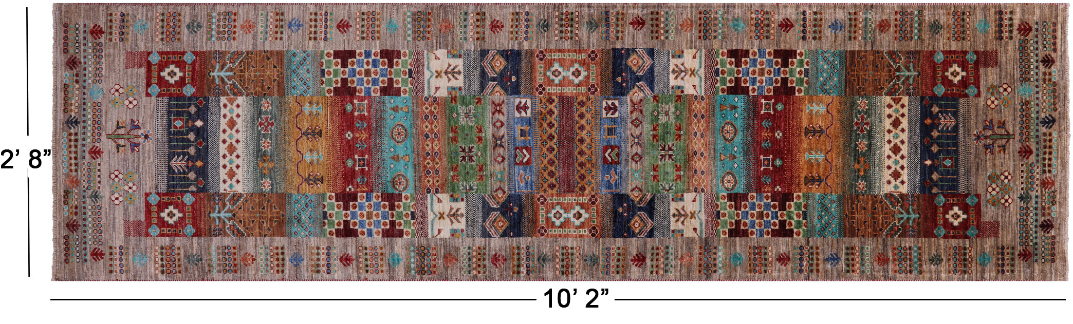 Persian Gabbeh Tribal Hand Knotted Runner Rug 2' 8" X 10' 2" - Q20932