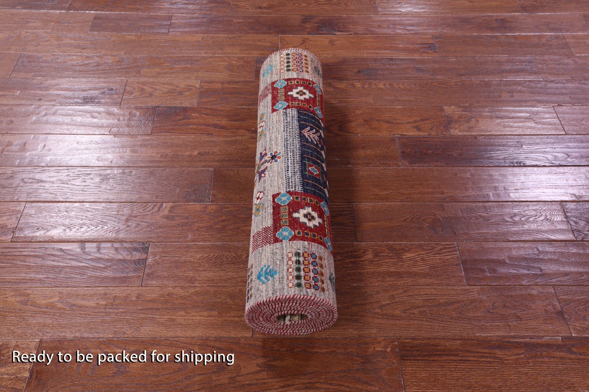 Persian Gabbeh Tribal Hand Knotted Runner Rug 2' 8" X 10' 2" - Q20932 is backordered and will ship as soon as it is back in stock.