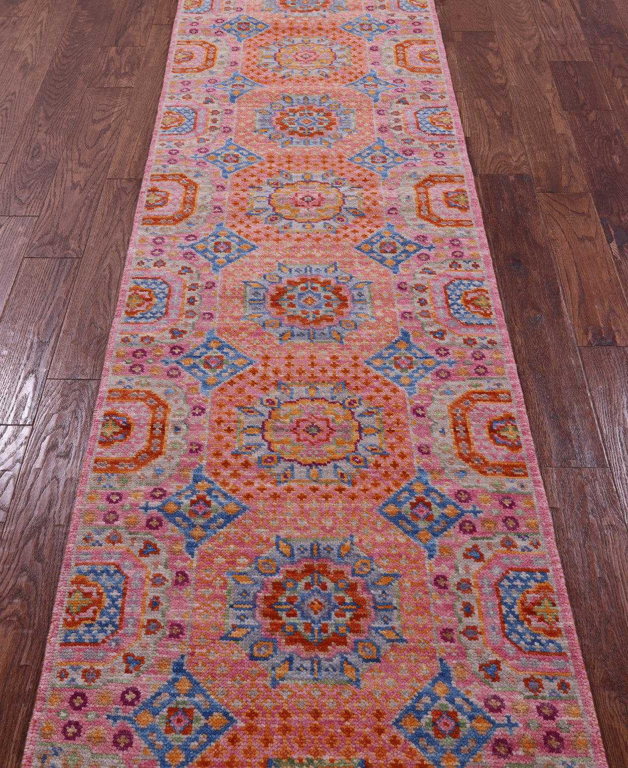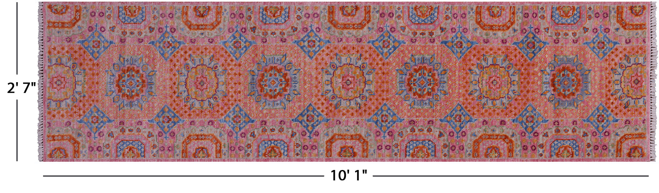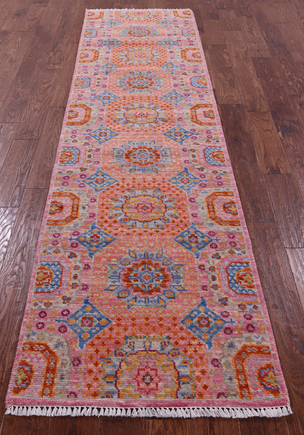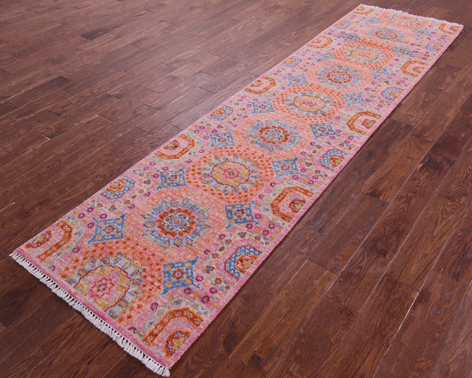 Pink 2' 7" X 10' 1" Runner Handmade Mamluk Wool Rug - Q20299 is backordered and will ship as soon as it is back in stock.