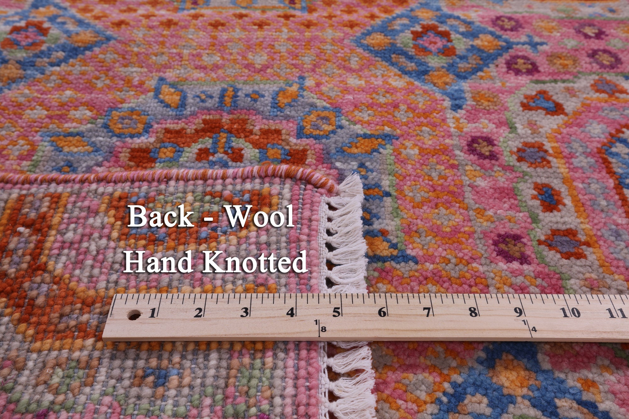 This is a genuine hand knotted cut pile rug, not tufted, hooked, or machine made. All we do is hand knotted.