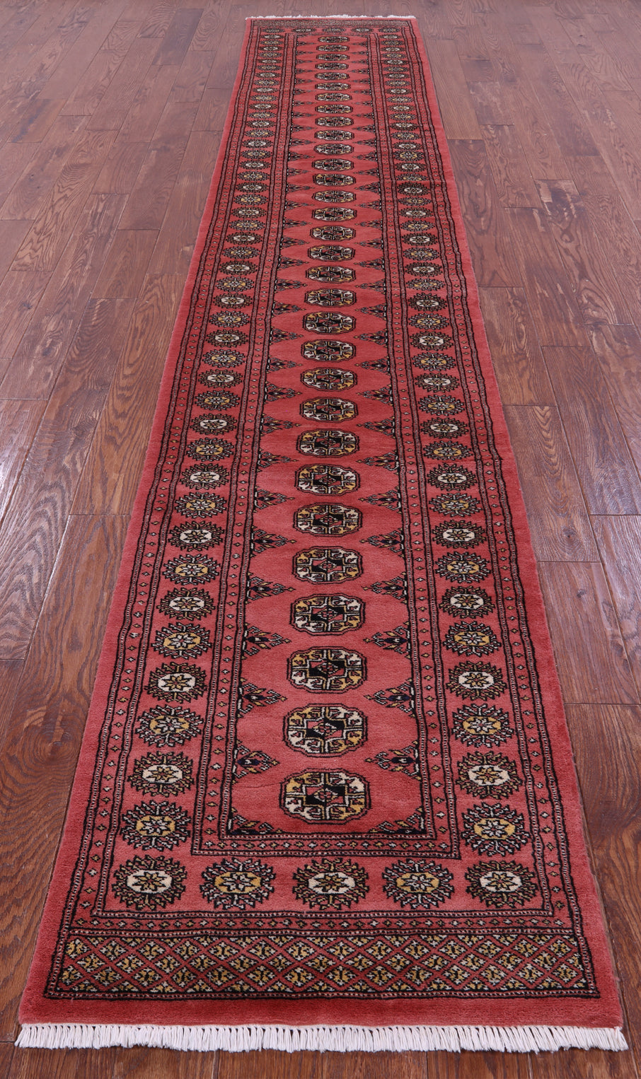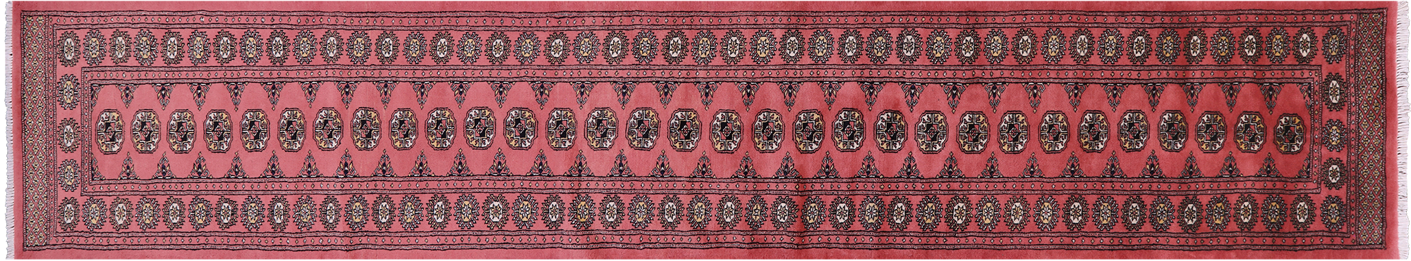 Pink 2' 7" X 14' 3" Runner Silky Bokhara Hand-Knotted Wool Rug - Q23834 is backordered and will ship as soon as it is back in stock.