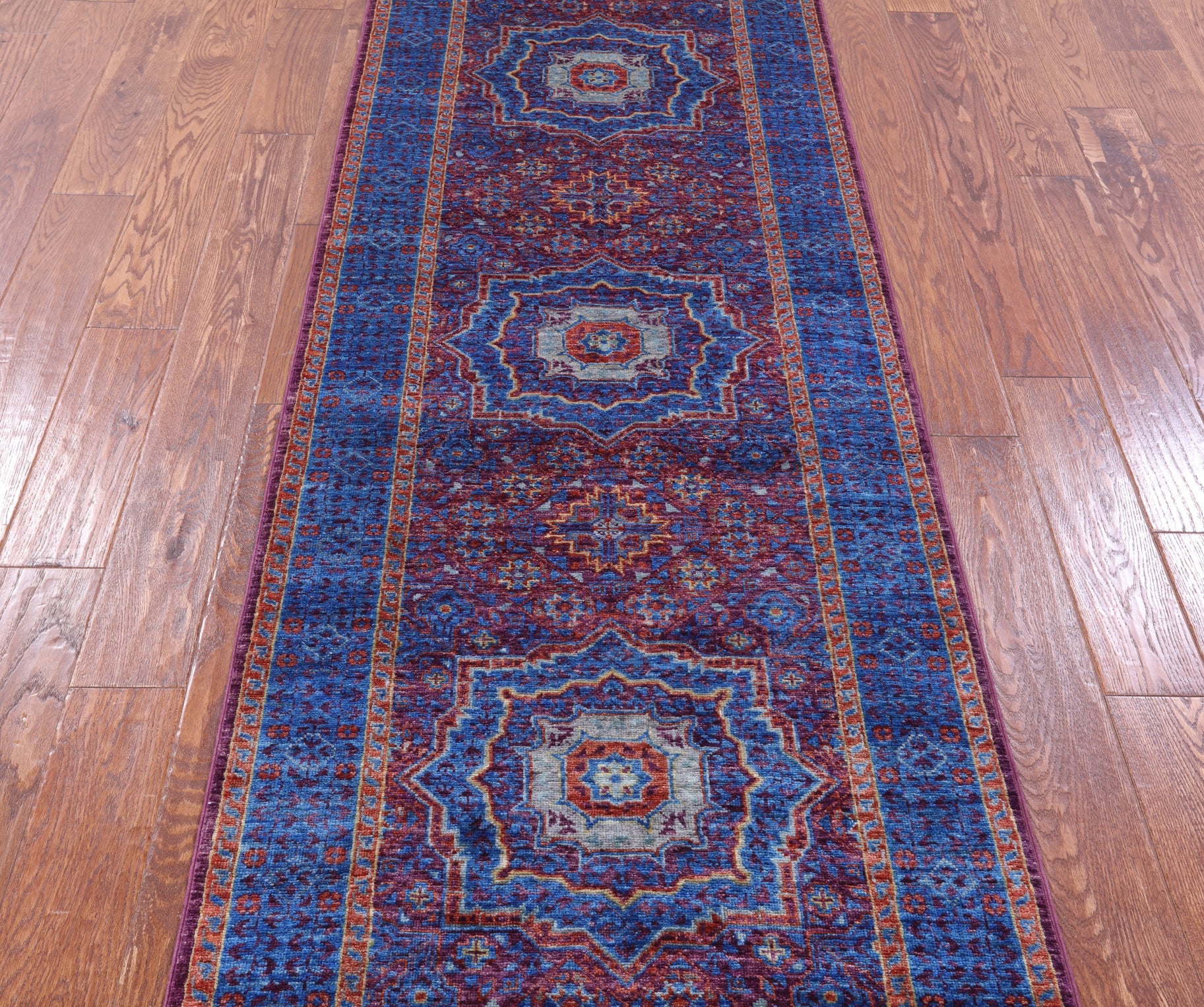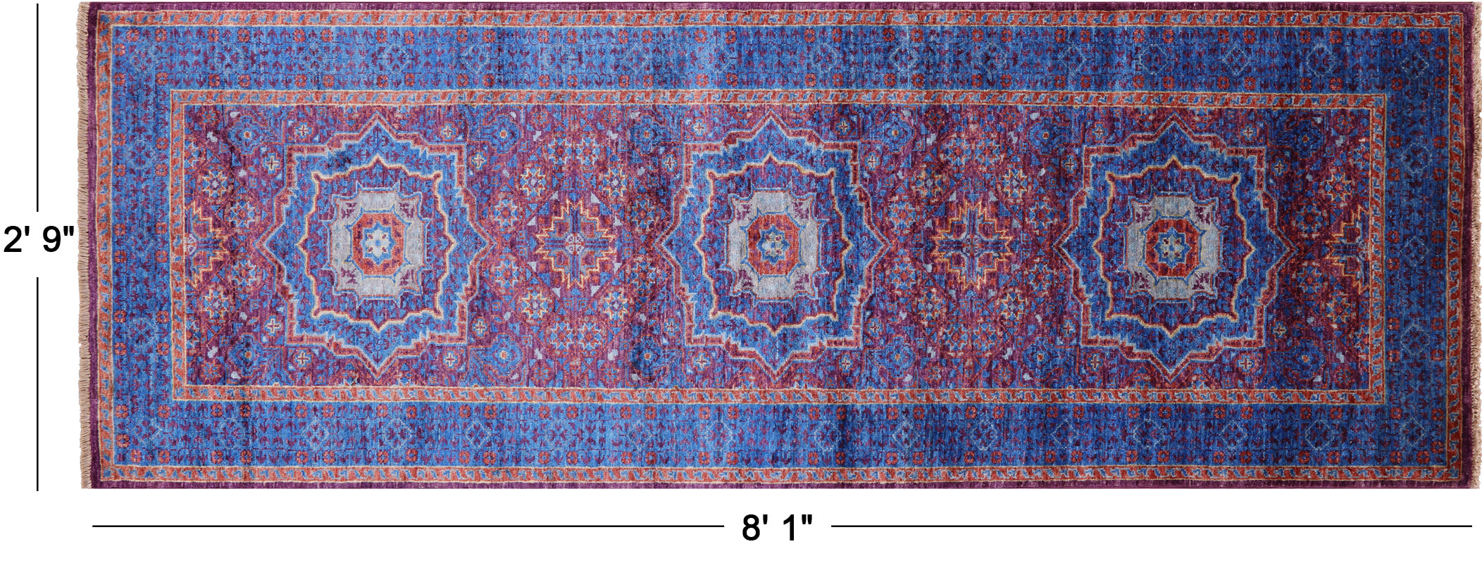 Purple 2' 9" X 8' 1" Mamluk Hand-Knotted Wool Runner Rug - Q12282 is backordered and will ship as soon as it is back in stock.