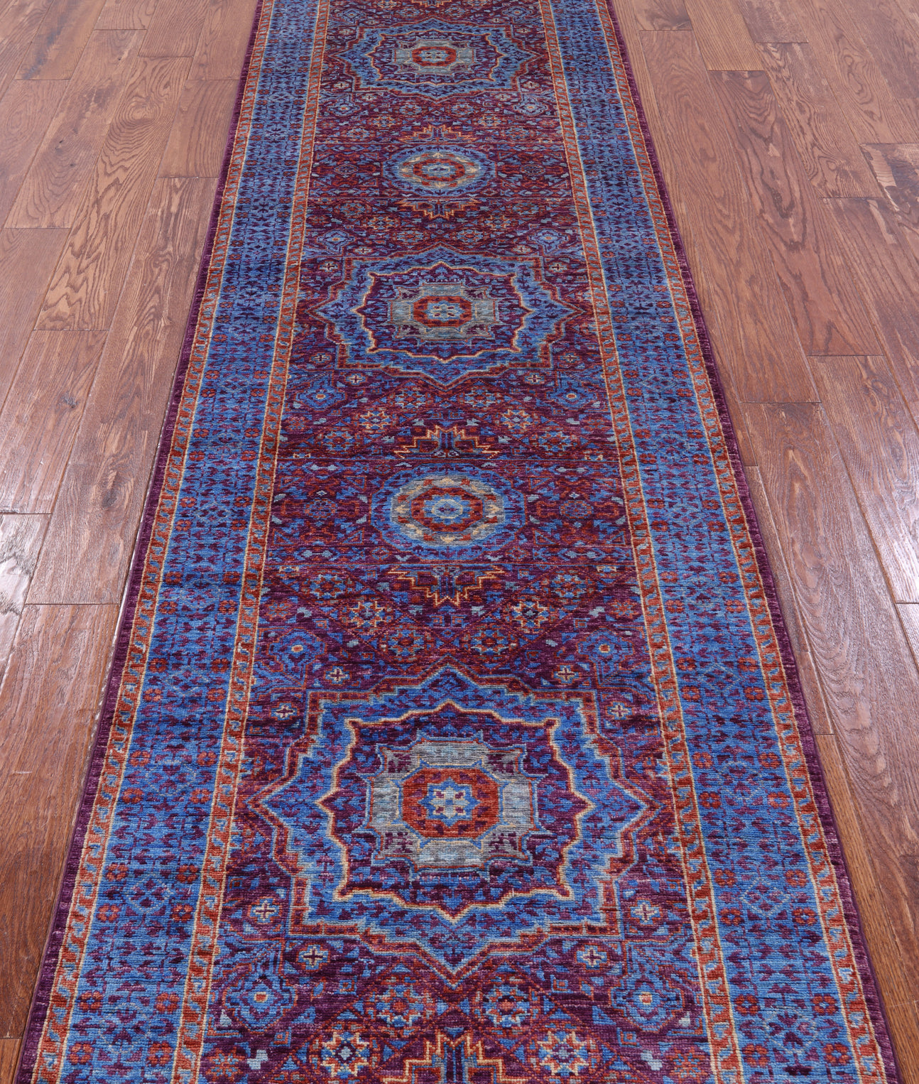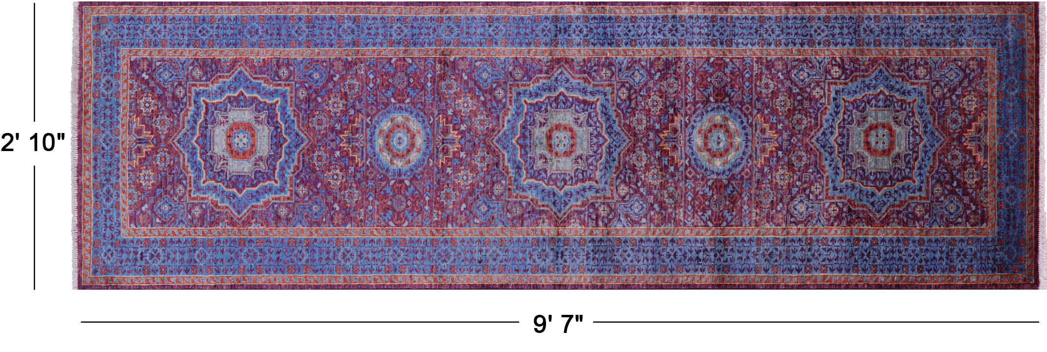 Purple 2' 10" X 9' 7" Mamluk Hand-Knotted Wool Runner Rug - Q12504 is backordered and will ship as soon as it is back in stock.