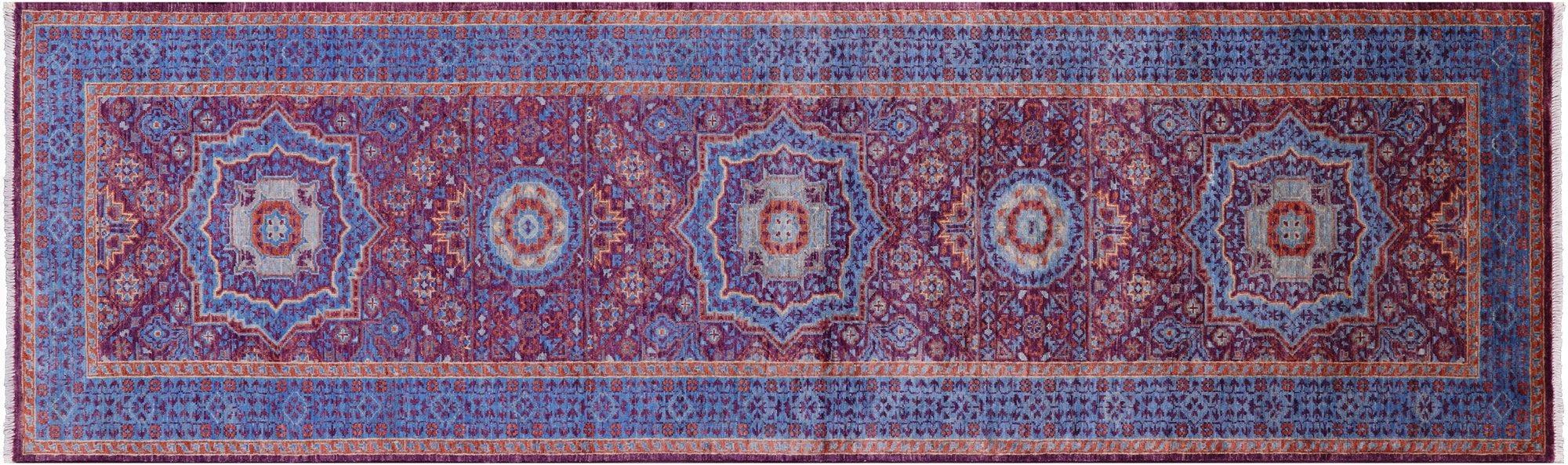 Purple 2' 9" X 9' 7" Mamluk Hand Knotted Wool Runner Rug - Q12505