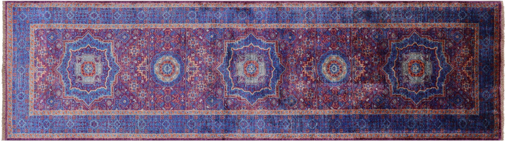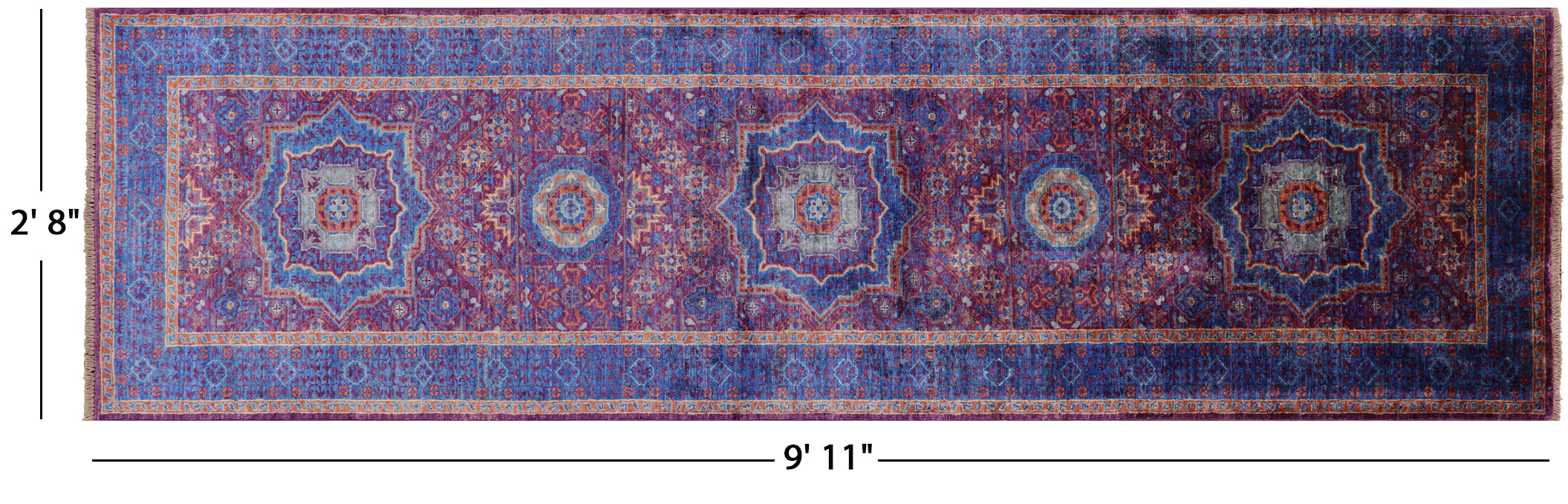 Purple Runner Mamluk Hand Knotted Wool Rug 2' 8" X 9' 11" - Q12507