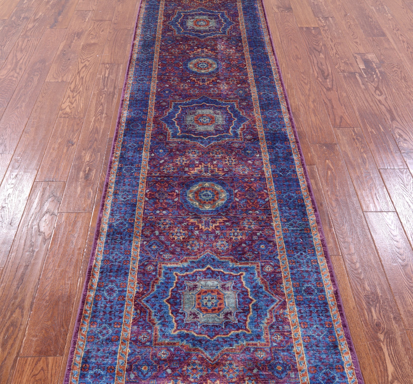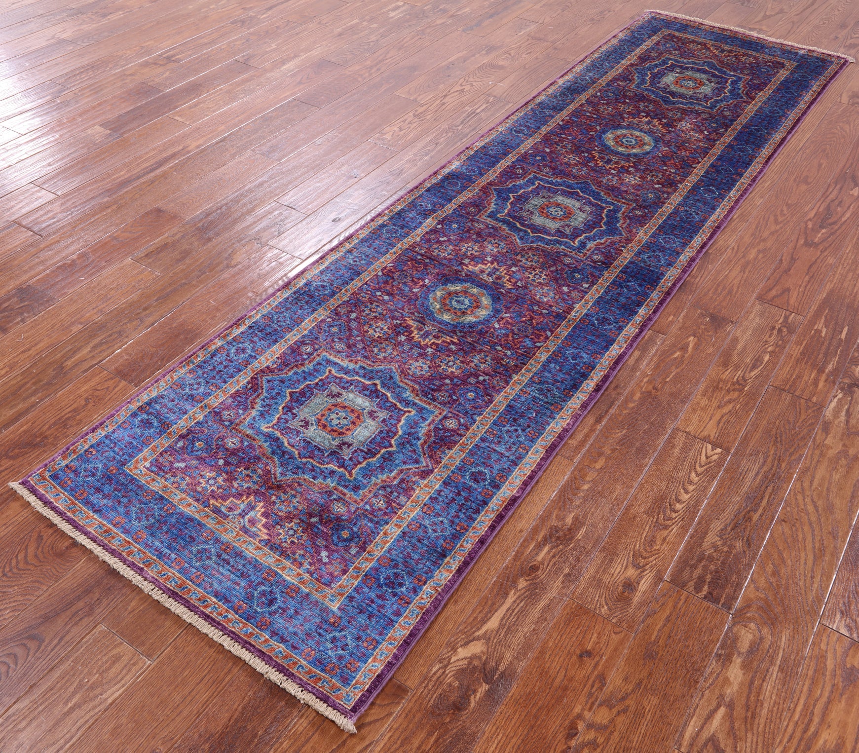 Purple Runner Mamluk Hand Knotted Wool Rug 2' 8" X 9' 11" - Q12507 is backordered and will ship as soon as it is back in stock.